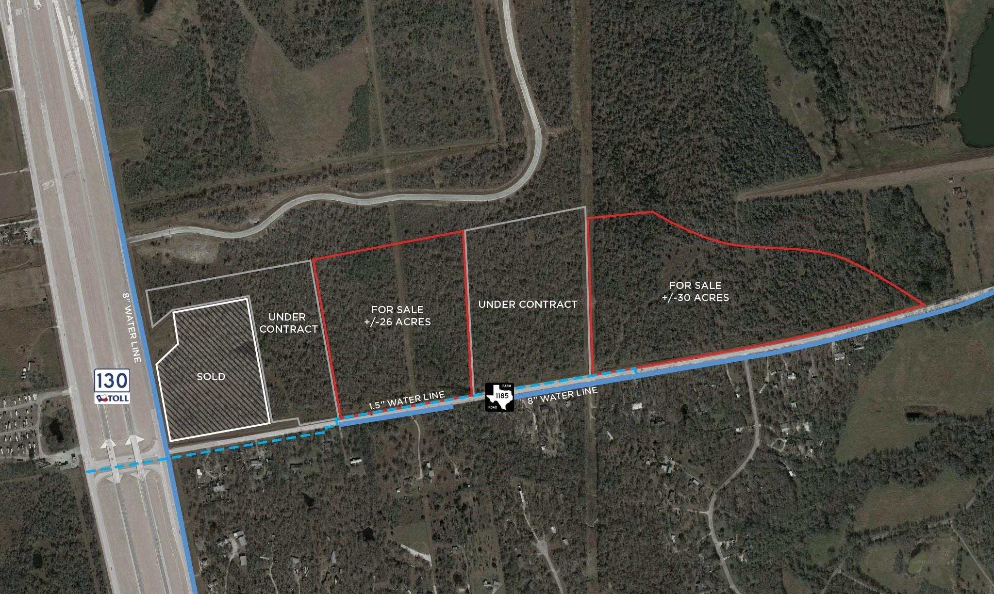 Gold Tier is proud to present +/-26 acres and +/-17 acres on FM 1185 just off Toll Road 130 in south Austin, Texas. The seller will subdivide the property to meet potential users' needs and will extend seller financing for qualified groups. The property has no zoning, so many industrial storage or manufacturing uses are possible. See agent for short list of prohibited uses. An Aqua 8” water line is to the site. The pr...
