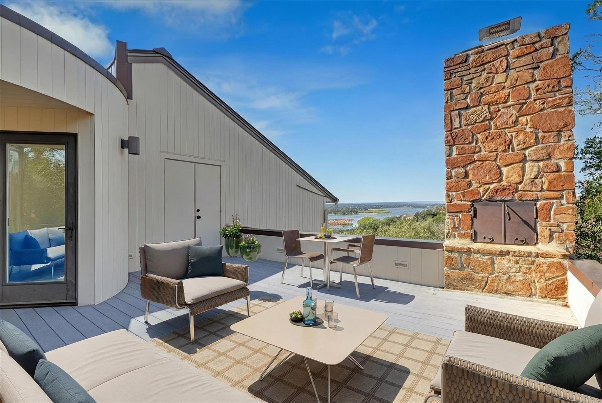 Positioned on 1.69 private acres inside the gated Windermere Oaks community, 100 Derby Drive captures sweeping Lake Travis and Hill Country views with a layout designed for both daily comfort and elevated entertaining. A light-filled circular foyer opens to expansive living spaces framed by walls of windows. The main living room showcases custom built-ins and a dramatic floor-to-ceiling river stone fireplace. The kitchen feat...