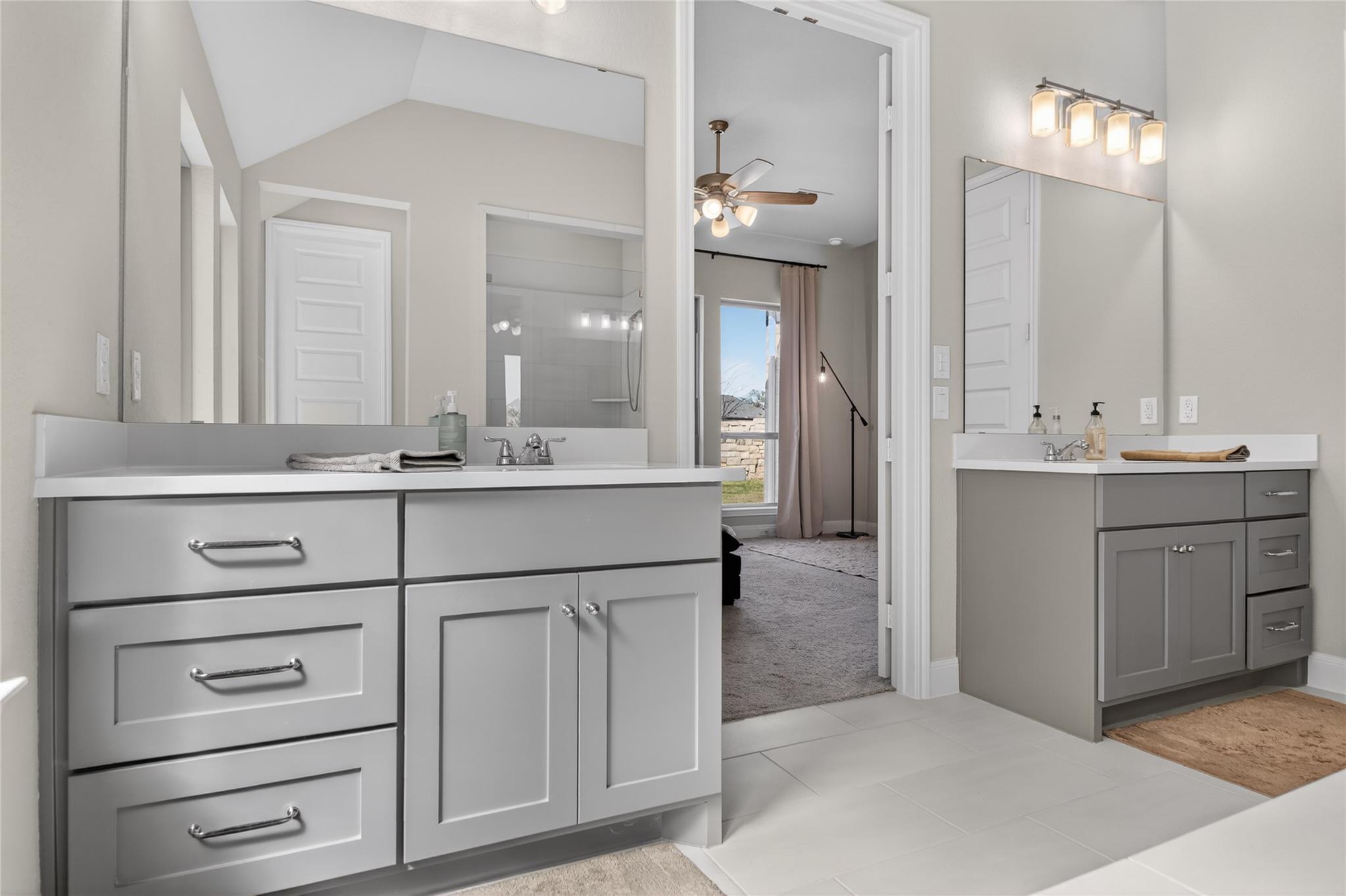 This exceptional one-story Perry Home in Wolf Ranch offers something rarely found in the community — a large private patio that does not face other homes, allowing you to relax under the covered shade or enjoy the sun on the extended paver terrace. Positioned on a corner lot with a beautiful block wall, the setting delivers both privacy and presence. Inside, a grand extended entry with statement chandelier opens to wide plank ...