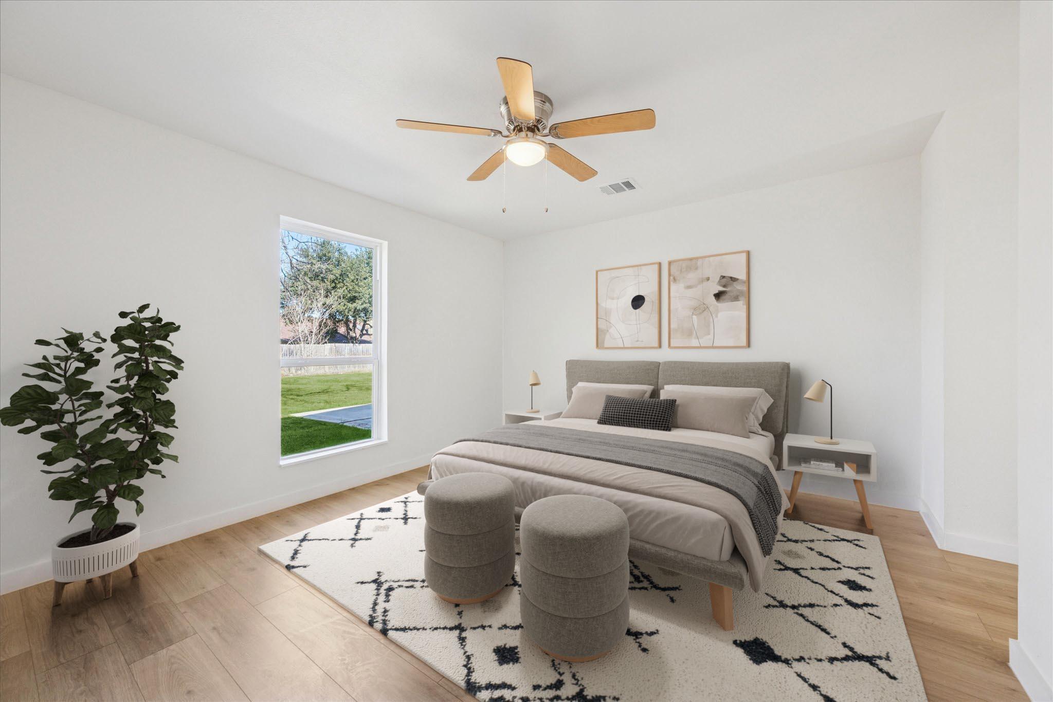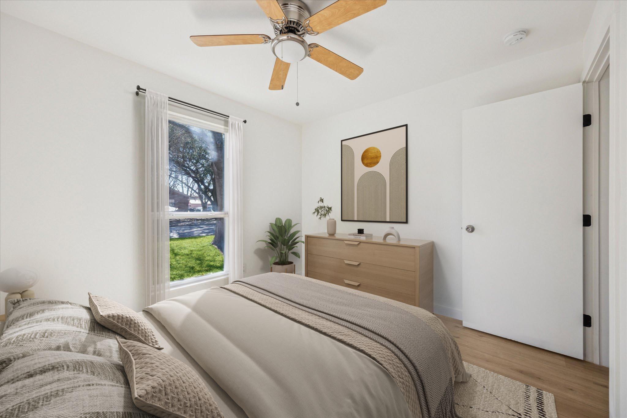 - Ceiling Fan(s), Quartz Counters, No Interior Steps, Primary Bedroom on Main