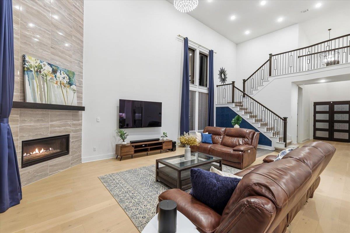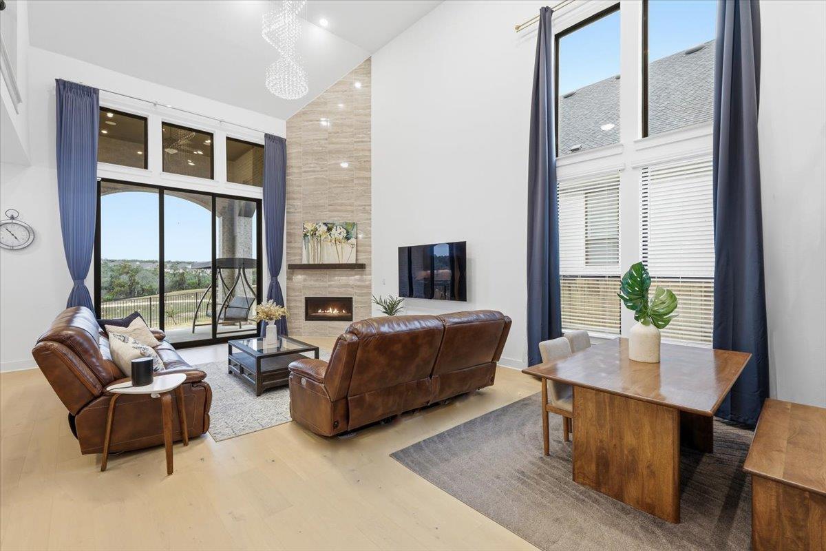 Welcome to this wonderful Highland Home with no rear neighbors! This north facing home has 5 bedrooms, 4.5 bathrooms, 3906 sq ft and a 3-car garage (has EV charger). The residence boasts a thoughtful and spacious layout, perfect for modern living. The home is on a 70 ft lot and feeds into Leander ISD. The soaring living room with a stunning chandelier is a wow factor! The home features two living spaces, providing ample room f...