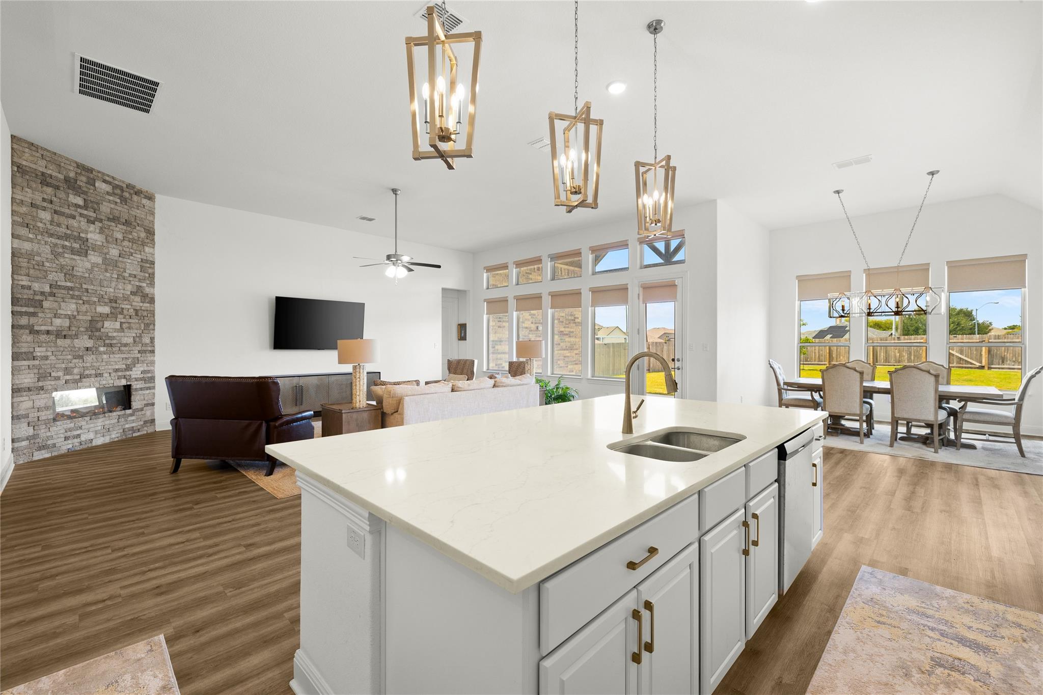 Beautiful newly built, barely lived in home! Open concept large living area with custom built fireplace! Large master bedroom and bath. Office can be built out and enclosed to be converted into a fourth bedroom. Giant 3 1/2 car garage! One of a few homes with rear gate access from road. Perfectly located near the neighborhood's amenities.