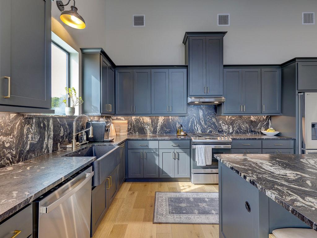 - Built-in Features, Ceiling Fan(s), Ceiling-High, Vaulted Ceiling(s), Chandelier, Quartz Counters, Stone Counters, Double Vanity, Eat-in Kitchen, Entrance Foyer, In-Law Floorplan, Kitchen Island, +7 more