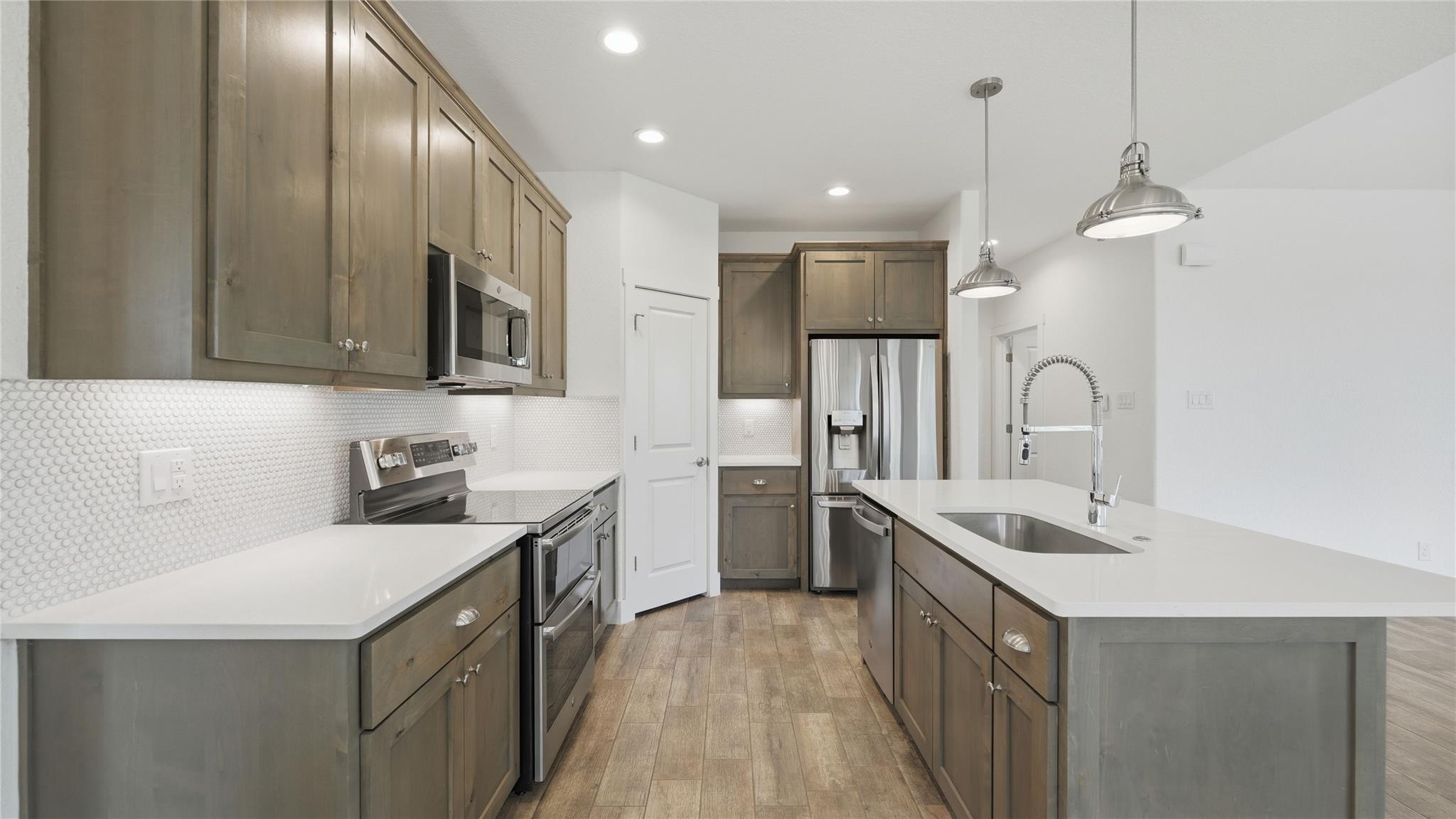 - Dishwasher, Disposal, Microwave, Electric Oven, Plumbed For Ice Maker, Range, Vented Exhaust Fan, Electric Water Heater, Water Softener, Water Softener Owned