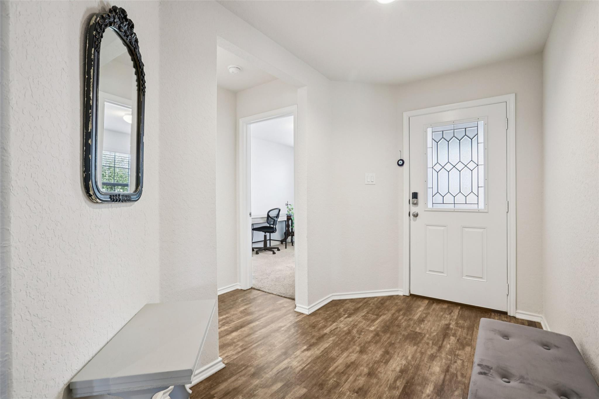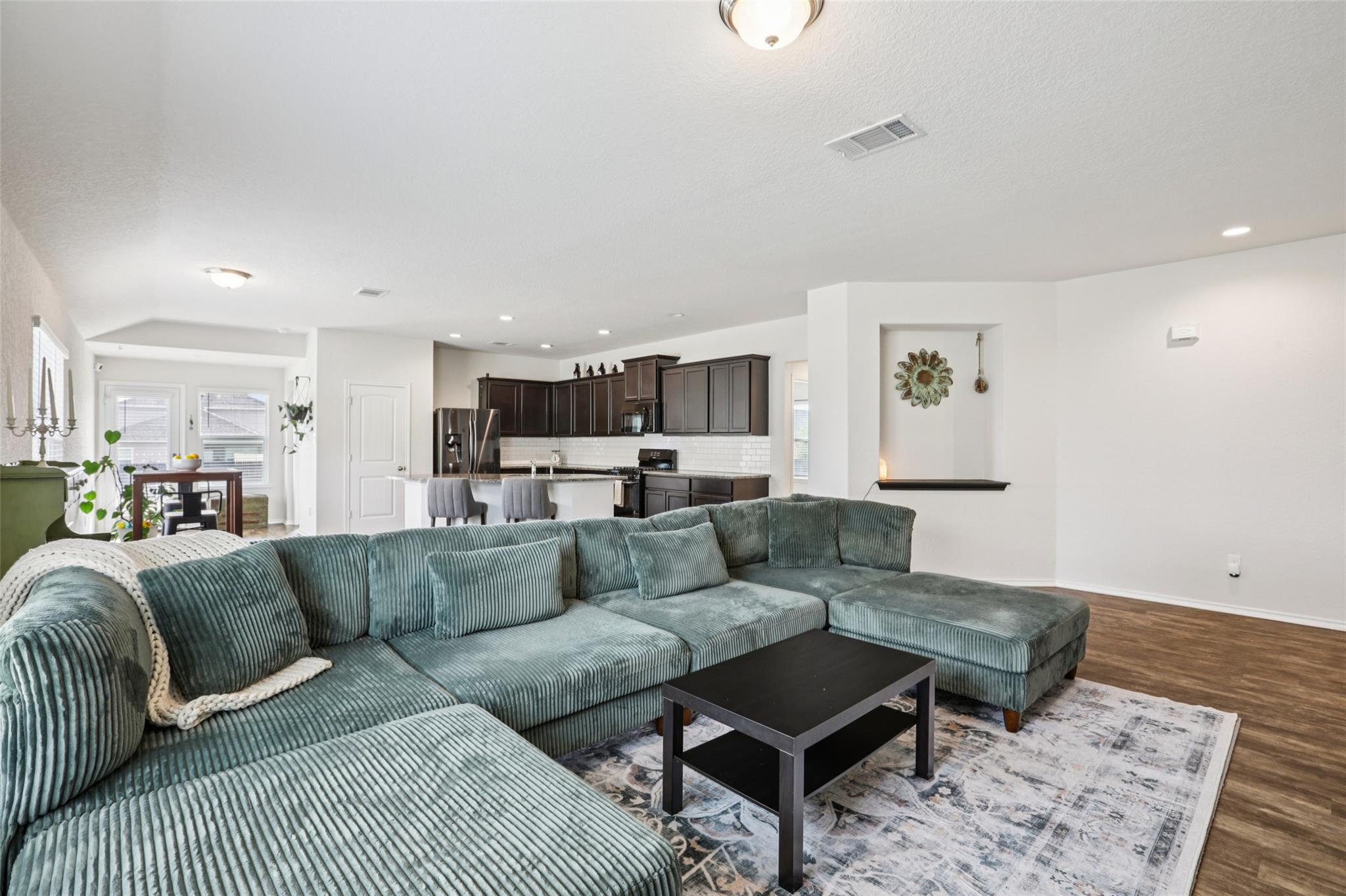 Nestled on a prime corner lot in San Marcos’ desirable Cottonwood Creek community, this beautifully maintained stone and stucco residence masterfully blends modern style with functional design and peace of mind, featuring a newer (2024) roof! An inviting foyer welcomes you into an airy, open-concept floor plan characterized by high ceilings and sophisticated wood-look vinyl plank flooring, with plush carpeting providing extra ...