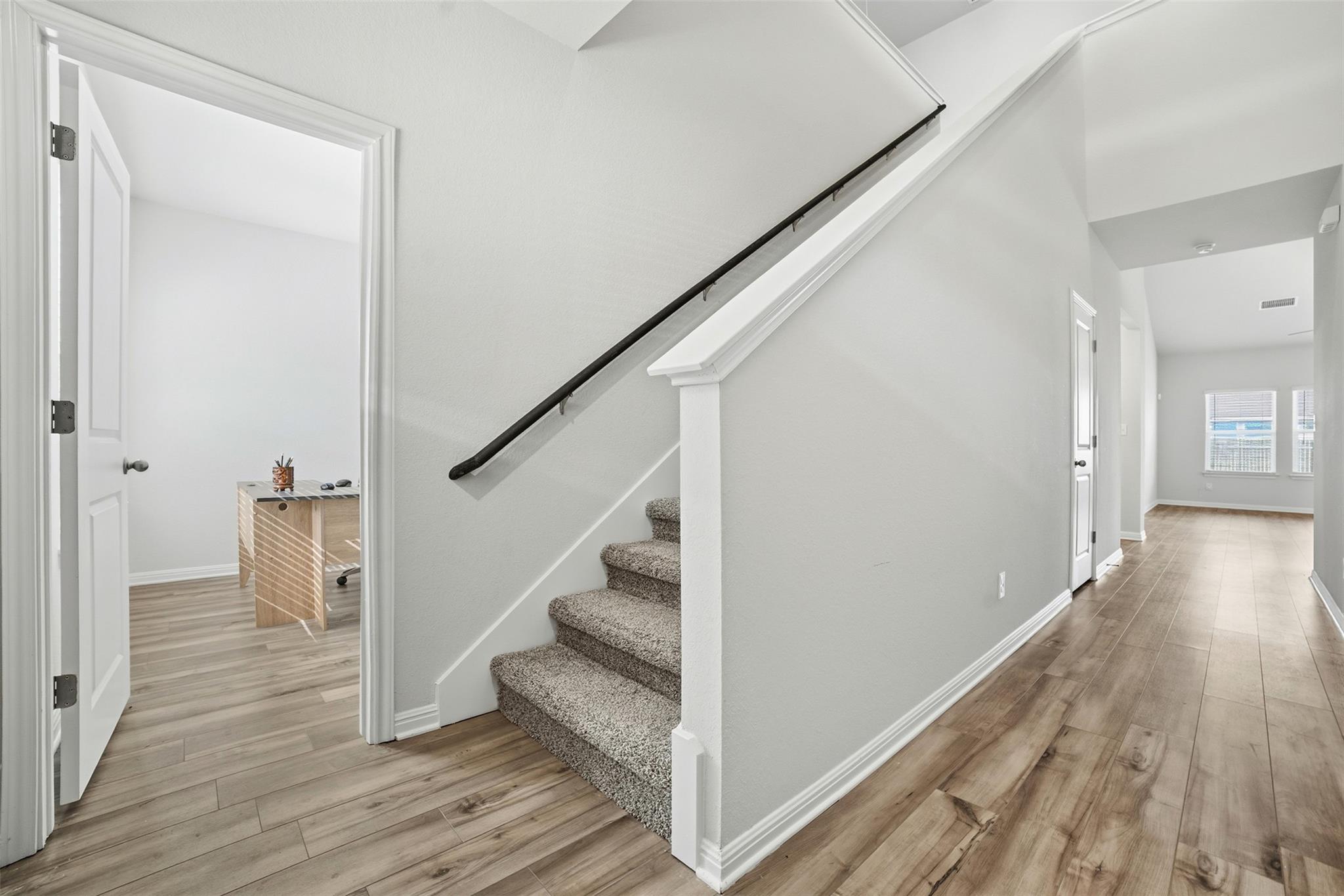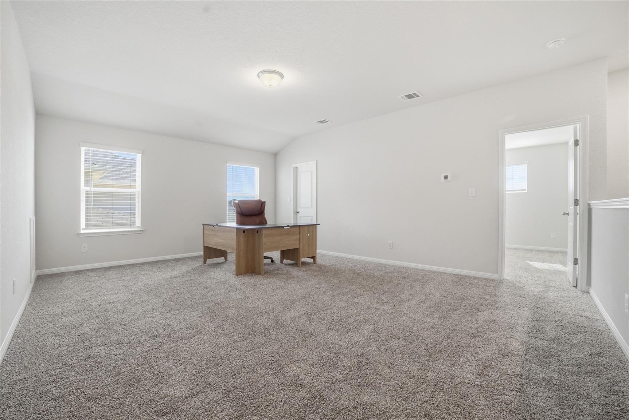 Welcome to this nearly brand-new two-story home located in the desirable Cross Creek community of Hutto! It features three bedrooms and a versatile first-floor flex room that can be used as a home office or an additional living area. This spacious residence boasts a thoughtfully designed open-concept layout that unfolds into a spacious living room adorned with soaring vaulted ceilings. The primary suite is generously sized a...