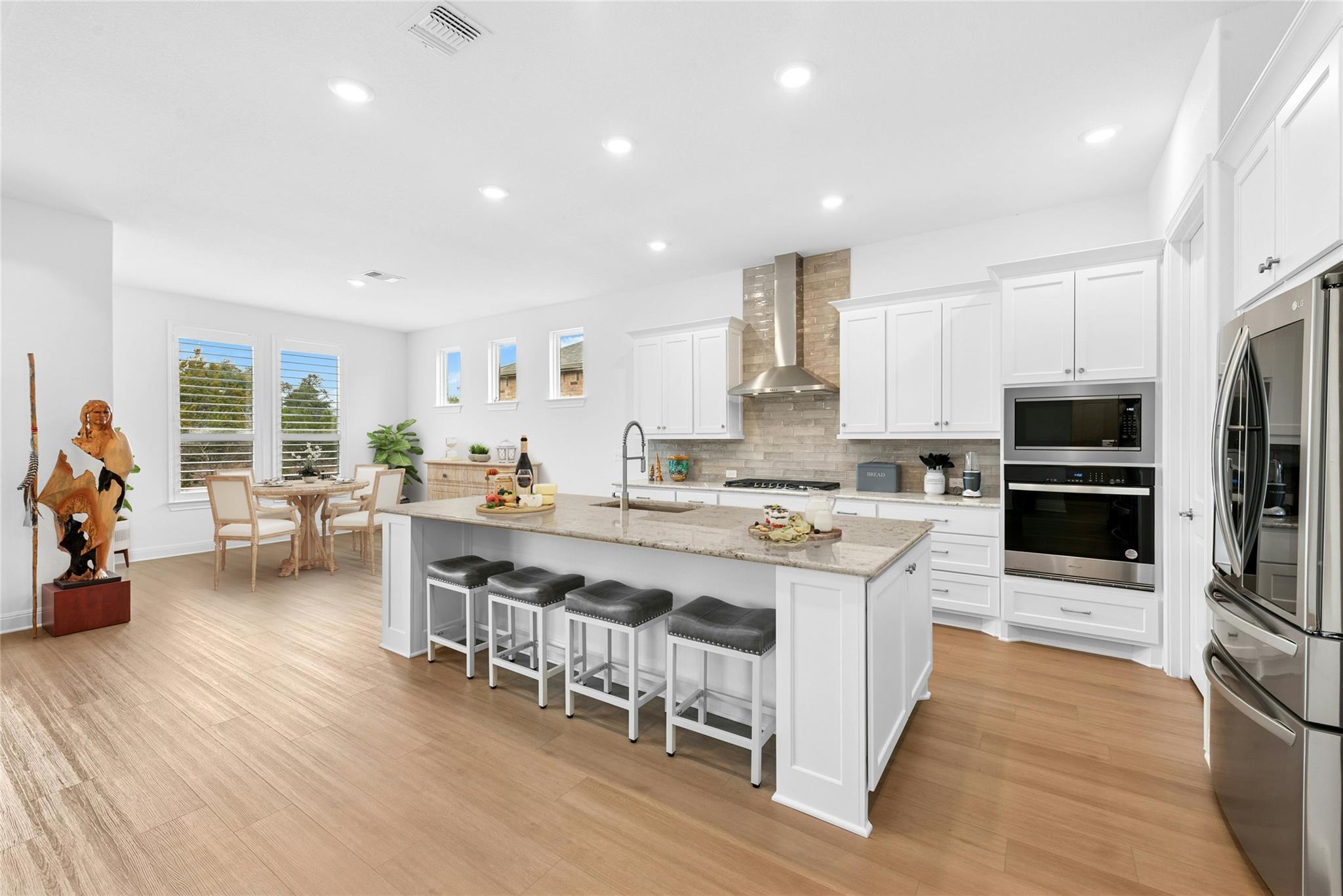 - Built-In Oven(s), Dishwasher, Disposal, Gas Cooktop, Microwave, RNGHD, Stainless Steel Appliance(s), Vented Exhaust Fan, Water Heater, Water Softener Owned