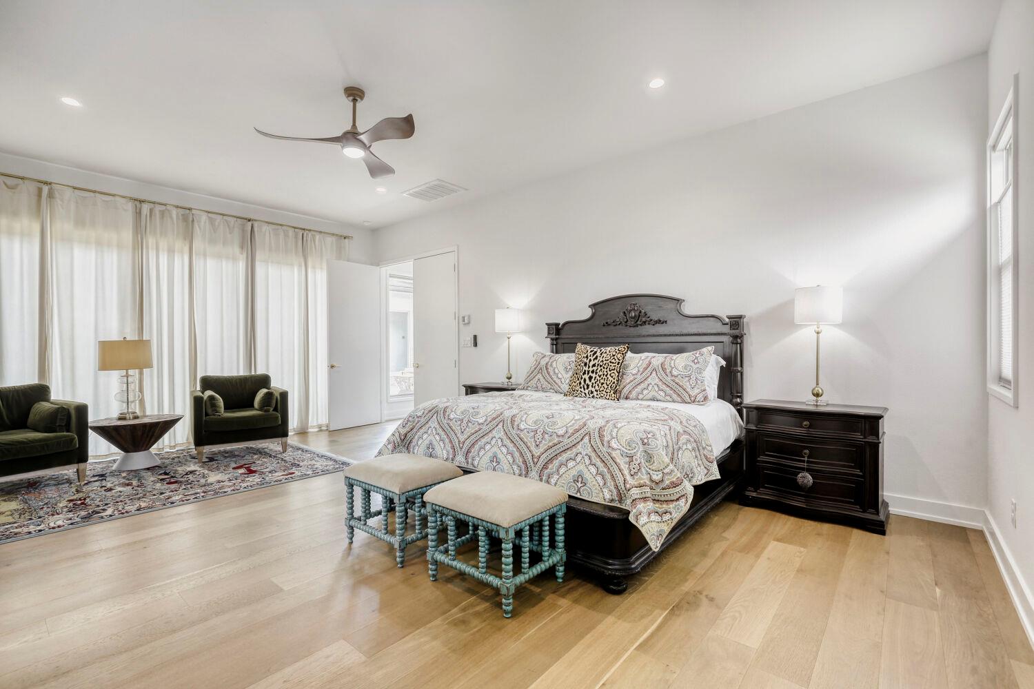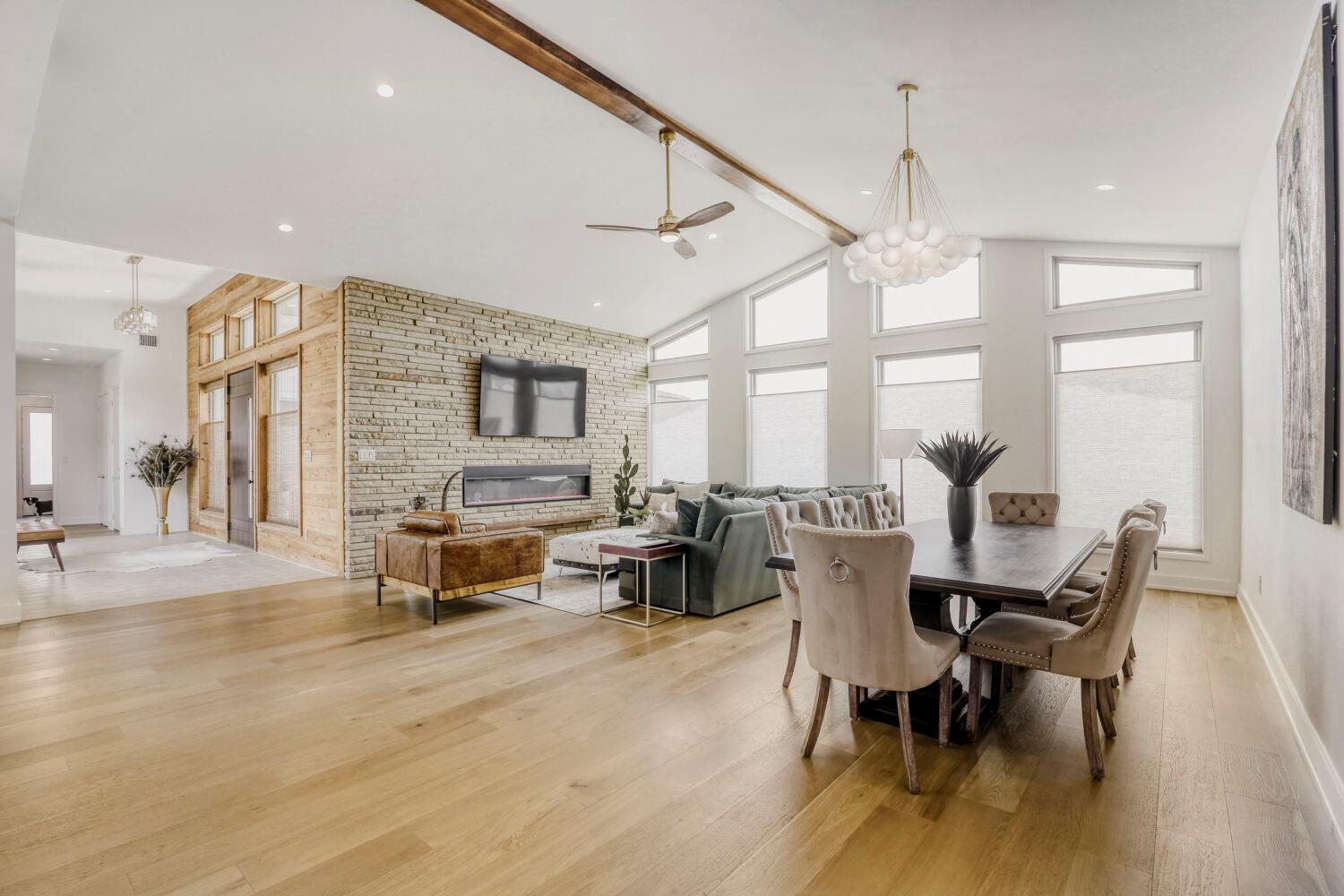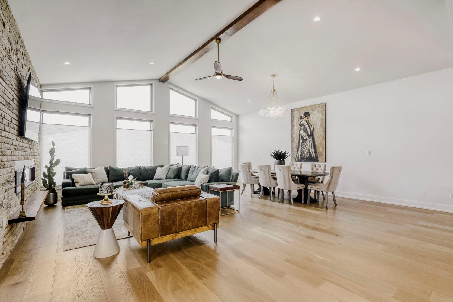 Discover this stunning mid-century modern home set on a sprawling 1-acre lot, offering space, style, and seamless flow throughout. A grand foyer welcomes you into an open-concept layout, where vaulted ceilings and expansive windows flood the living area with natural light—bringing the outdoors in and creating an airy, inviting atmosphere. The spacious primary suite is a true retreat, complete with a comfortable sitting area, a...