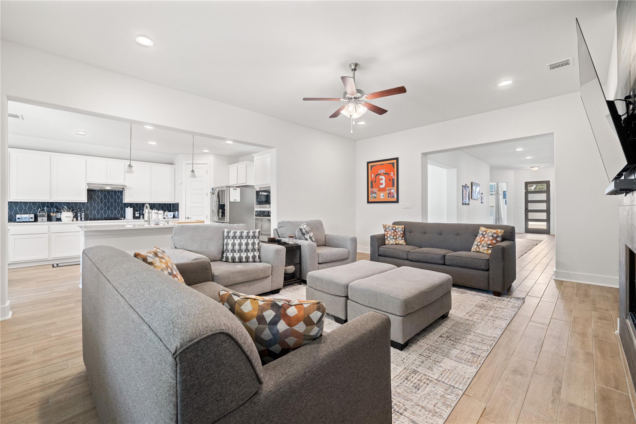 Welcome to this stunning 4-bedroom, 3-bathroom home in the desirable Lakeside community of Georgetown. Built in 2022, this beautifully designed 2,791 sq. ft. home offers a modern open floor plan with high-end finishes throughout. The gourmet kitchen features granite countertops, a large island, stainless steel appliances, a built-in oven, and a gas cooktop, making it perfect for cooking and entertaining. The living room is war...