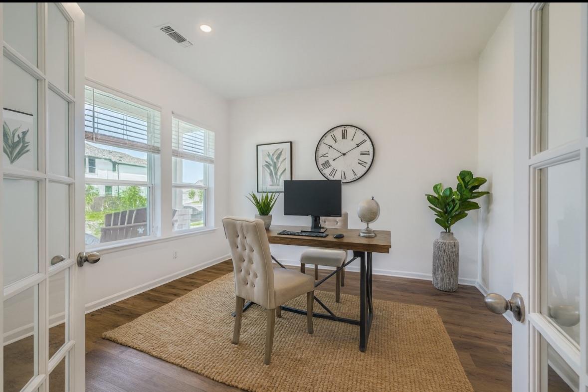 This unique sanctuary along the Brushy Creek greenbelt in Hutto, TX redefines modern living! 3 generously-sized bedrooms with walk in closets plus an office at the entry. The heart of the home features a chef's kitchen: high-end Bosch appliances, a double oven, upgraded vent hood, a large pantry plus additional dry storage room, display cabinets with lighting and convenient cabinet pull-outs provide style and practicality. The...