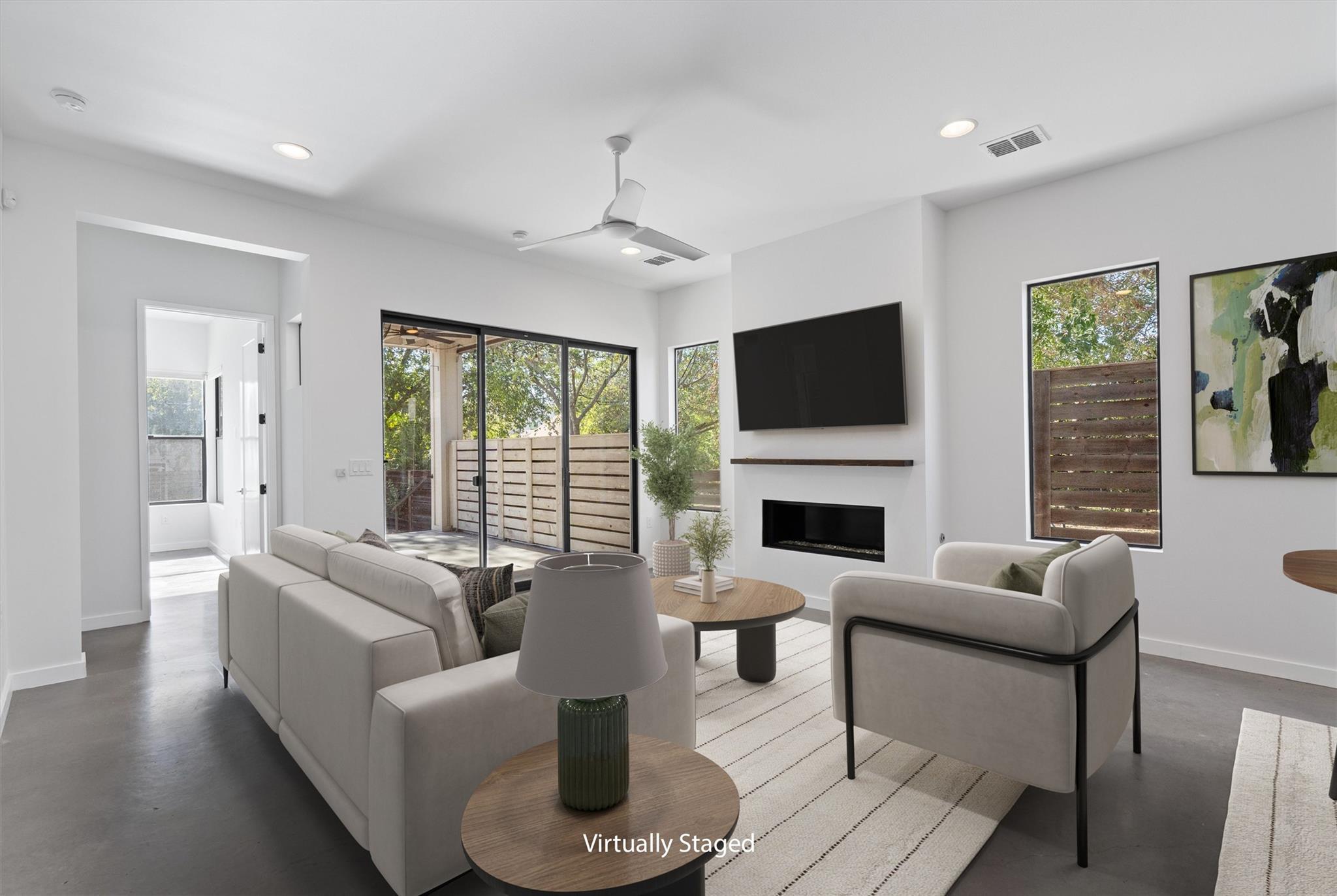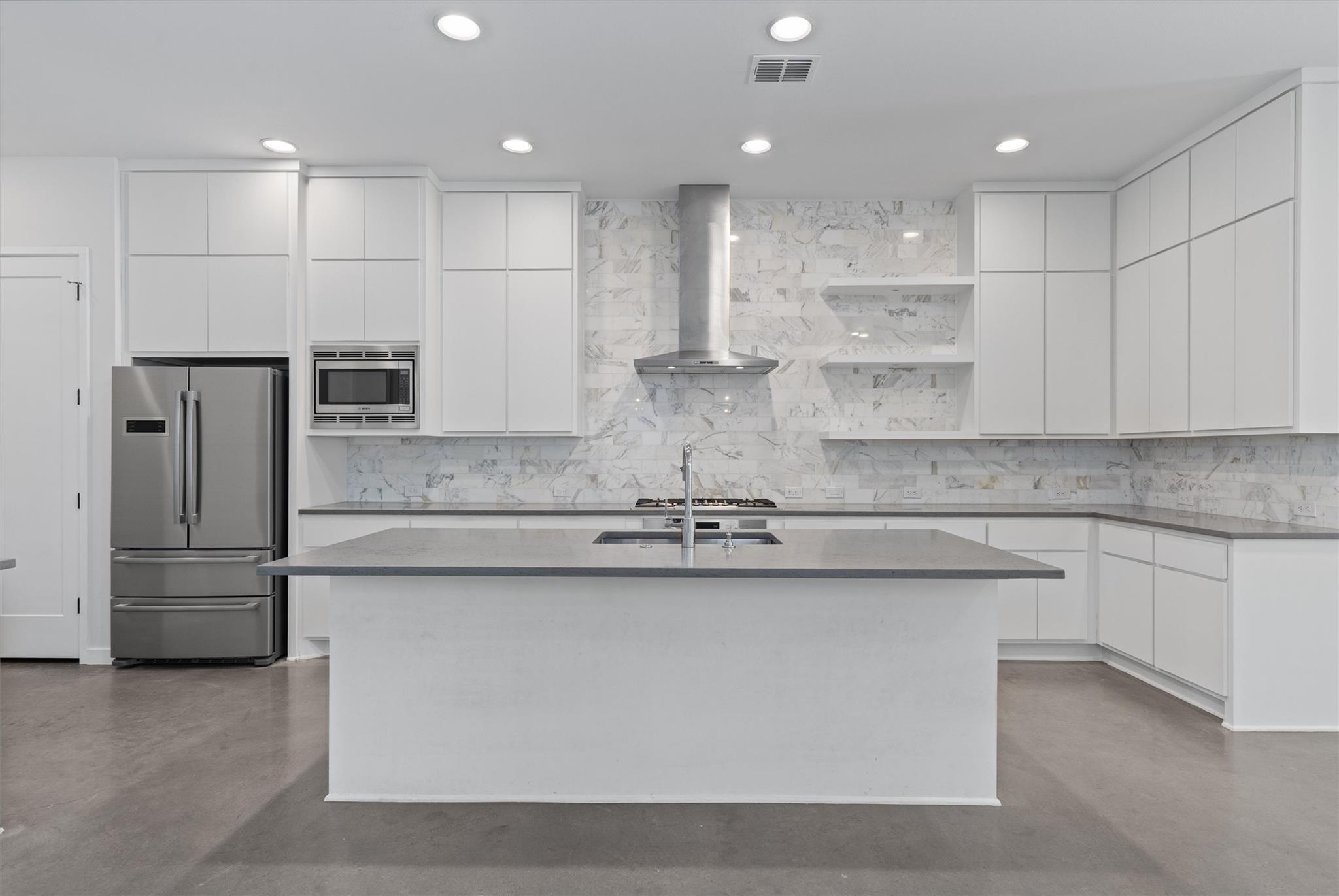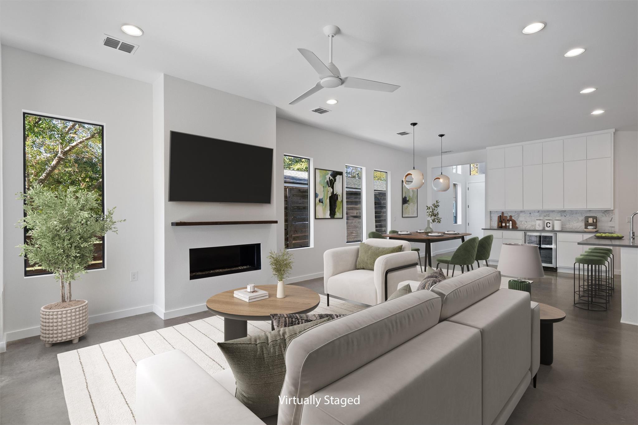 New in Crestview - freshly painted! This contemporary home has an open-concept layout, soaring 10’ ceilings, and 8’ doors throughout. Large windows and designer lighting fill the home with natural light and warmth. The entertainer’s dream kitchen features custom cabinetry, a white Calacatta marble backsplash, Bosch stainless steel appliances, gas cooktop and built-in oven, a built-in wine fridge and a huge island with quartz c...