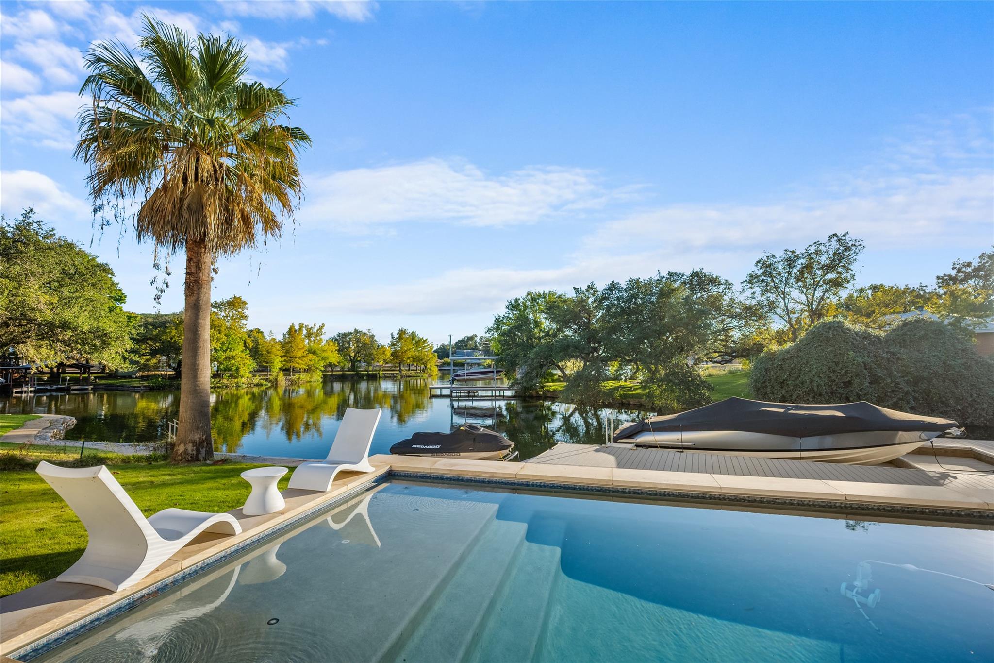 - Boat Lift, Boat Slip, Exterior Steps, Gutters Full, Lighting, Private Yard