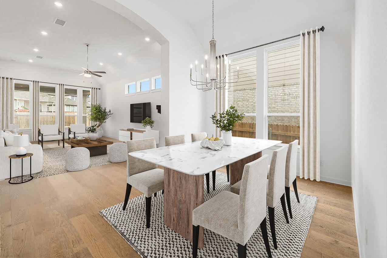 Stunning Highland Homes Build – Ready in November/December! This elegant 215-model floor plan will impress from the moment you arrive with its striking double-entry and custom ceiling details. Boasting 4 spacious bedrooms, 3 luxurious baths, and a 3-car tandem garage, this home offers both style and function. The vaulted ceilings in the kitchen and dining areas enhance the open-concept layout, while the secluded family room—ba...