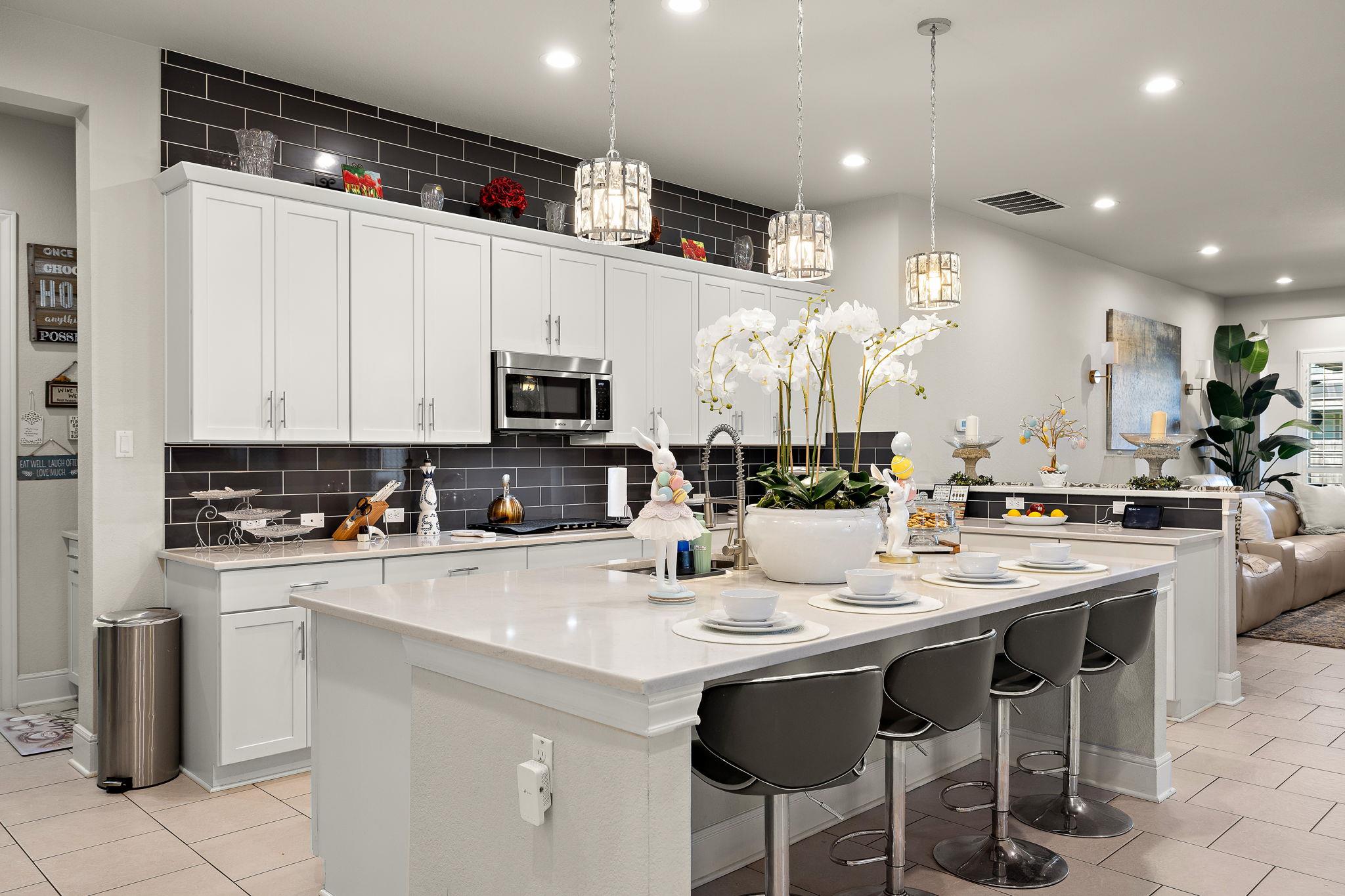 Beautiful one-story home with greenbelt views in highly desirable Teravista! This immaculate 4-bedroom, 3.5-bath home offers 2,731 sq ft of thoughtfully designed living space with stylish upgrades and exceptional indoor-outdoor living. Located across from a greenbelt, the home enjoys peaceful views and the added privacy of no front neighbors. The open-concept layout features quartz countertops, designer dimmable lighting, a s...