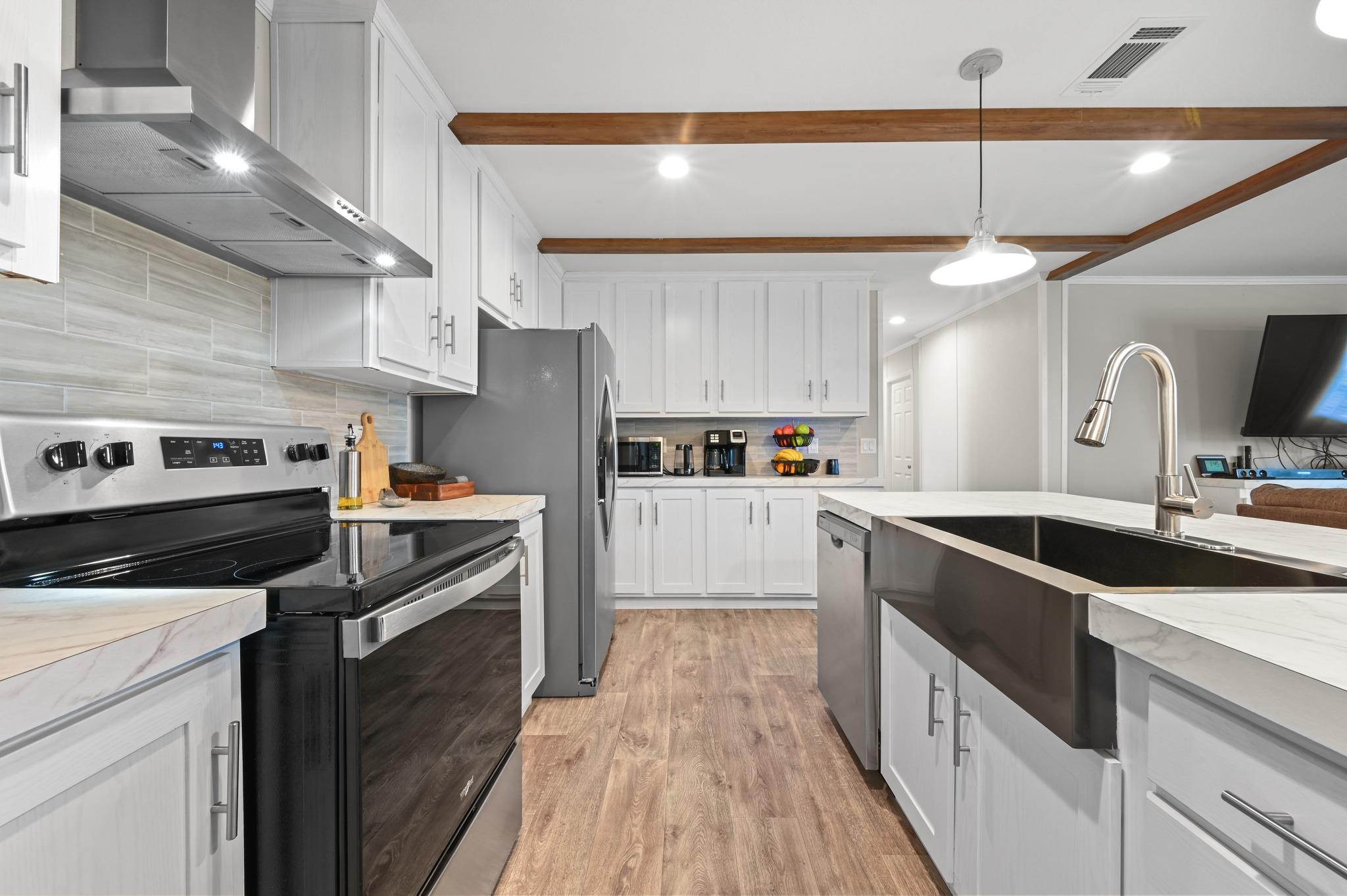 Beautiful 4-bedroom, 3 full bath double-wide mobile home situated on a spacious 1/5 acre fully fenced and gated lot! This stunning home offers plenty of space for everyone, with an open-concept layout perfect for entertaining and everyday living. Enjoy the many upgrades throughout the home, including modern lighting fixtures, an elegant chandelier in the dining area, and stylish ceiling fans that add both comfort and charm. T...