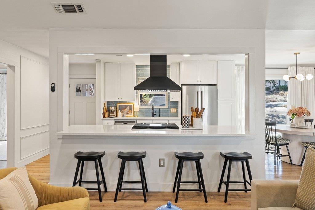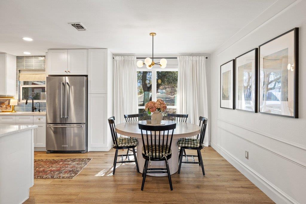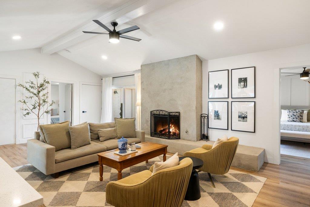 Imagine coming home to a beautifully styled, thoughtfully updated 3-bedroom home with a flex space (which could serve as a 4th bedroom or second living area), 2 baths, abundant natural light, sleek upgrades, and a convenient location. An open-concept layout allows the living, dining, and kitchen spaces to flow seamlessly, anchored by gorgeous light wood–grain oak floors throughout. In the living room, soaring beamed ceilings e...