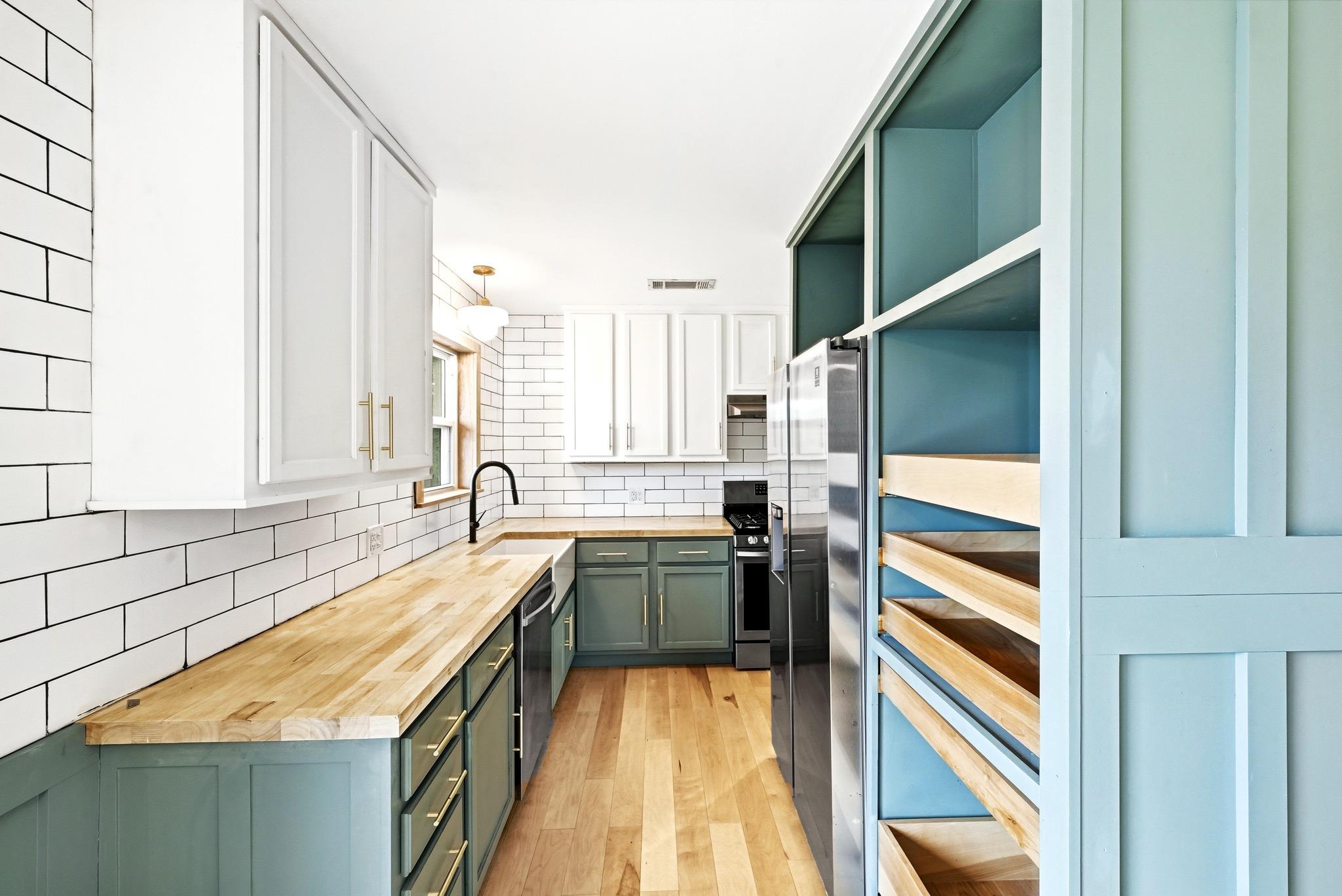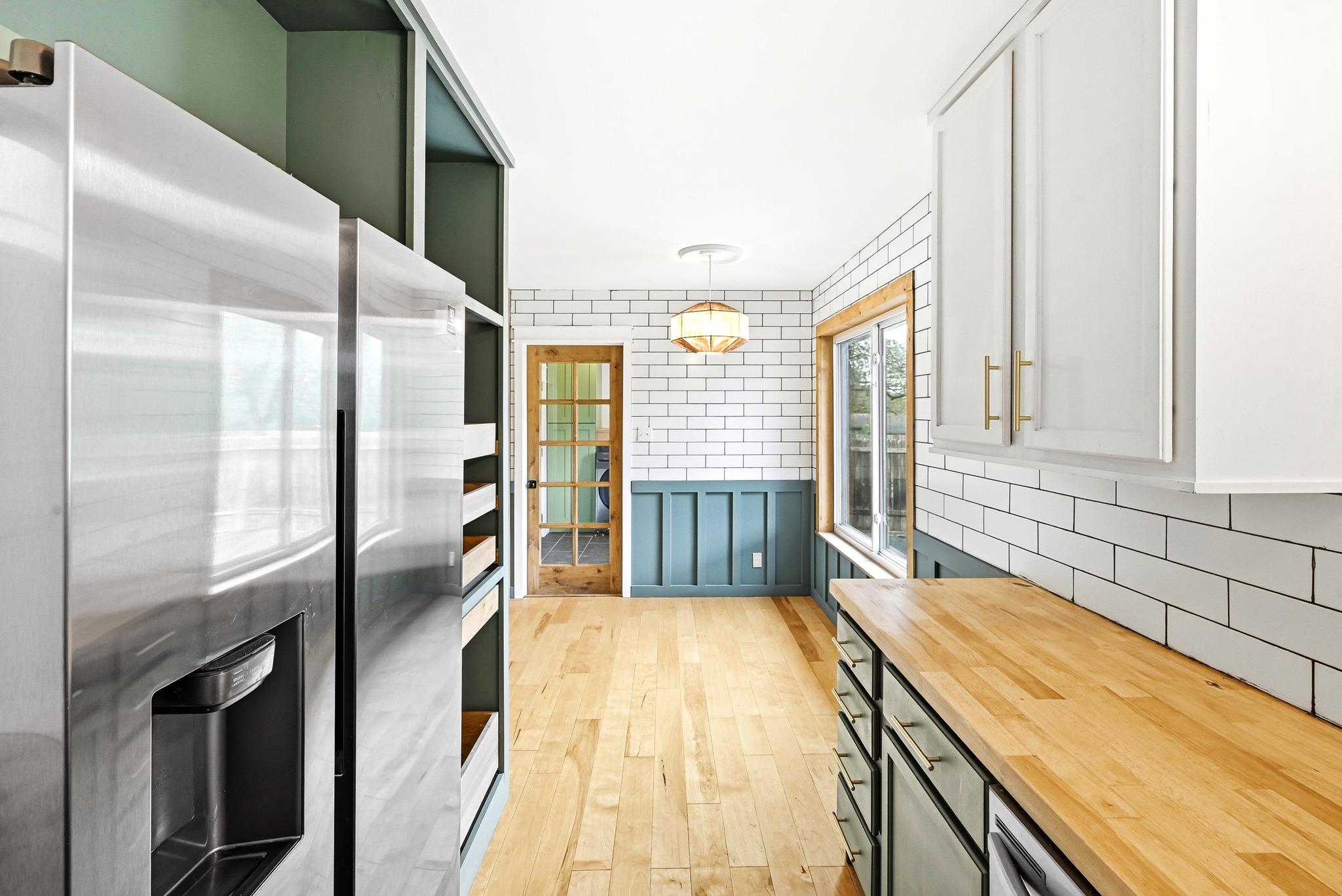 Welcome home to this thoughtfully updated property on a large lot in Wooten Village. Board-and-batten accents throughout the house pair with light colored, engineered hardwood flooring to create a stylish retreat. The remodeled kitchen was designed with functionality and storage in mind, featuring subway-tile walls and backsplash, shaker cabinetry, a custom pantry, farmhouse sink, butcher-block countertops, and stainless steel...