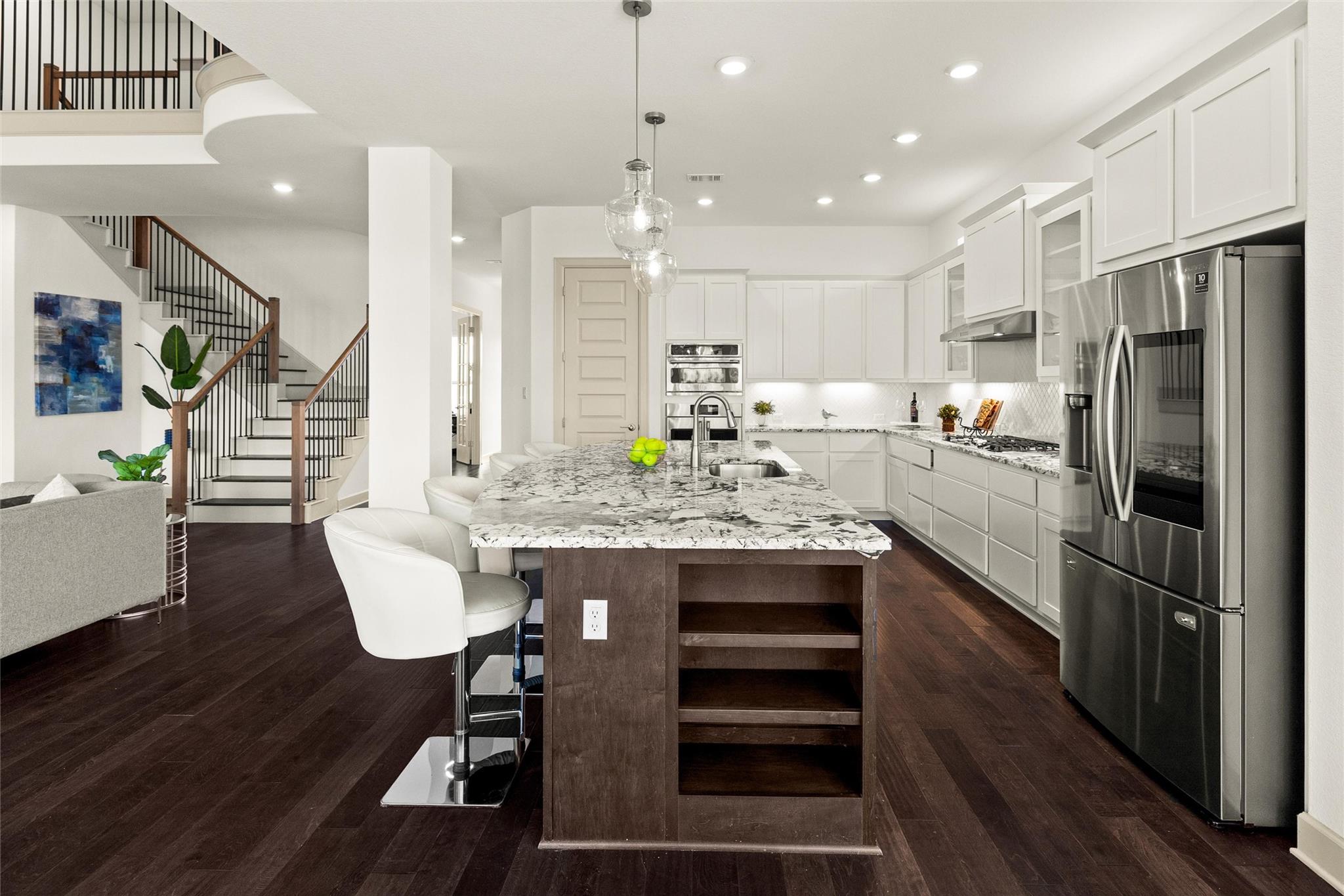 - Breakfast Bar, Ceiling Fan(s), Ceiling-High, Double Vanity, Eat-in Kitchen, Entrance Foyer, High Speed Internet, In-Law Floorplan, Interior Steps, Kitchen Island, Multiple Living Areas, Open Floorplan, +6 more
