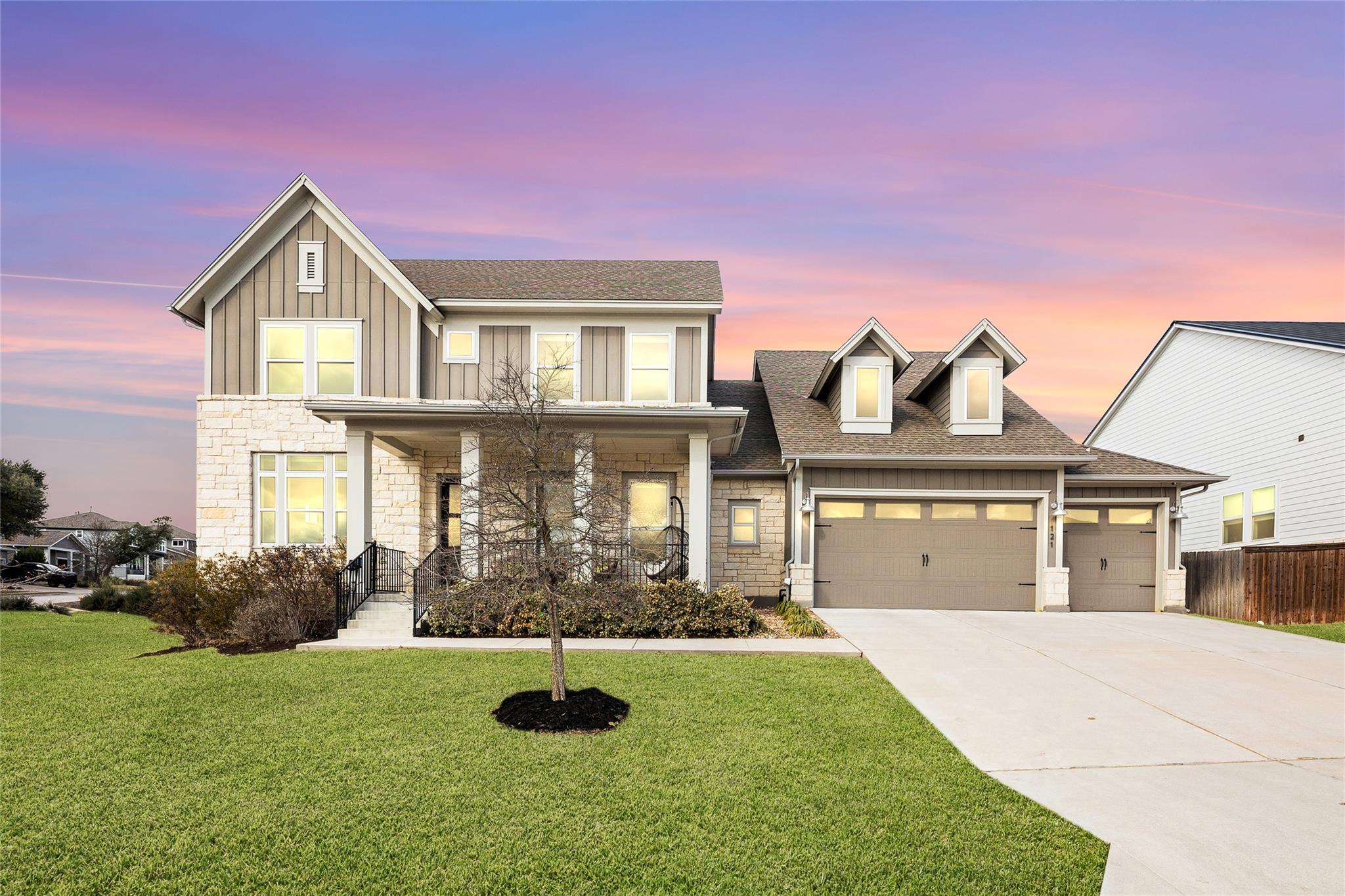 Discover modern Hill Country living in Headwaters at 121 Starfire Drive. Built in 2021 and meticulously maintained, this two-story home offers 5 bedrooms, 4.5 baths, a 3 car-garage, a dedicated office, game room and 3,807 sq. ft. of thoughtfully designed living space all set on a 1/4 acre lot with greenspace along the side and rear, providing added privacy and a peaceful setting rarely found. The main level features an open, ...