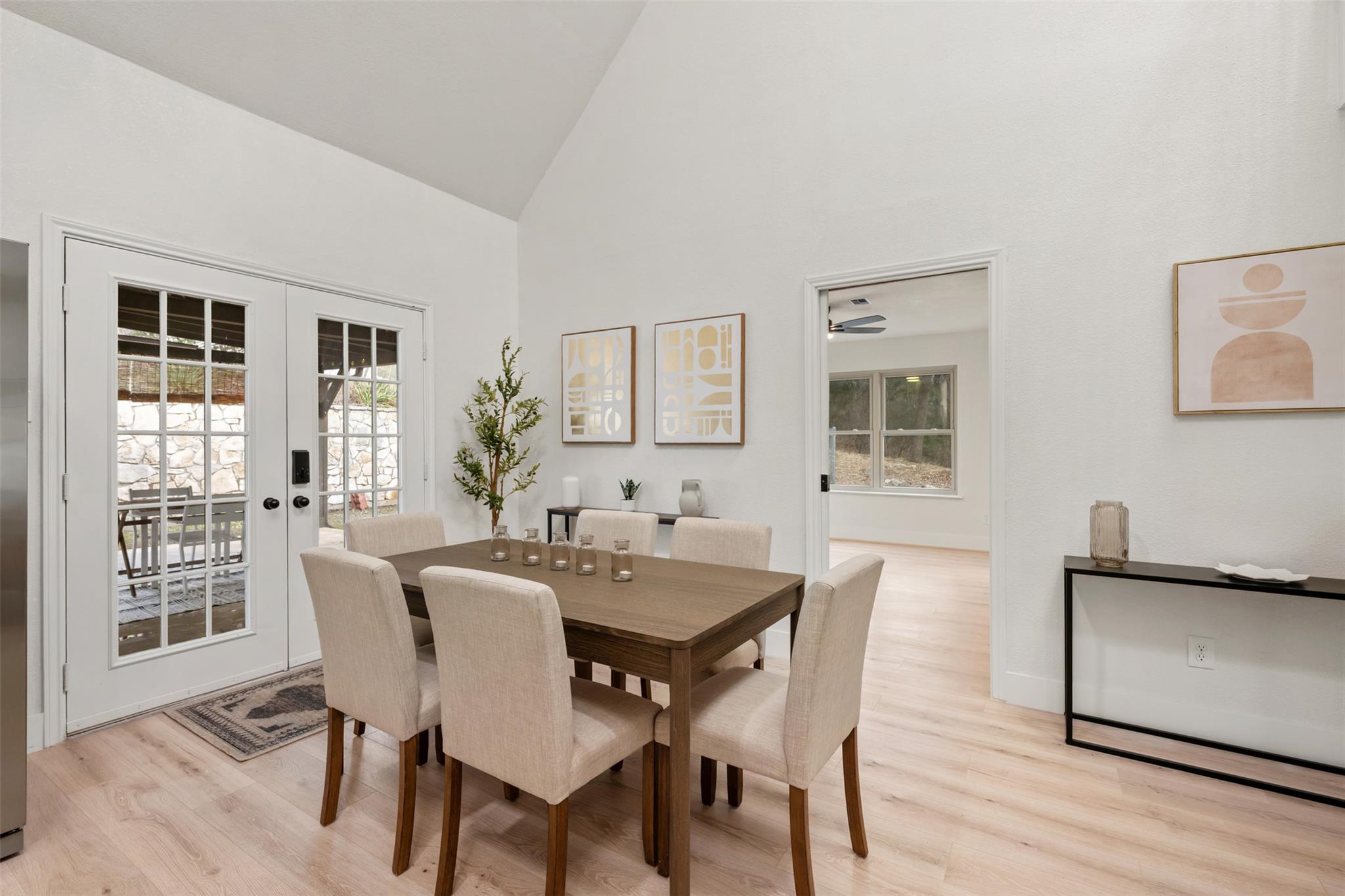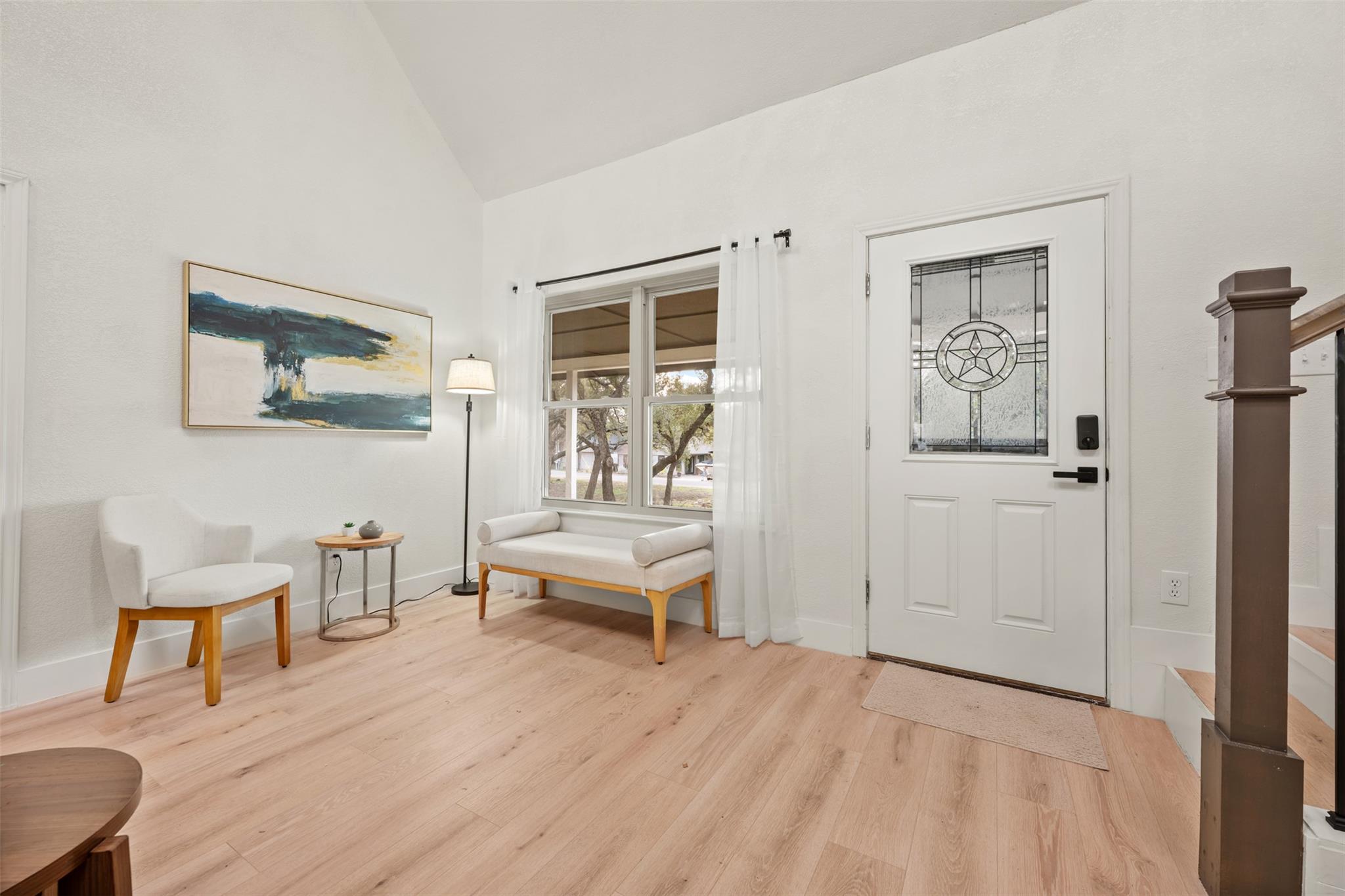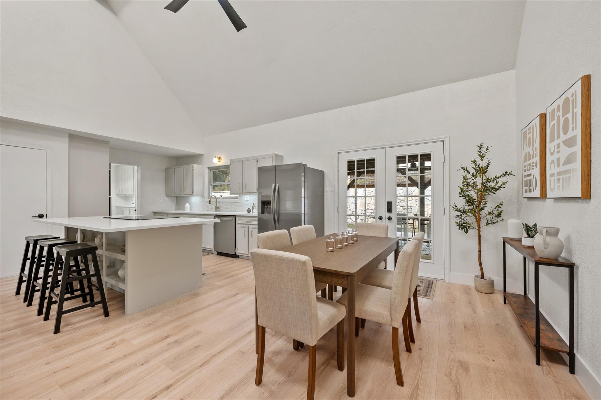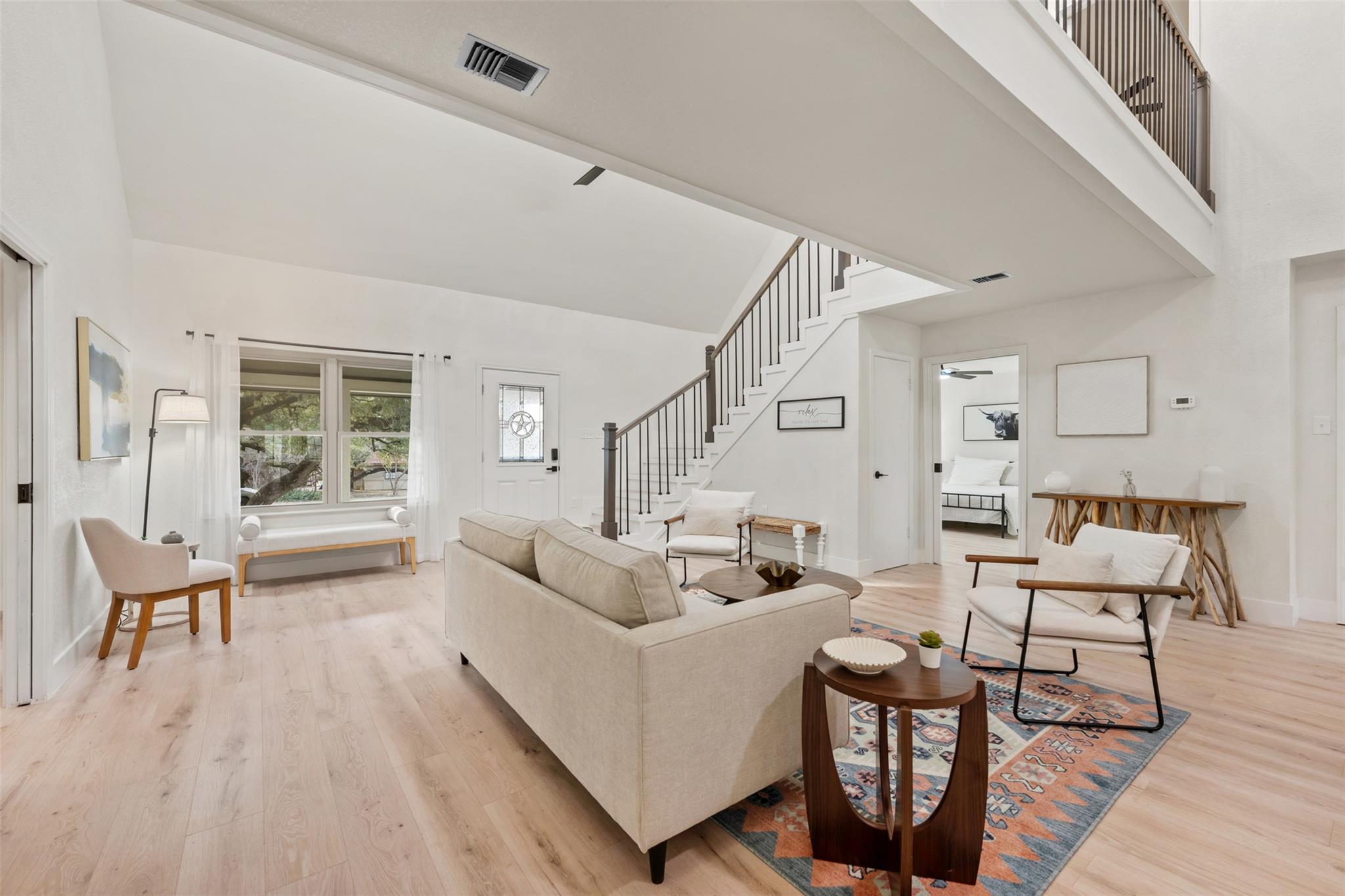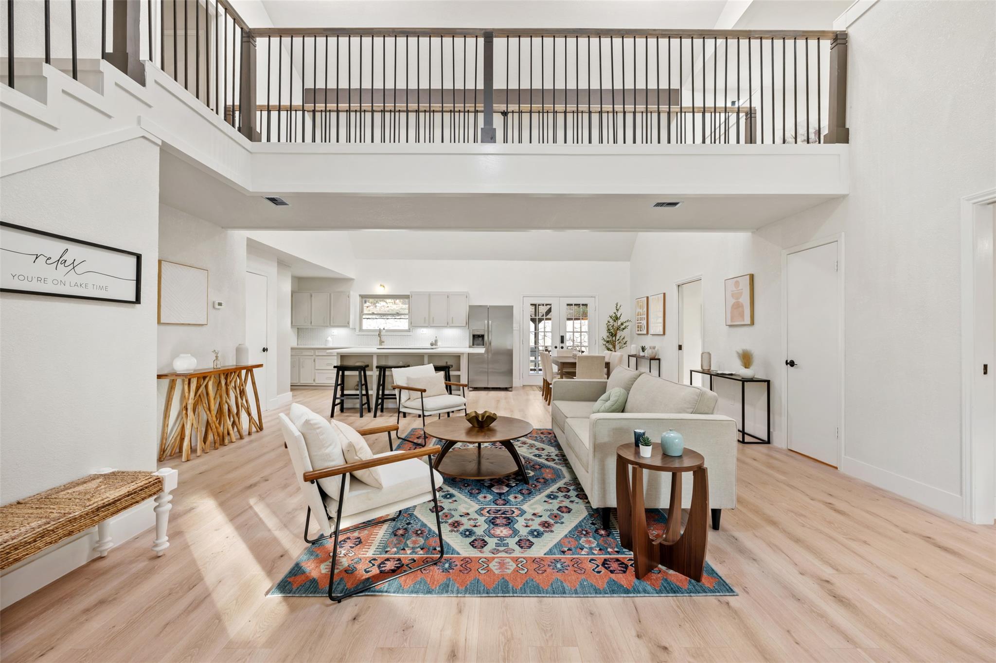Lovely, updated 4 bedroom, 3.5 bath hill country home on 1/2 acre wooded lot on peaceful, dead end street just a stone's throw from Lake LBJ. Relax on the large, covered front porch overlooking the gently sloping yard with magnificent oak trees. Dramatic 2-story entry with cathedral, wood beam ceilings & cat walk with wrought iron stair railings. Terrific, open floorpan with luxury vinyl plank flooring throughout. Huge island ...