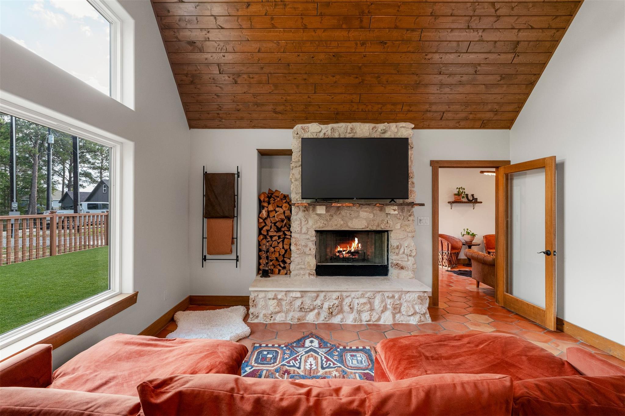 This Tahitian Village single-family home with 3 bedrooms and 2 bathrooms on a quiet cul-de-sac, surrounded by towering pine trees, offers a Colorado mountain cottage feel just outside Bastrop. Set on a 0.25-acre lot, this Tahitian Village home brings together natural materials, dramatic architecture, and wooded surroundings that shape the experience of the property from the moment you arrive. The front yard features artificial...