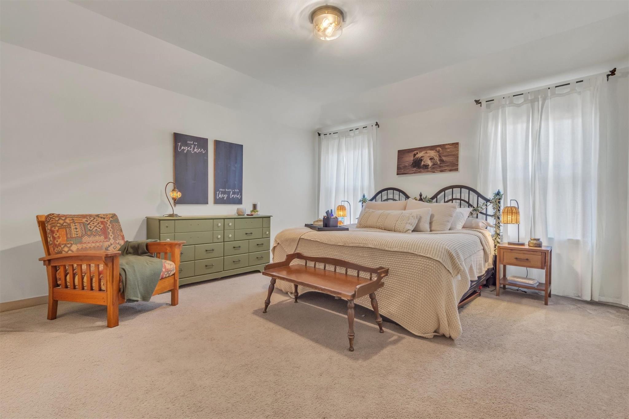 This beautifully maintained single-story home offers inviting curb appeal, a spacious open-concept layout, and move-in ready comfort. A wide entryway leads into a bright living, dining, and kitchen area filled with natural light—perfect for both entertaining and everyday living. The kitchen features dark cabinetry, ample counter space, and a convenient breakfast bar overlooking the main living area. The private primary suite o...