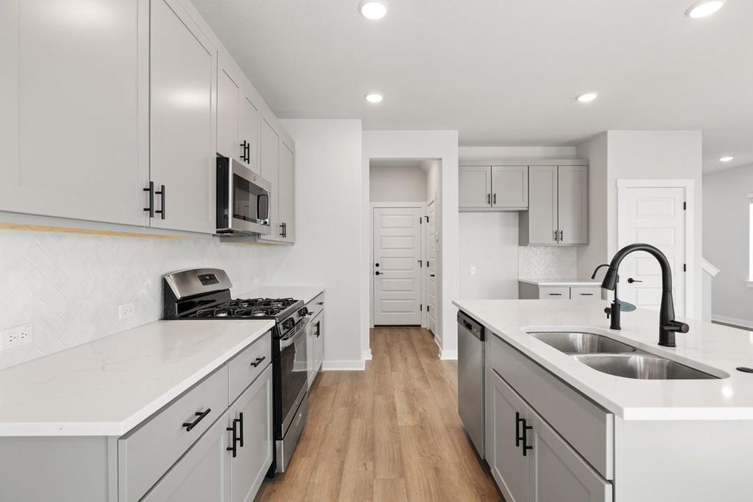 Enter through a charming covered porch into an open-concept living space with a spacious great room, perfect for relaxation and gatherings. The kitchen, complete with an island and adjacent dining area, makes entertaining a breeze. The outdoor living area offers a peaceful retreat for morning coffee or evening relaxation. A well-sized garage provides secure parking and additional storage. This layout is ideal for modern living...