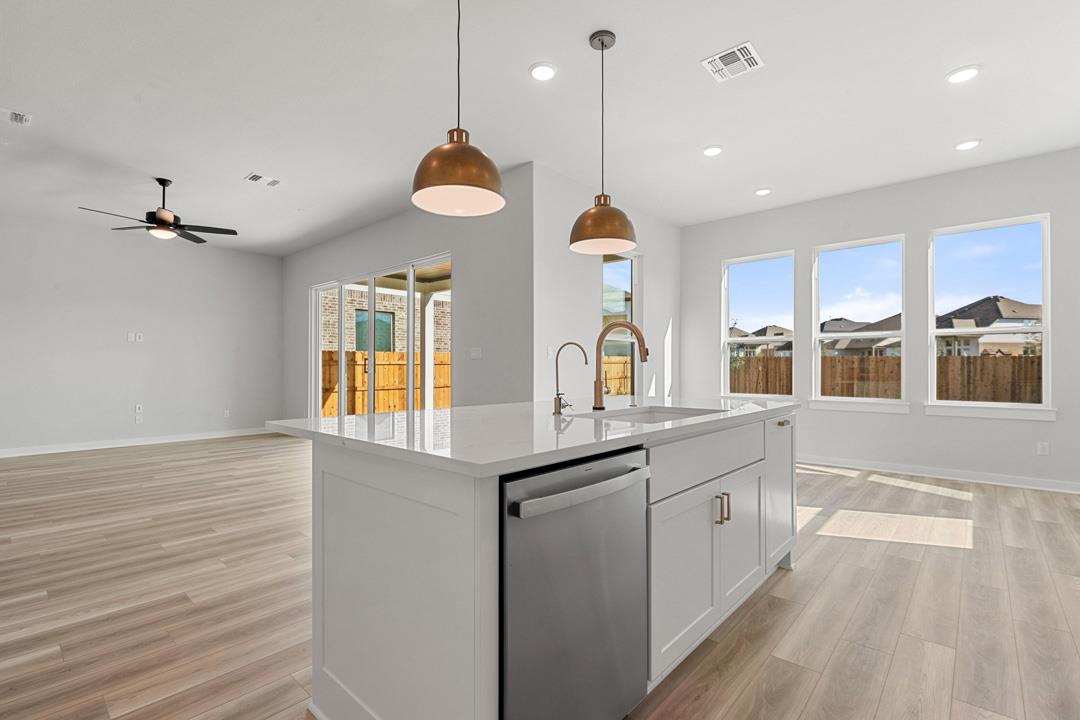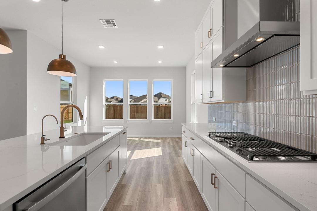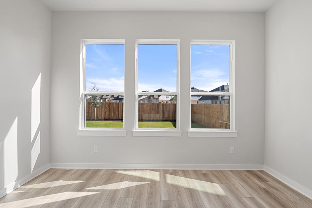 This open-concept home is the ultimate home for flexibility. Need a home office? The flex space off the foyer is a great spot. Or perhaps you host frequent guests? A large loft upstairs, filled with natural light makes a bright and cheerful playroom. It also serves as a buffer between three secondary bedrooms and the primary suite with spa-like bathroom and large walk-in closets. Need more zen? Enjoy the optional soaking tub.
