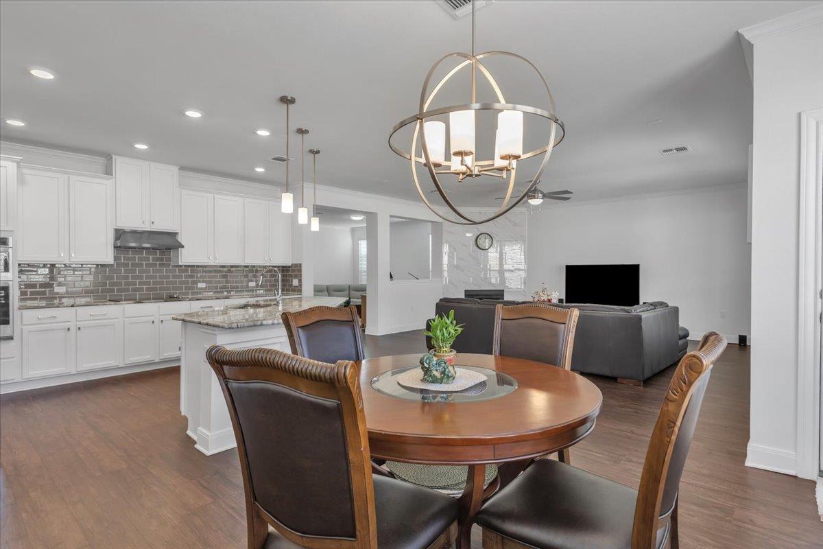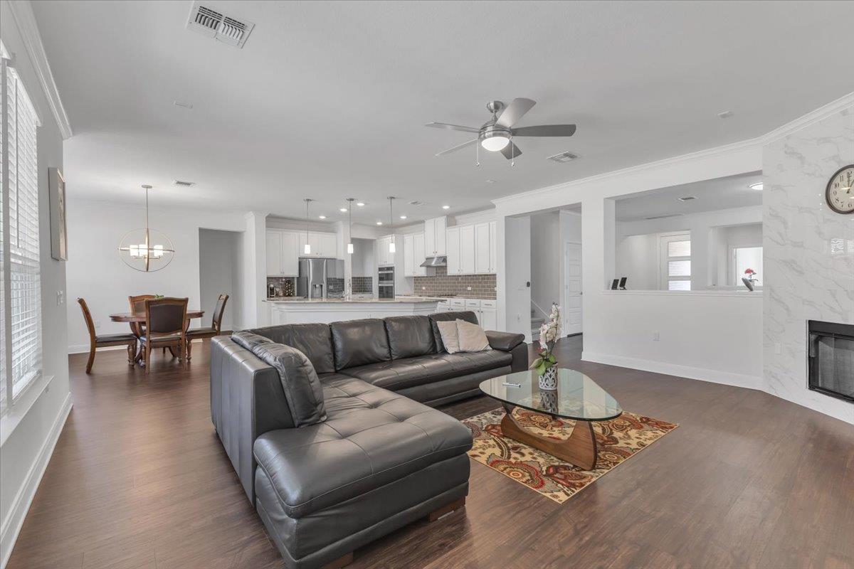 Experience energy efficiency and contemporary design in this spectacular, nearly new two-story home featuring an open floor plan and a spacious great room. Luxury vinyl plank flooring flows throughout the main living areas, complemented by multiple upgrades, including plush carpeting. The gourmet kitchen features high-end appliances, a premium refrigerator, extended breakfast/bar counter, tile backsplash, granite countertops, ...