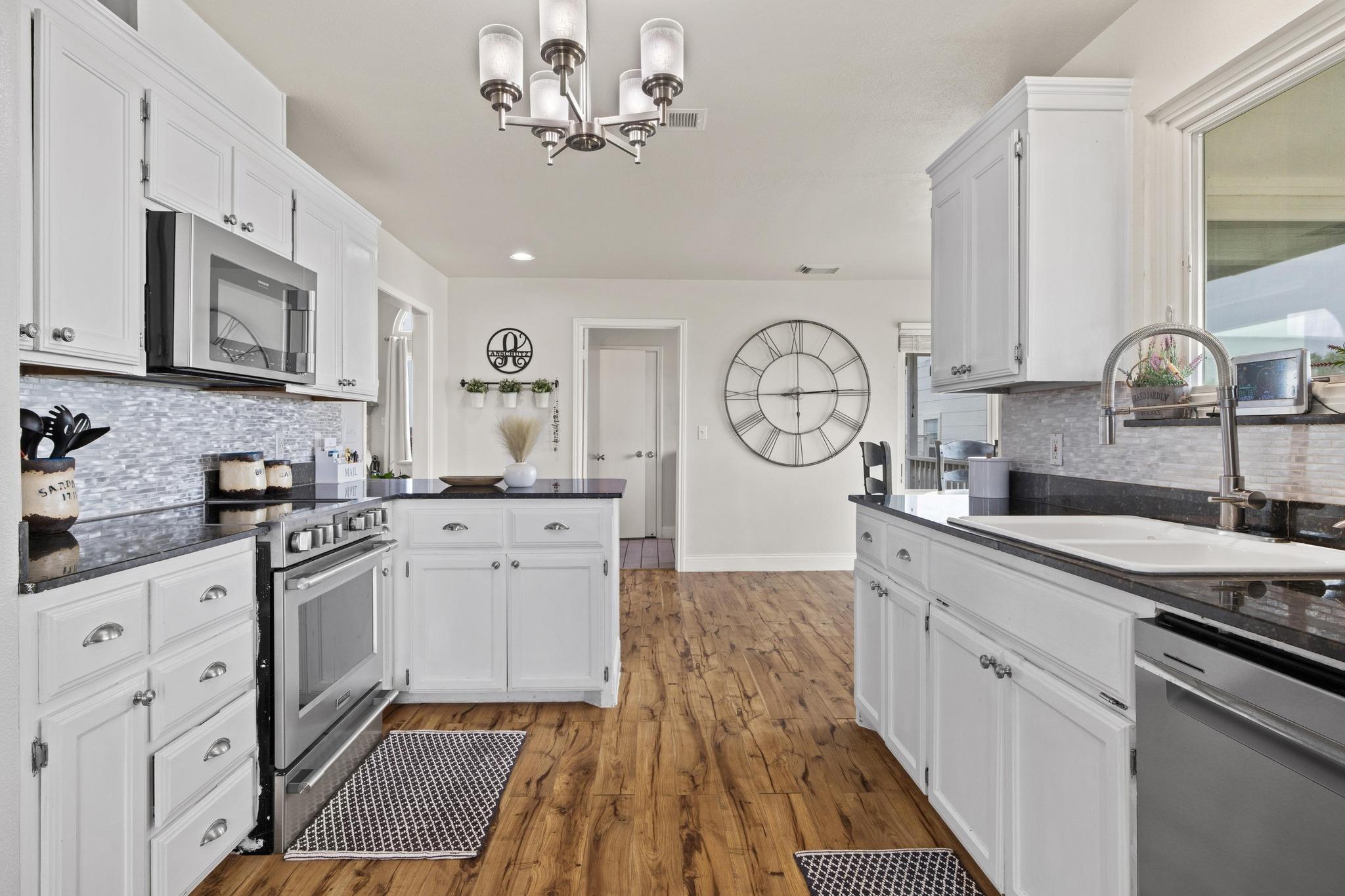 - Dishwasher, Electric Range, Exhaust Fan, Microwave, Stainless Steel Appliance(s), Electric Water Heater, Water Softener Owned