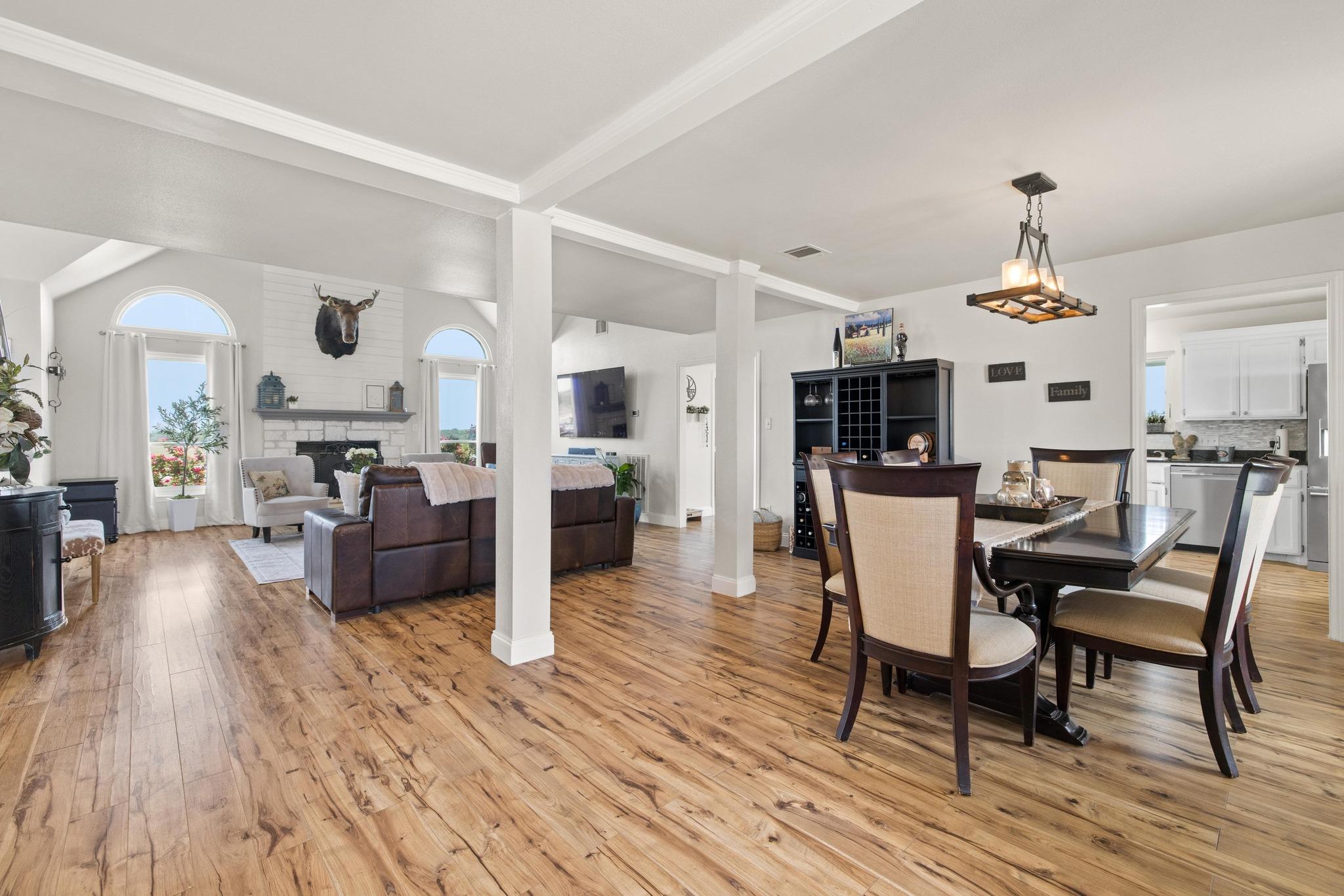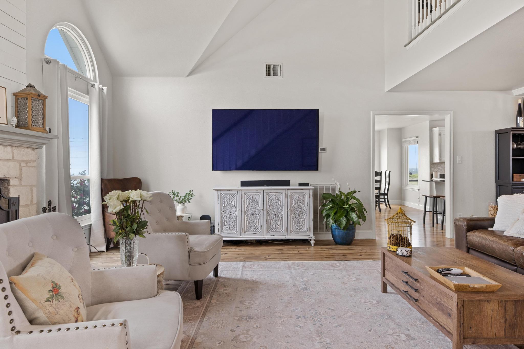 Step into this Hill Country retreat on almost 50 acres of gently rolling land with very minimal restrictions—privacy, freedom, and space all wrapped up into one stunning package. The charming stone-front farmhouse welcomes you with a relaxed, half-wraparound porch—perfect for sipping coffee at sunrise or watching the sunset over your own fields. Inside, vaulted ceilings, Anderson windows with lifetime warranty, and an open-...