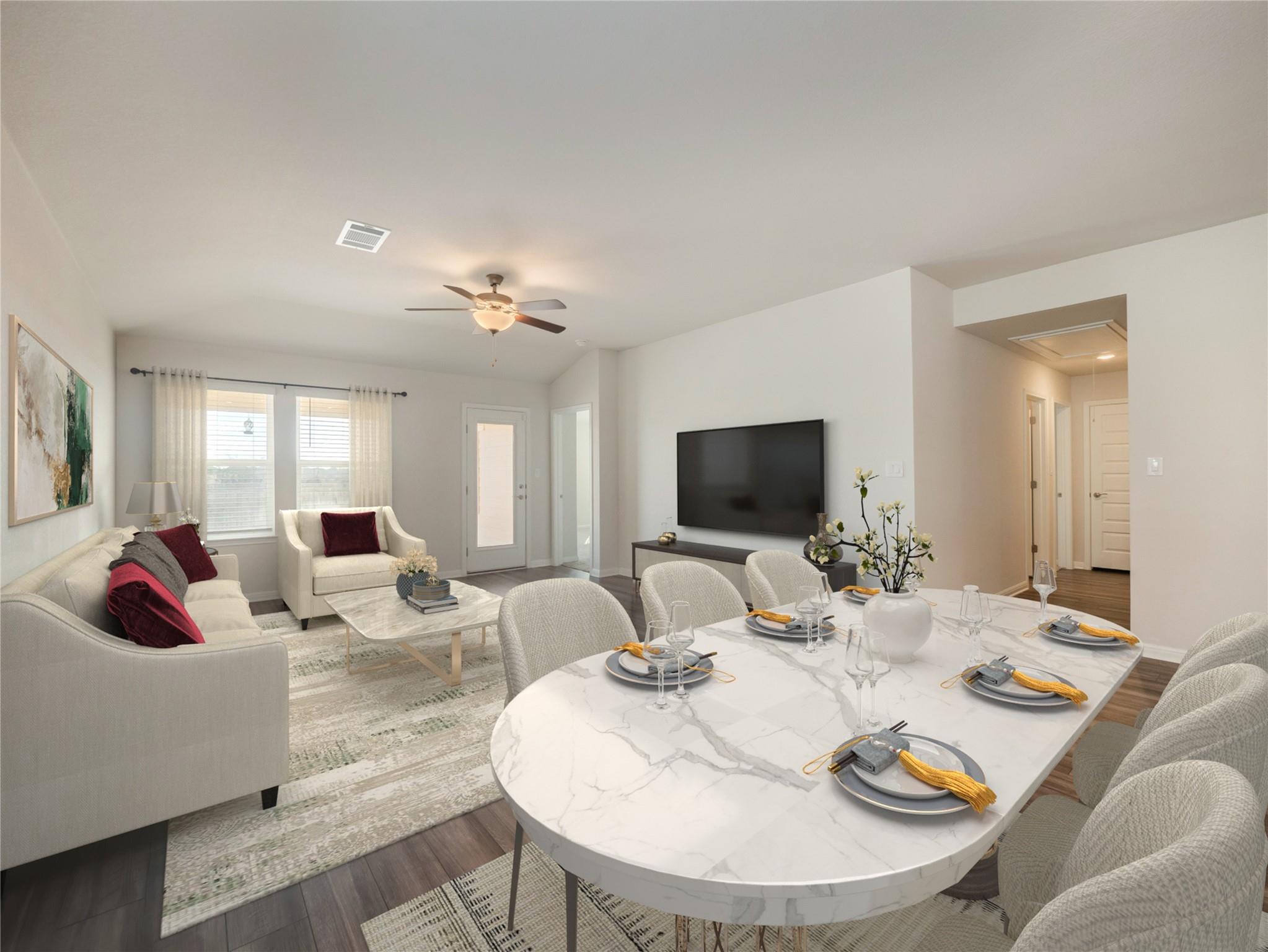 This stunning home boasts excellent curb appeal and feels brand new, featuring 3 spacious bedrooms and 2 modern bathrooms within 1,853 square feet. Experience an open floor plan adorned with luxury vinyl plank flooring and a designated office for your convenience. The bright and airy island kitchen is a chef's dream, equipped with Energy Star appliances, pull-out shelves, and elegant quartz countertops. The primary ensuite o...