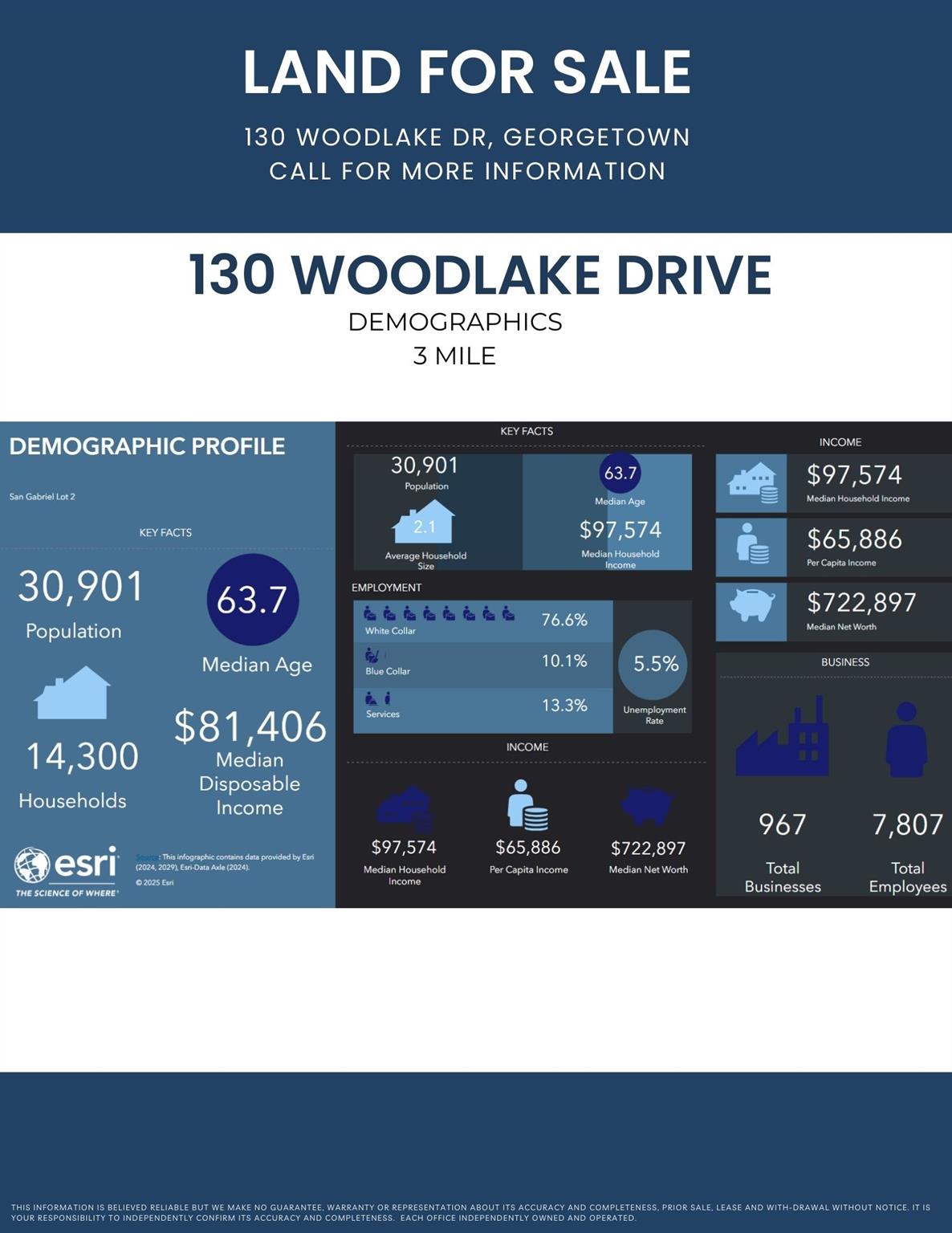 One of the fastest growing areas of Georgetown and Williamson County. New growth corridor. Please view flyer for traffic counts and demographics. Easy access with a light at Williams @ Woodlake. Zoned local commercial allowing for retail, office, professional, medical, food and education. Survey, demographics and commercial flyer in attachments.