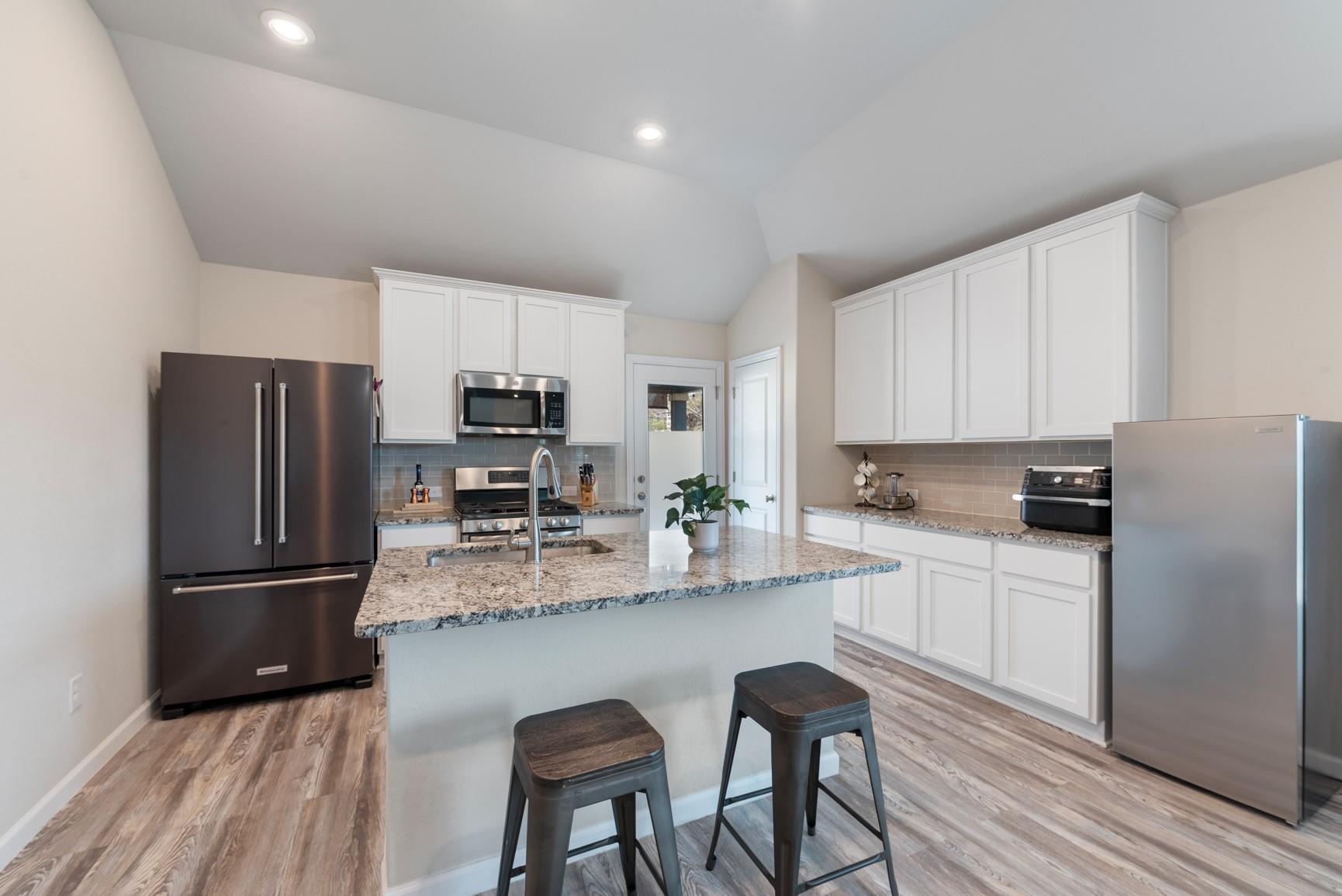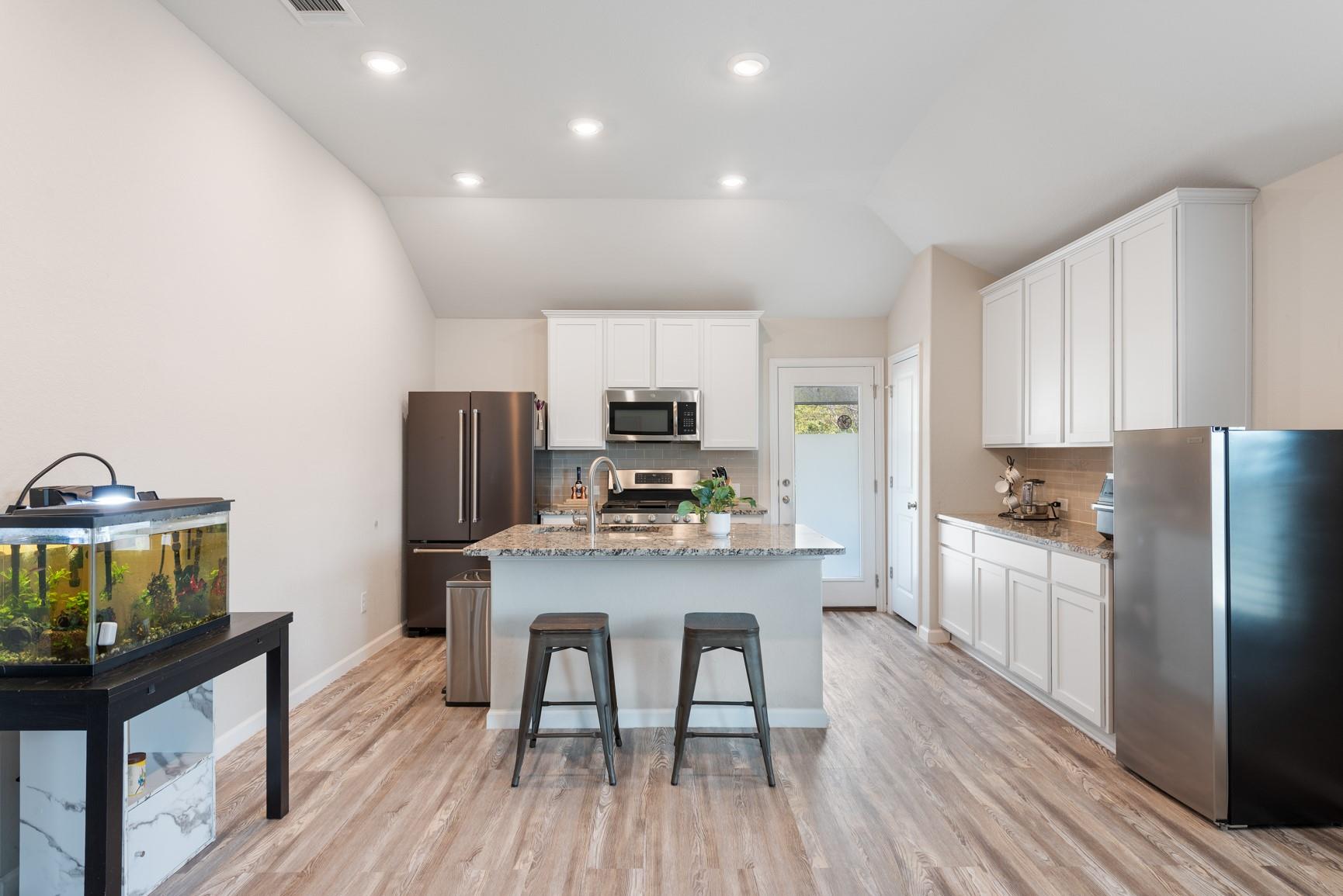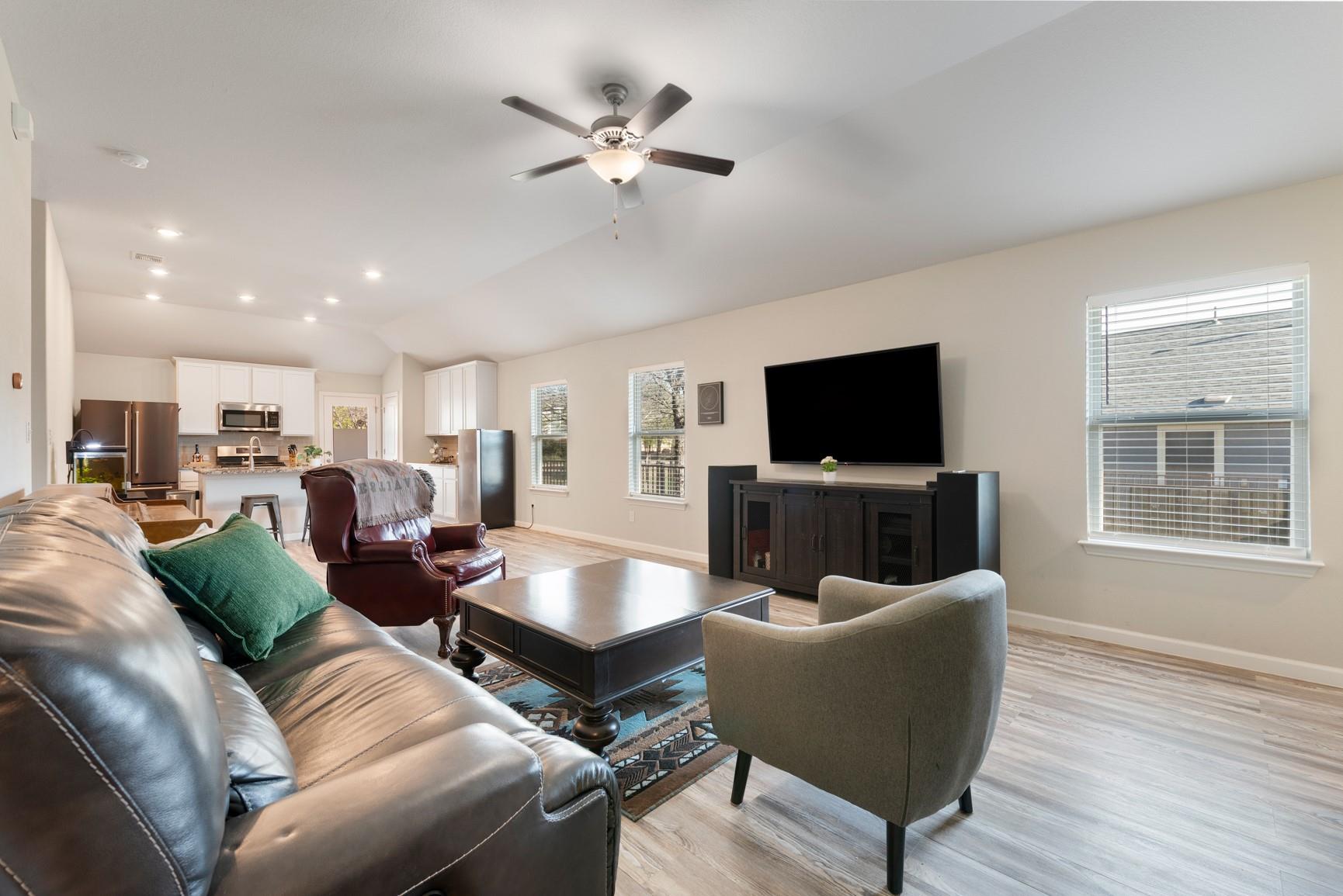 Beautiful one-story home featuring 4 bedrooms and 2 bathrooms with an open-concept layout designed for both comfort and functionality. The modern kitchen showcases granite countertops, stainless steel appliances, a built-in microwave, 42” white cabinetry, and a large center island, all overlooking the main living area. The home features wood-look luxury vinyl plank flooring, abundant natural light, and thoughtful upgrades thr...