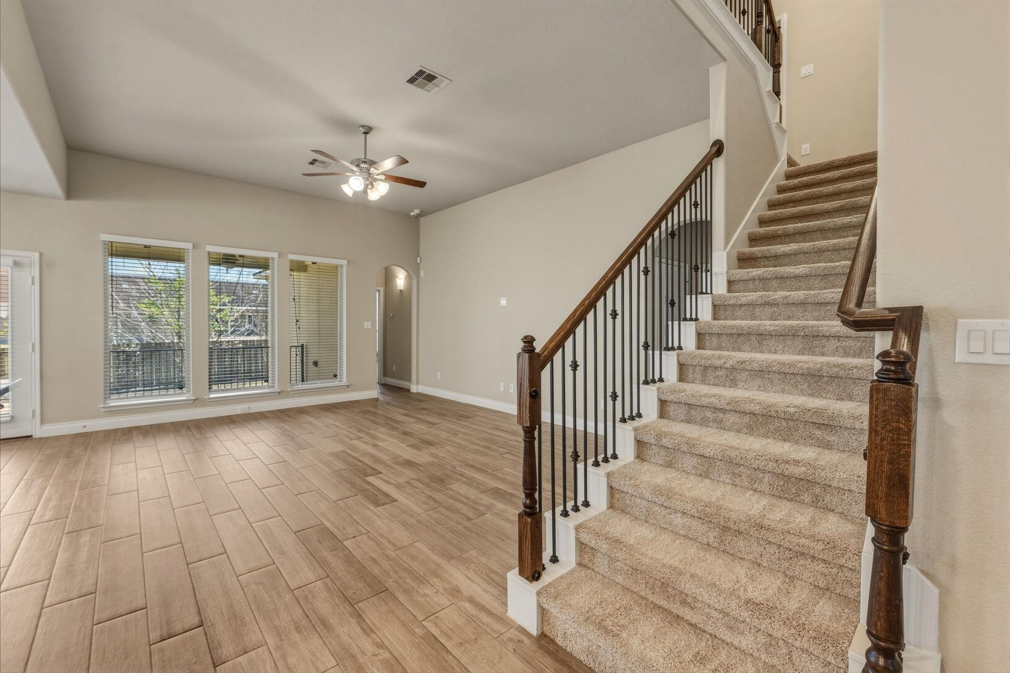 Welcome to 1320 Low Branch Ln in Leander, Texas, a stunning move in ready home located in the highly sought after Deerbrooke community in Leander ISD. From the moment you walk through the front door, the home makes a grand impression with soaring double height ceilings, expansive windows, and an open layout that fills the living spaces with natural light. The spacious living room flows into a chef inspired kitchen featuring s...