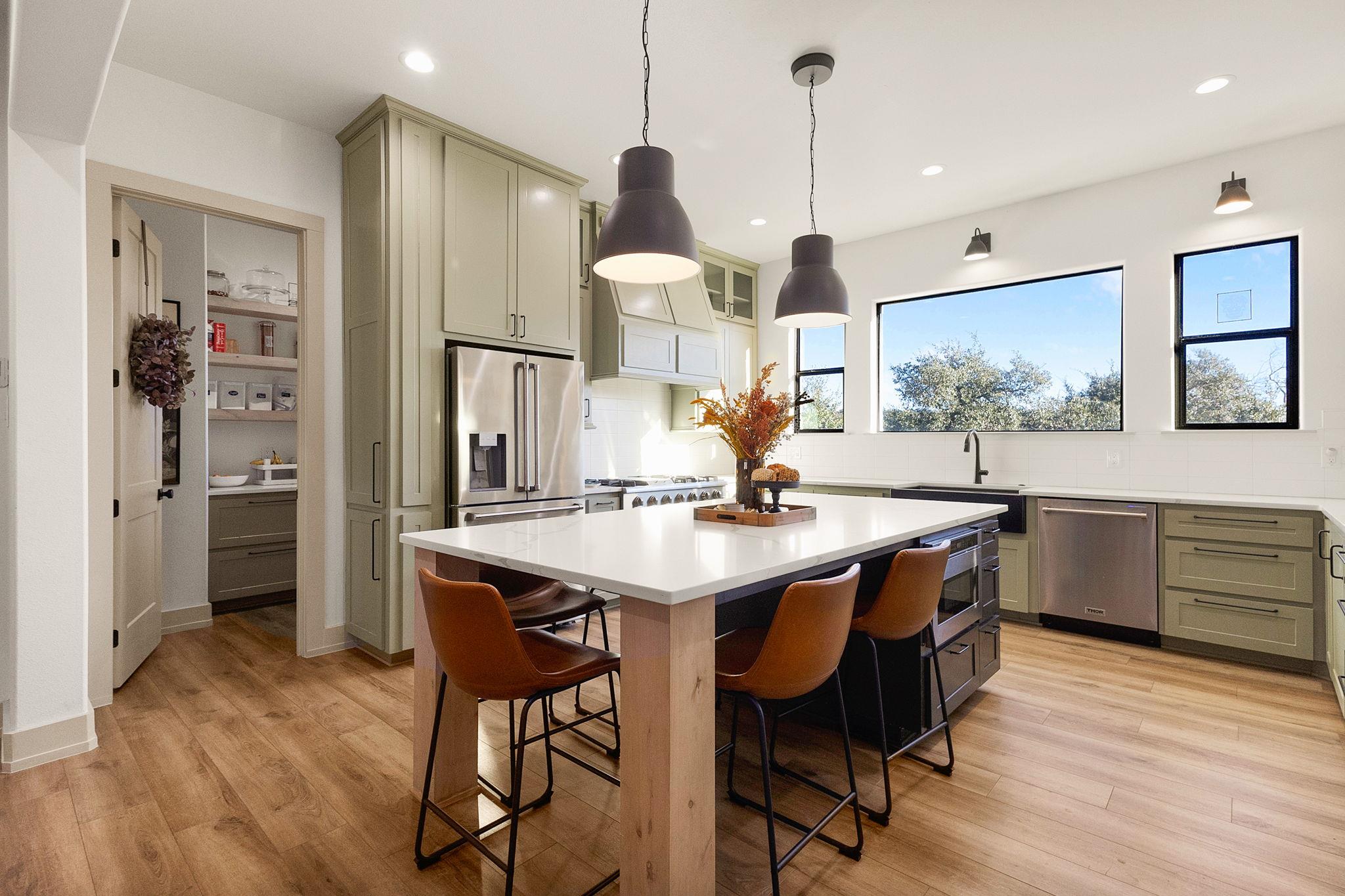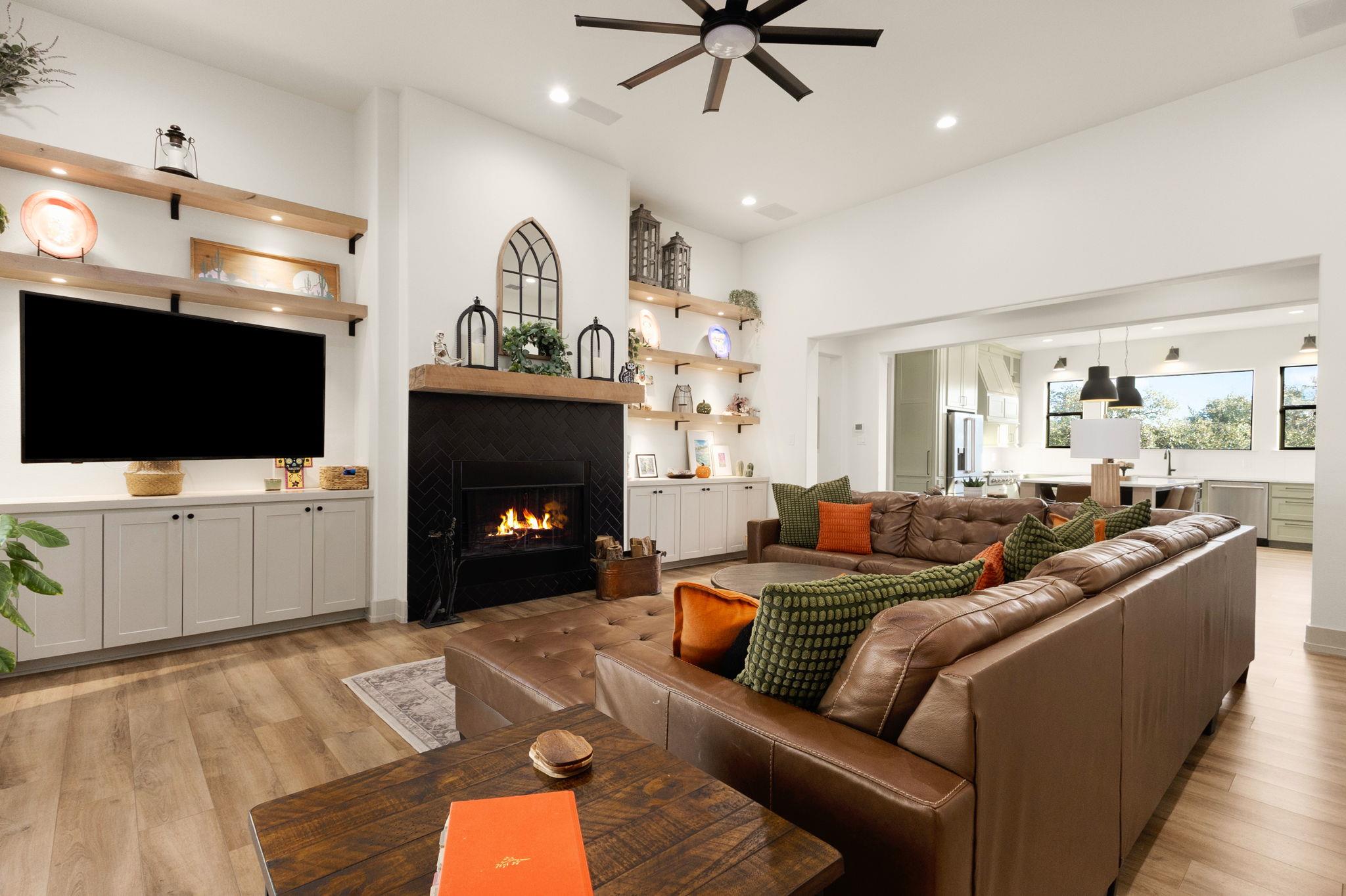 Sellers will also consider offering OWNER FINANCING!!!! Custom-built 2023 showpiece home in Vintage Oaks just outside of New Braunfels city limits. Every detail has been thoughtfully curated, from the grand iron front door and tiled feature fireplace to the soaring ceilings and walls of windows that fill the home with natural light. The heart of the home is an exquisite gourmet kitchen with a walk-in pantry, custom cabinetry, ...