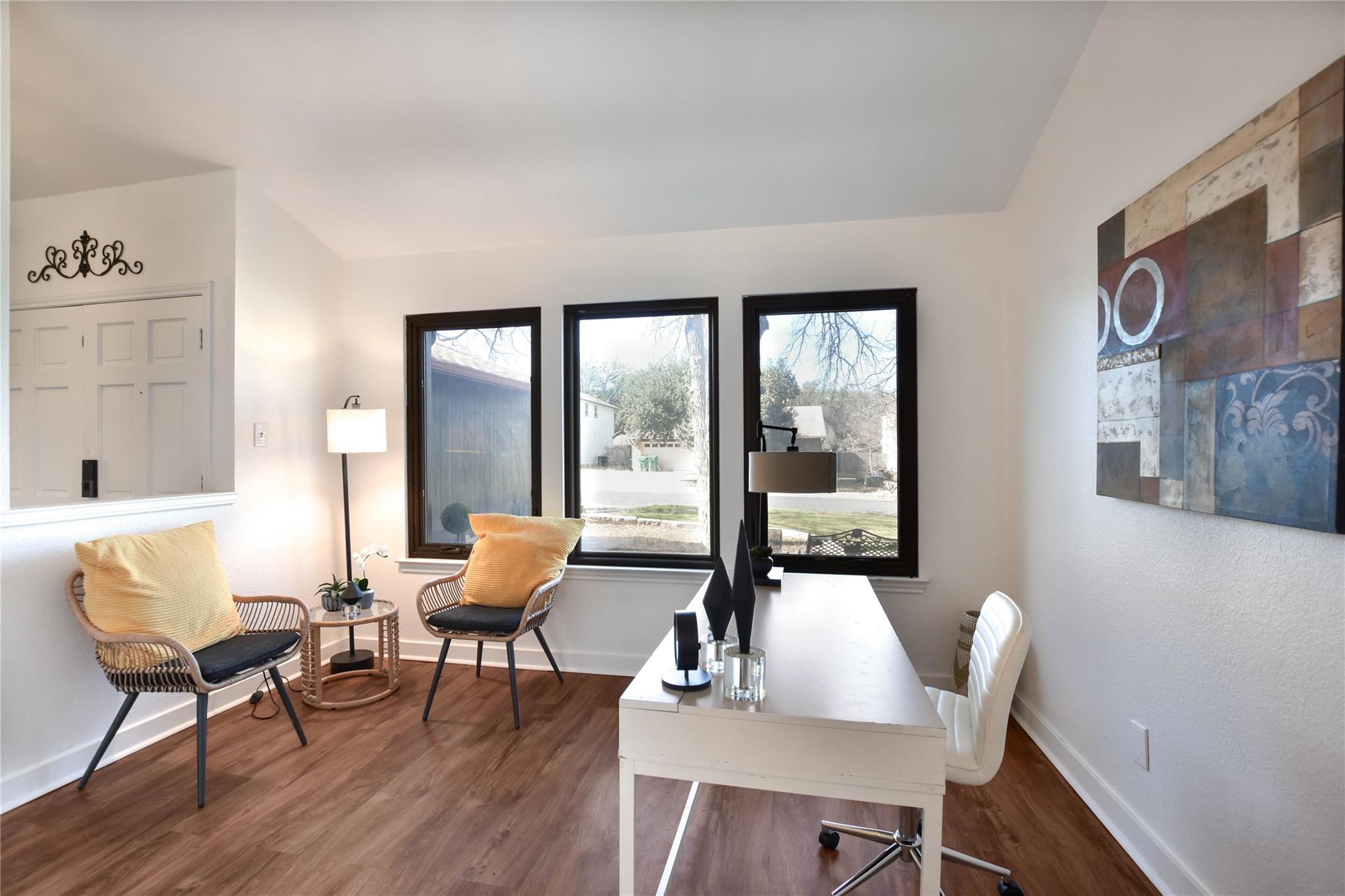 Seller installing new hvac central system tuesday march 3. New duct work already installed. Don't miss this beautifully updated home in Anderson Mill West! As you enter, you'll find a versatile flex room- perfect as a formal dining or home office. The inviting living room features vaulted ceilings and a cozy wood-burning fireplace, creating a warm and welcoming place to gather. The kitchen has been thoughtfully updated with gr...