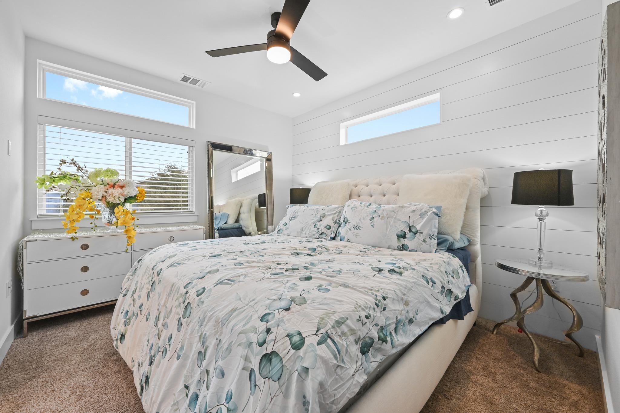 Modern architectural design meets South Austin lifestyle in this stunning 3-bedroom, 3-bath residence in the heart of 78745. Thoughtfully designed with soaring ceilings, abundant natural light, and warm organic finishes throughout. The open-concept living space features dramatic vaulted ceilings and seamless flow into the dining area and designer kitchen, complete with quartz countertops, dark cabinetry, subway tile backsplash...