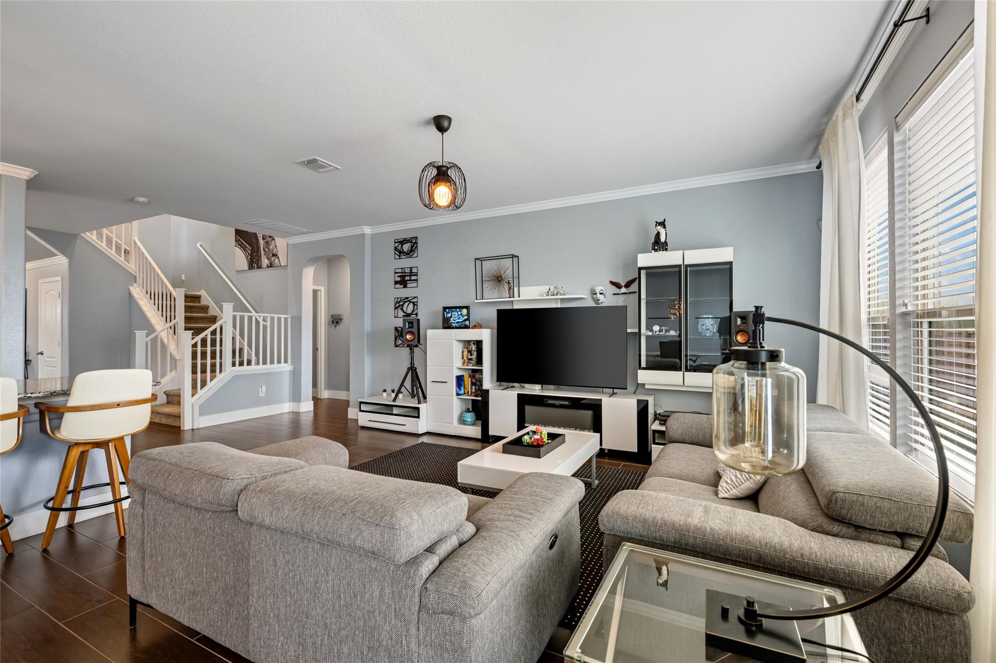 Welcome to 14221 James Garfield in Manor, Tx, a well maintained two-story home featuring 4 bedrooms and 2.5 bathrooms. Beautifully designed home offering a spacious and functional layout with stylish finishes throughout. As you enter, you are welcomed by an inviting foyer featuring elegant tile flooring, high ceilings, and a striking staircase that adds architectural character to the space. The open-concept design seamlessly ...