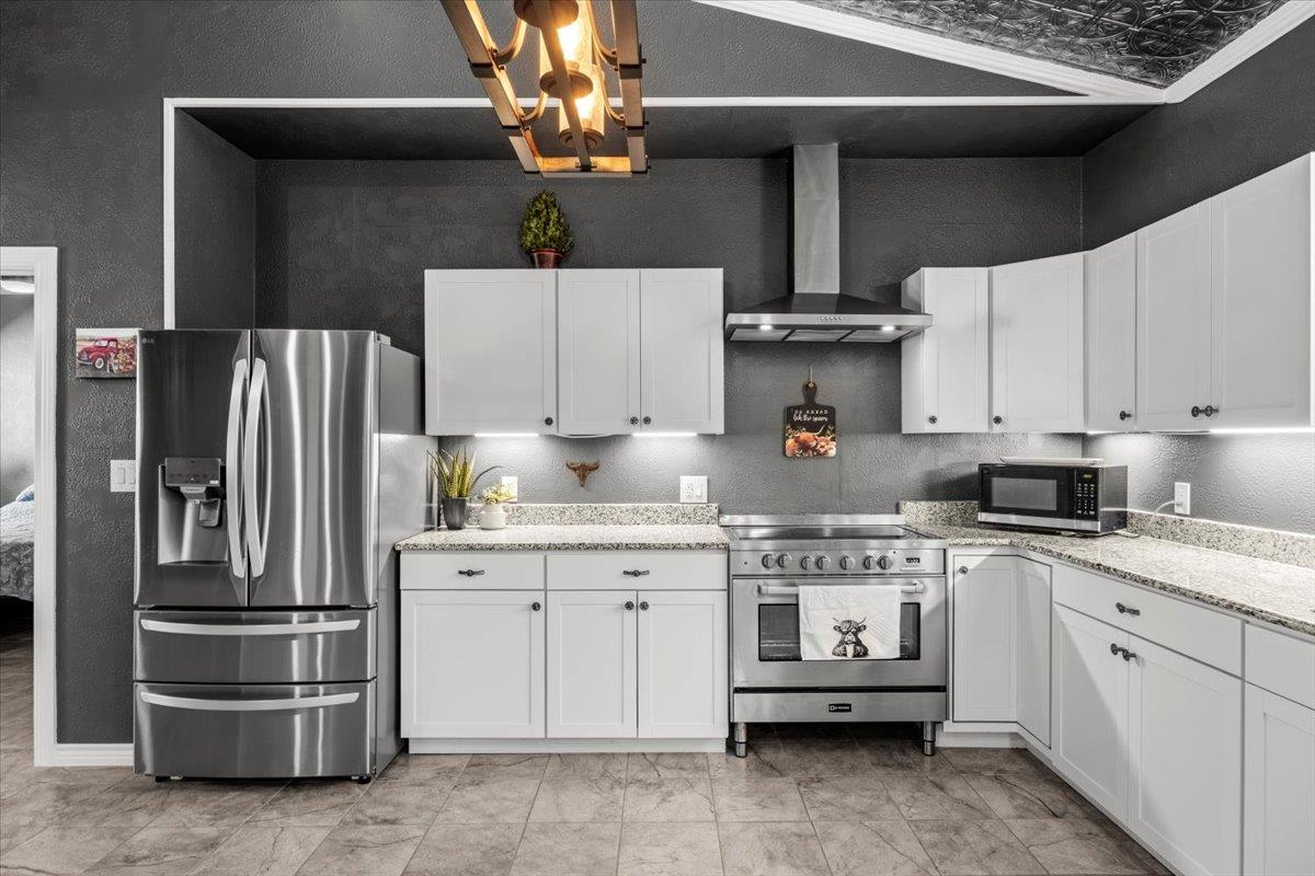 Multi-purpose property with no zoning or deed restrictions with easy access to 290 and 21. Four treed acres fenced and cross-fenced. Clean, well-maintained Texas themed barndominium with full covered front porch. Open design interior with soaring stamped tin-style ceilings. Internet is enhanced with Cat 6 wiring. The kitchen features a 5 burner Verona range accompanied by stainless dishwasher and refrigerator, and miles of cou...