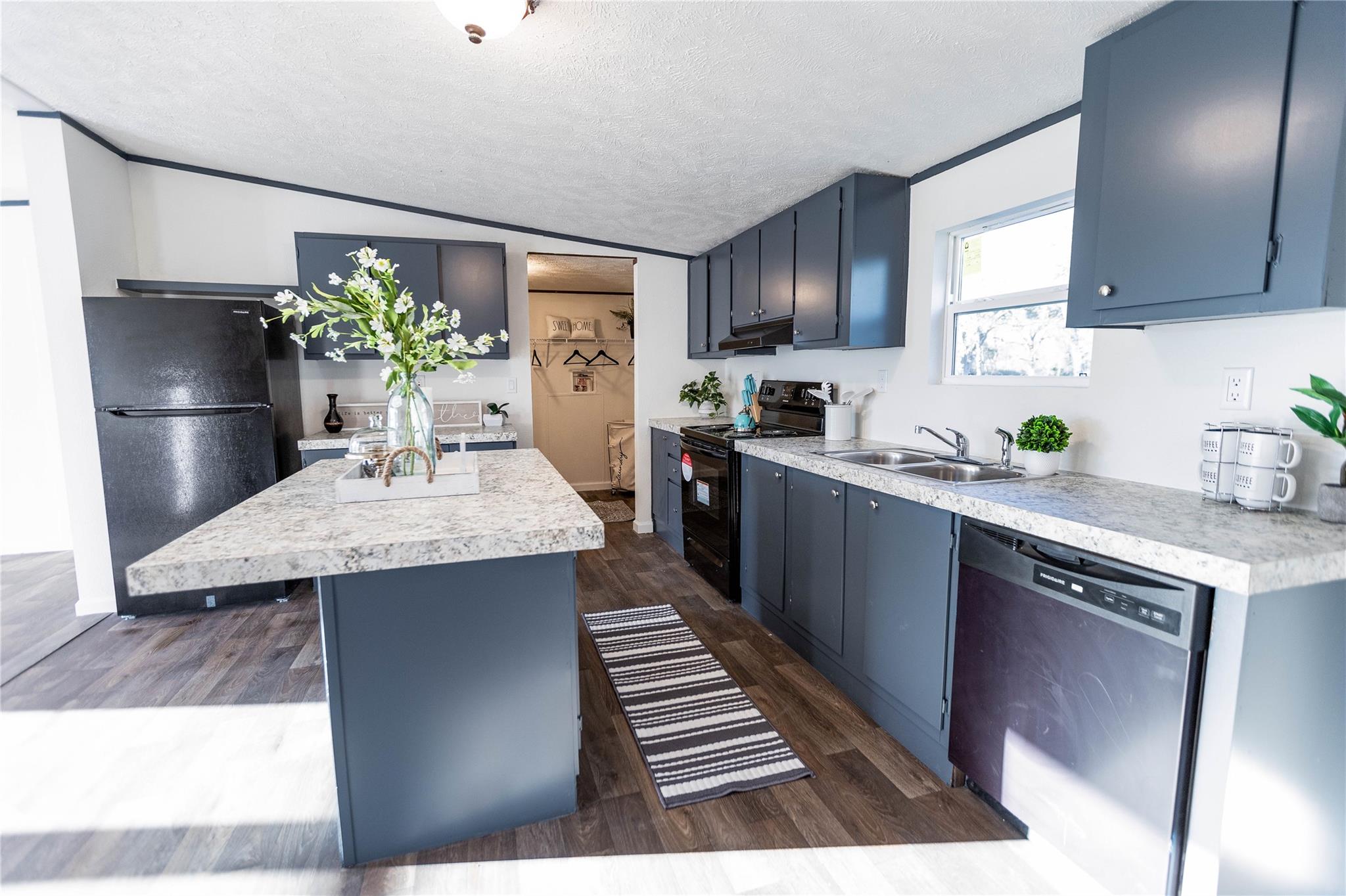 - Cooktop, Dishwasher, Free-Standing Electric Range, Free-Standing Refrigerator