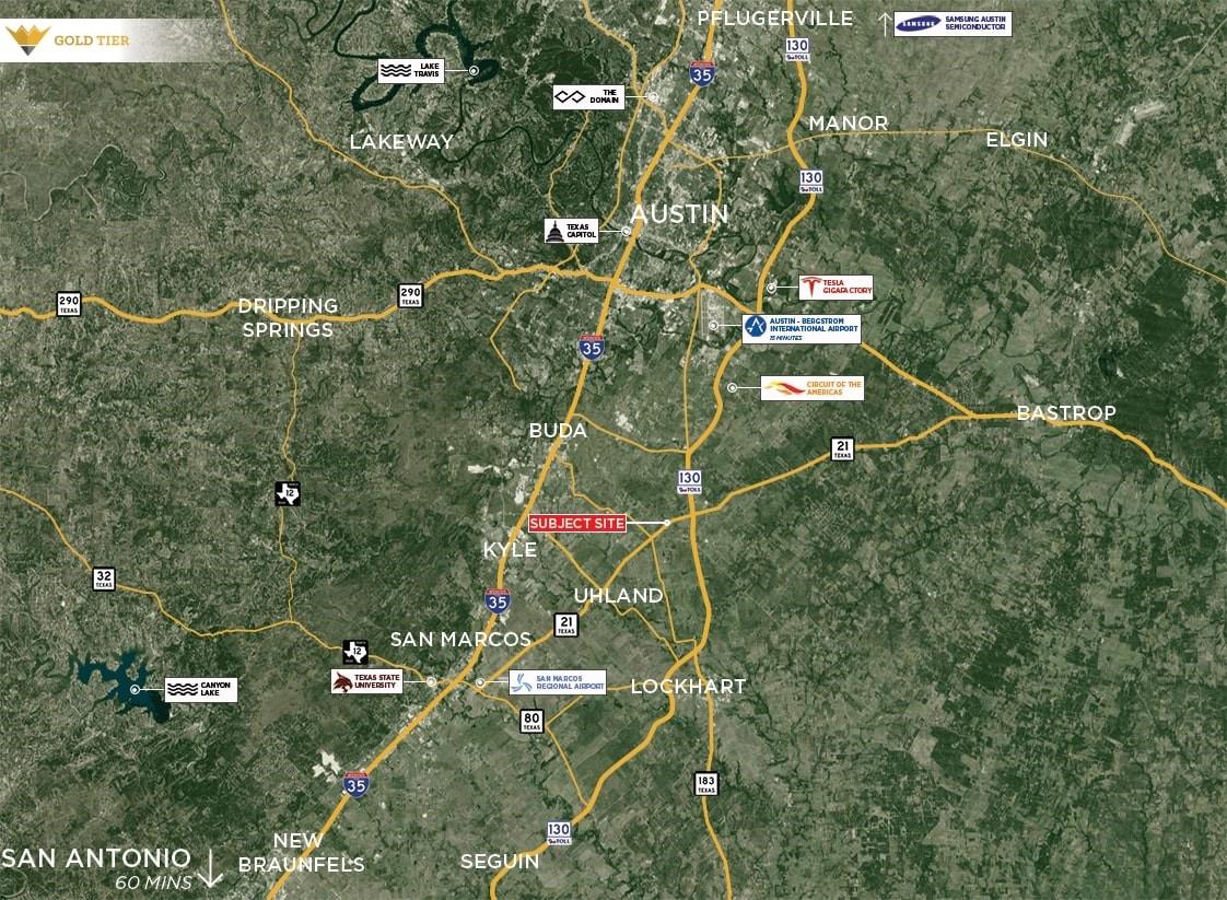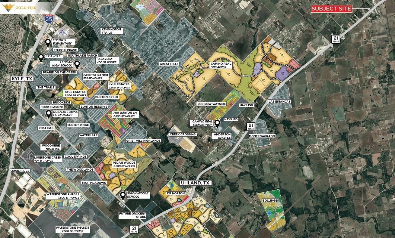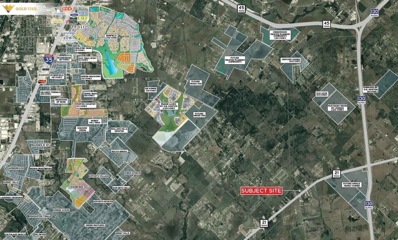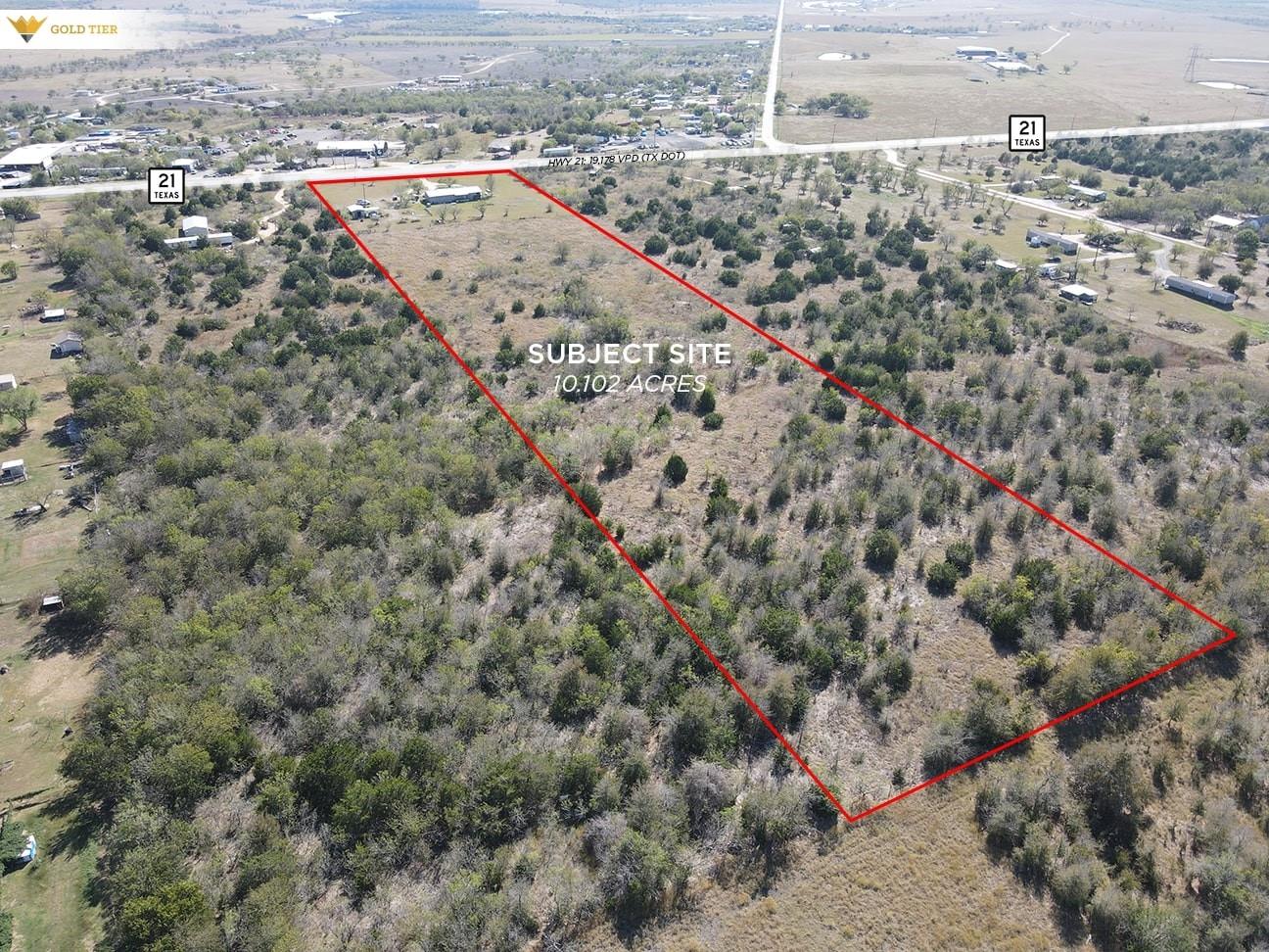 Gold Tier Real Estate is pleased to present a prime 10-acre property located along the highly traveled Highway 21 in Kyle, Texas. With approximately 330 feet of frontage and a daily traffic count of 19,178 vehicles according to TXDOT, this site offers excellent visibility and accessibility. Utilities include 3-inch and 6-inch water lines provided by Goforth SUD, though prospective buyers should note that no sewer lines are ava...