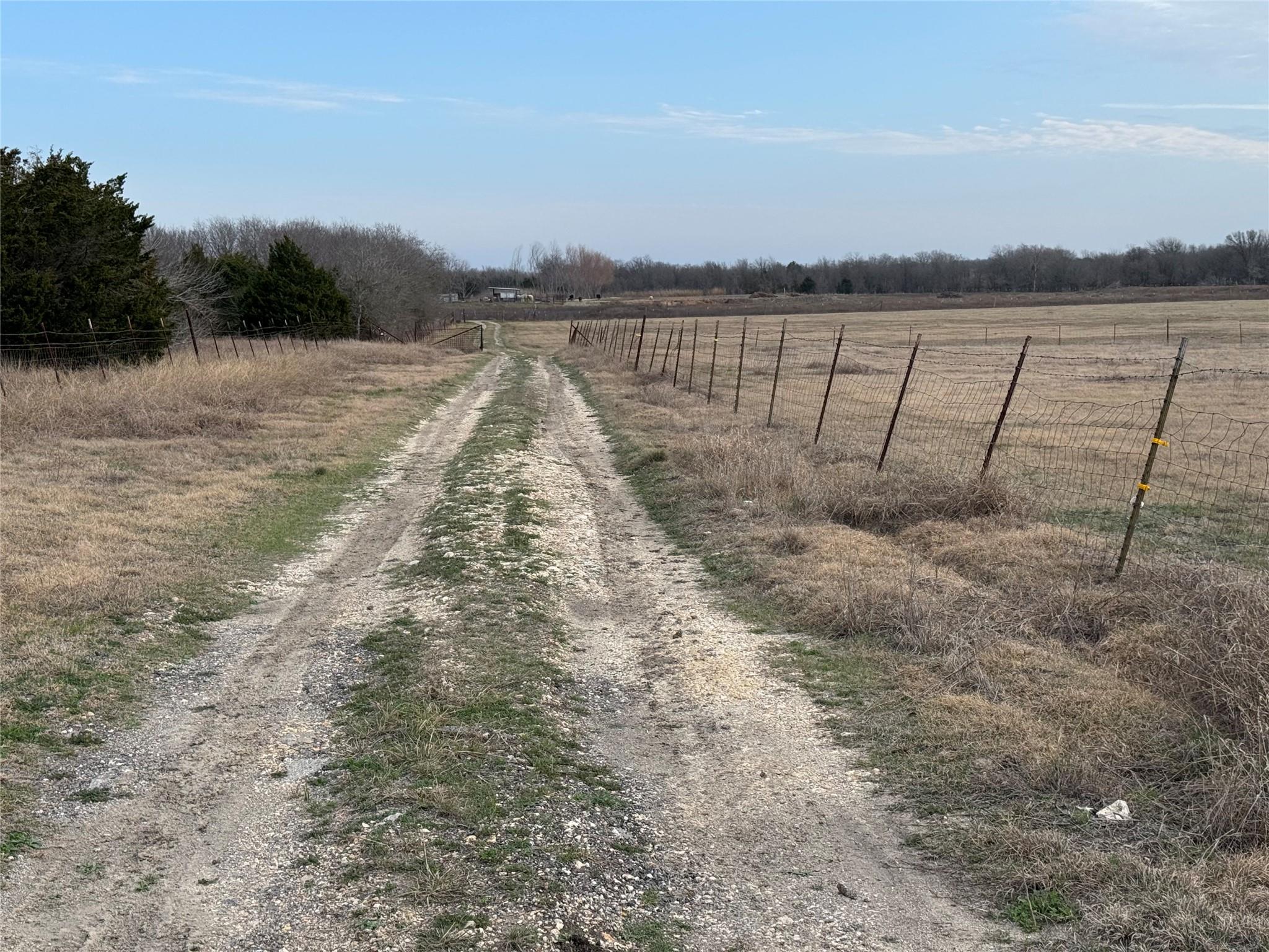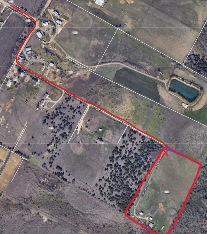 Great view with Google earth of this10 acre tract ready for improvements. There is a wet weather pond on the property but currently dry. There is an older barn in fair condition, a large metal building and an RV/carport, both in good condition. Utility connections are available right outside the gate but buyer to verify all details.
