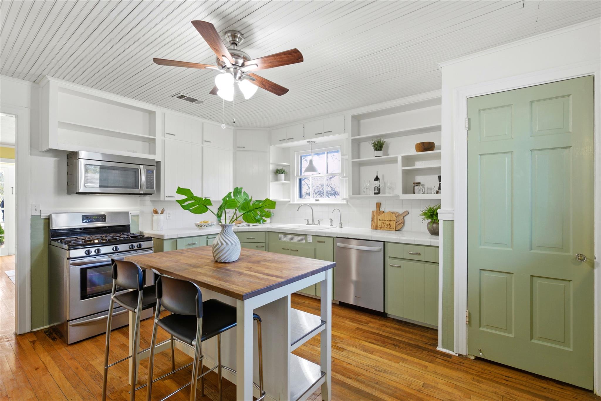 - Cooktop, Dishwasher, Disposal, Exhaust Fan, Gas Range, Induction Cooktop, Microwave, Oven, Gas Oven, Range, +1 more