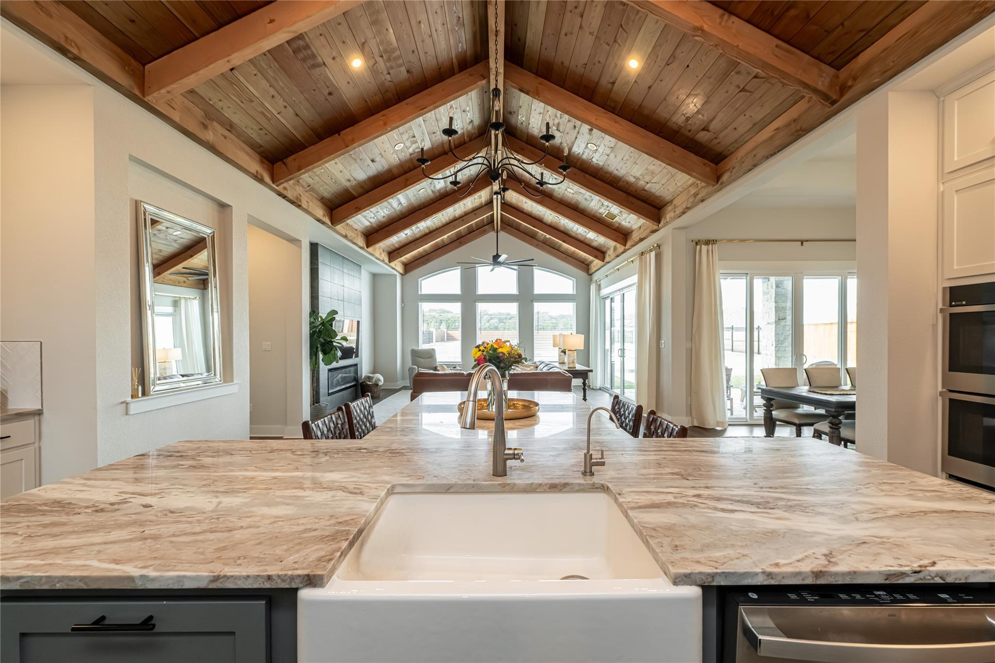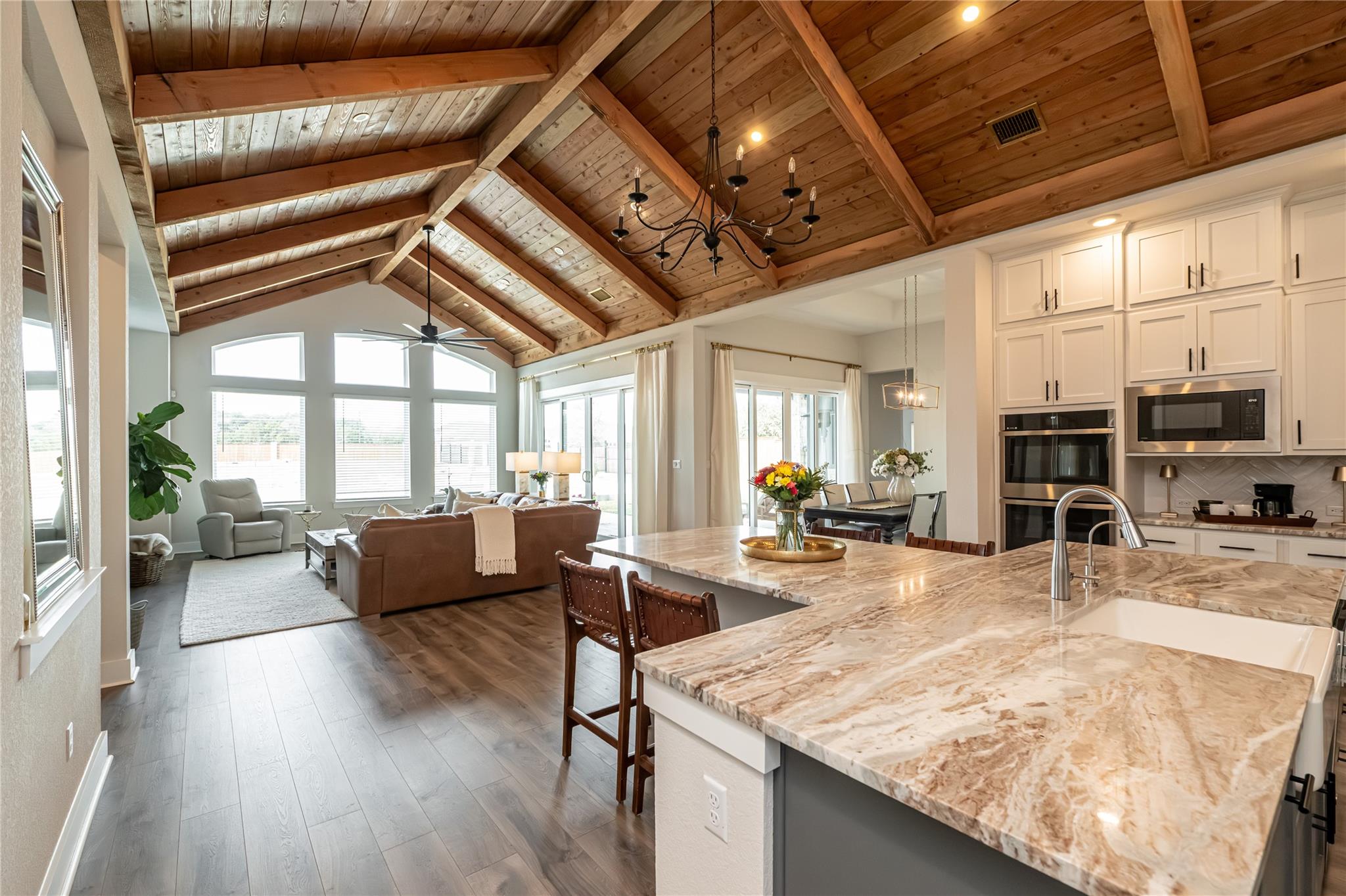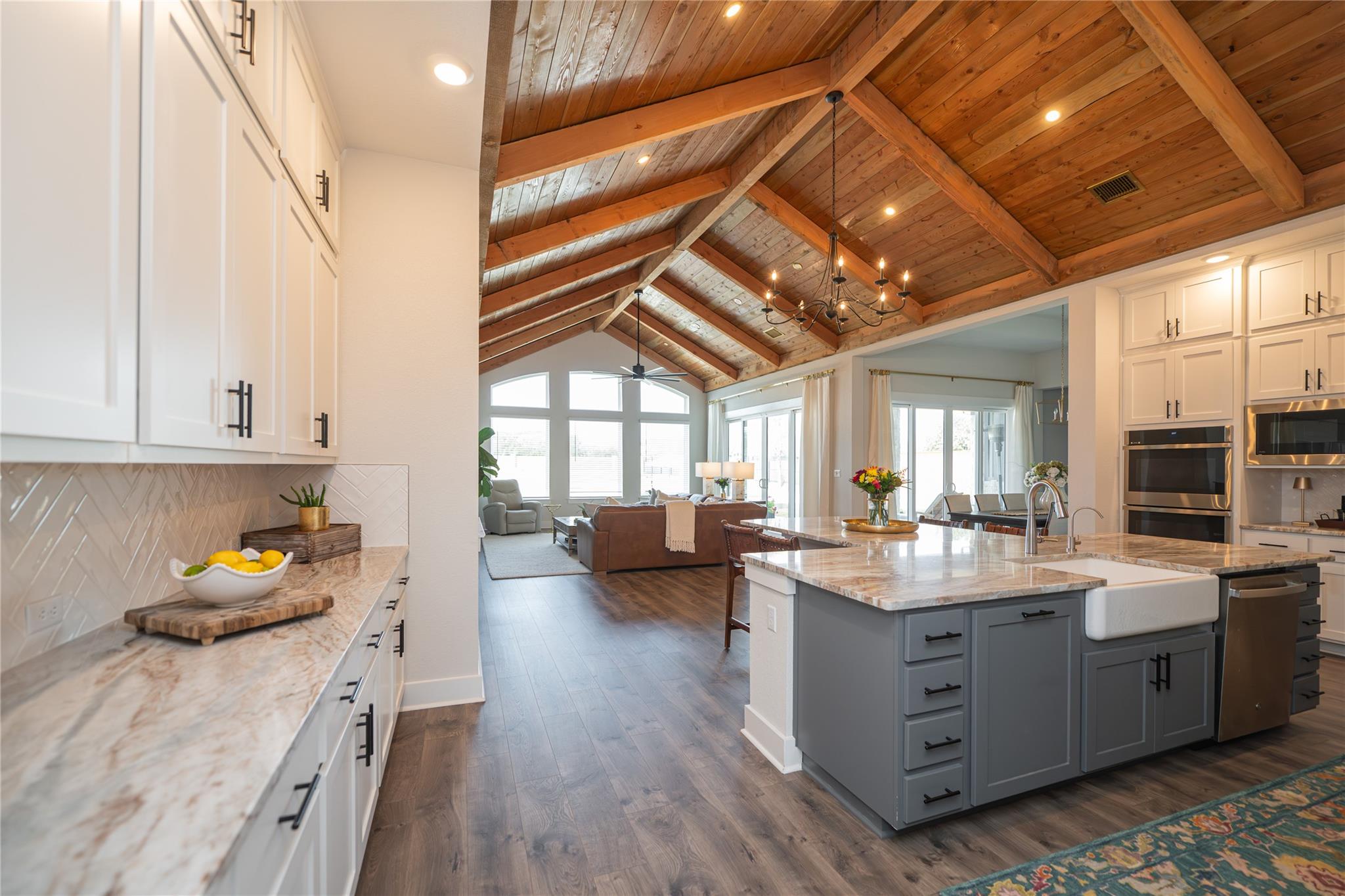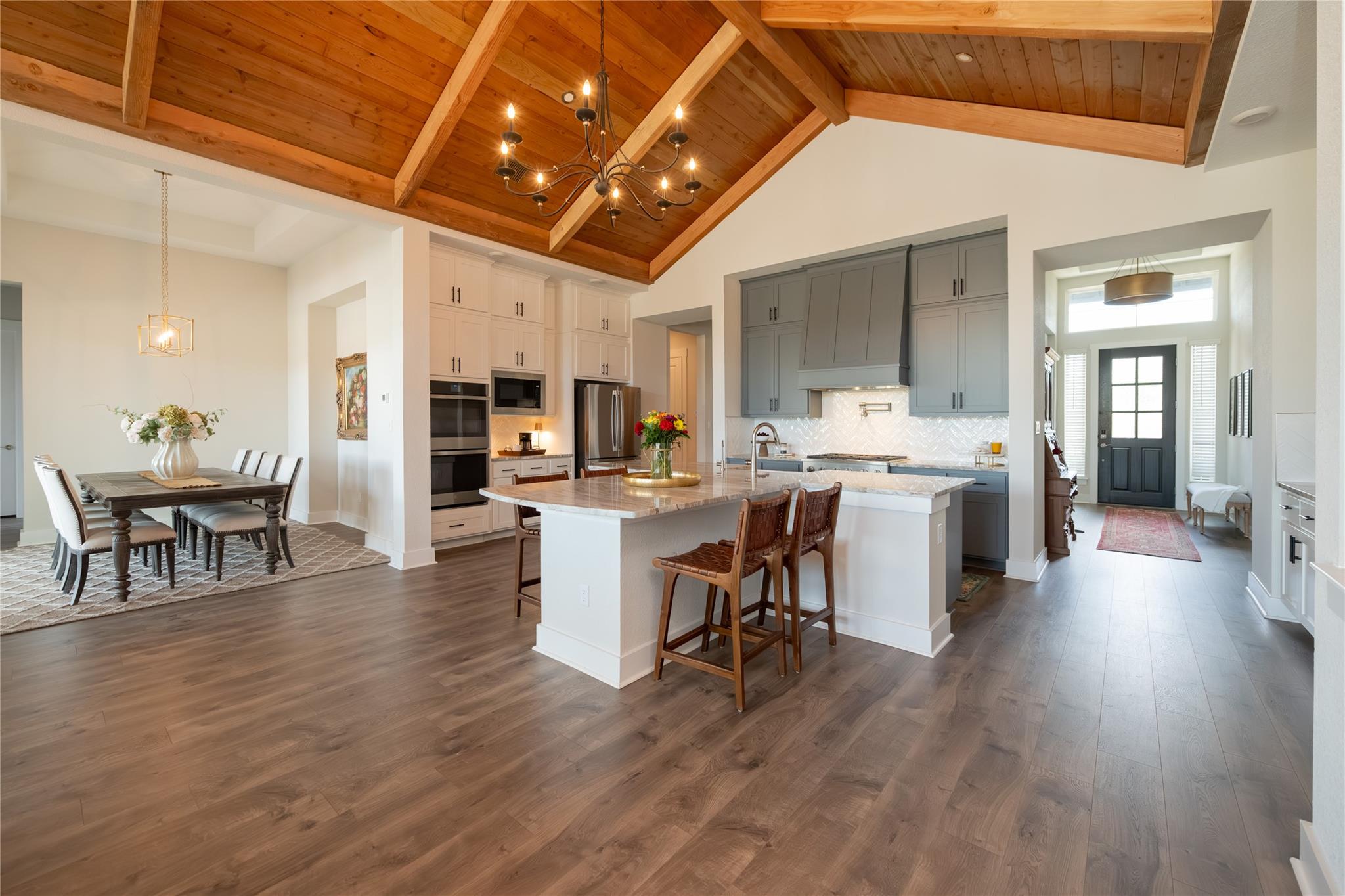 Welcome to an exquisite testament to architectural beauty and functional design. This stunning Chesmar home spans 3,285 square feet on a generous one-acre lot in the prestigious Northfork community. Upon entry, you are greeted by breathtaking double-vaulted, tongue-and-groove wood ceilings that grace the open-concept family room and gourmet kitchen. The chef’s kitchen is a culinary masterpiece, boasting ceiling-height cabinetr...