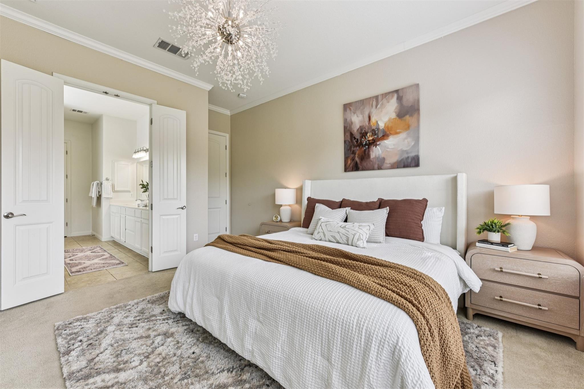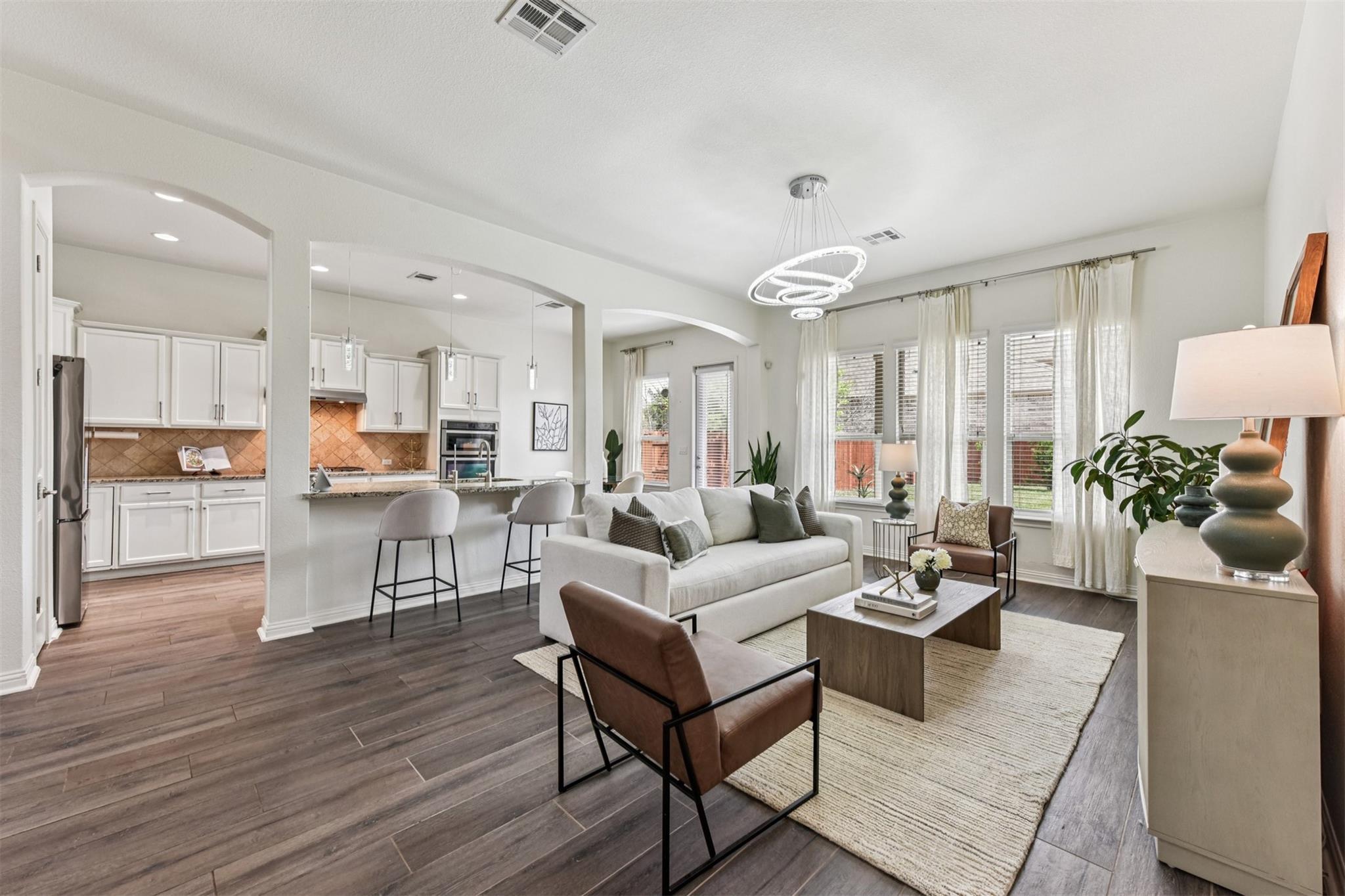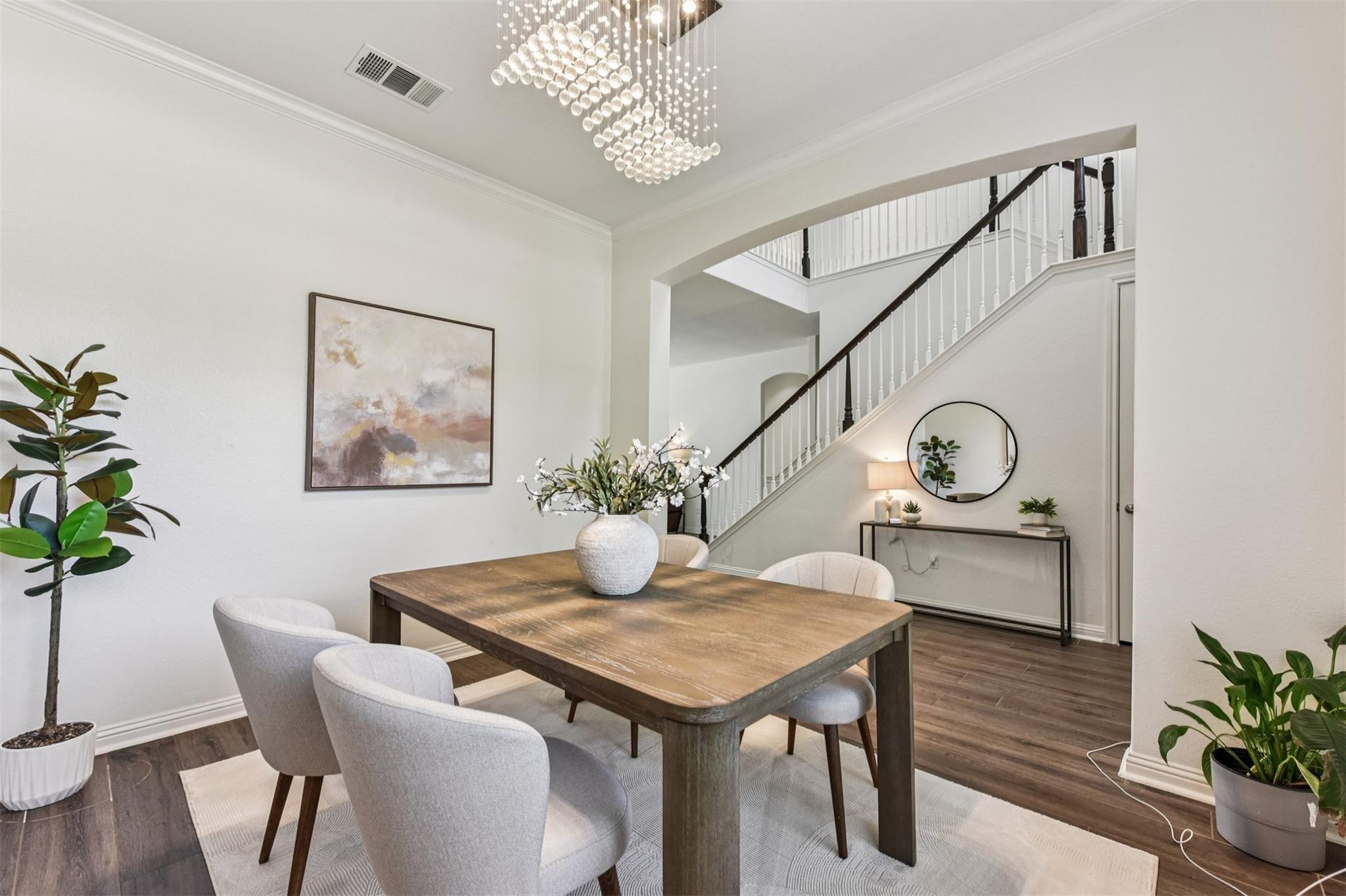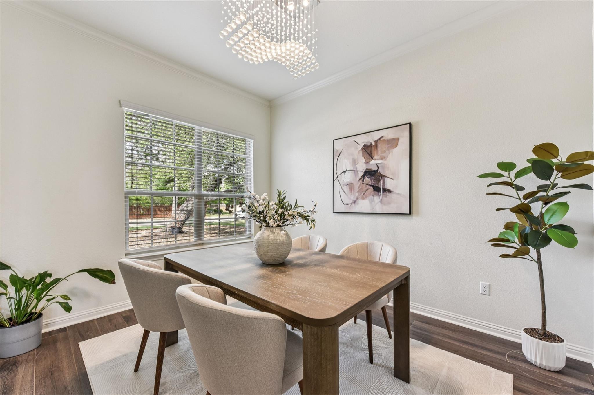 Stunning executive-style home on an oversized corner lot just a few blocks from top-rated schools and an amenity-filled park! This home offers an ideal floorplan with a spacious downstairs primary suite and a large upstairs living area, along with fantastic upgrades throughout including plank-style tile flooring, modern chandelier lighting in the living, dining, and primary bedroom, and recent interior paint. The kitchen sits ...