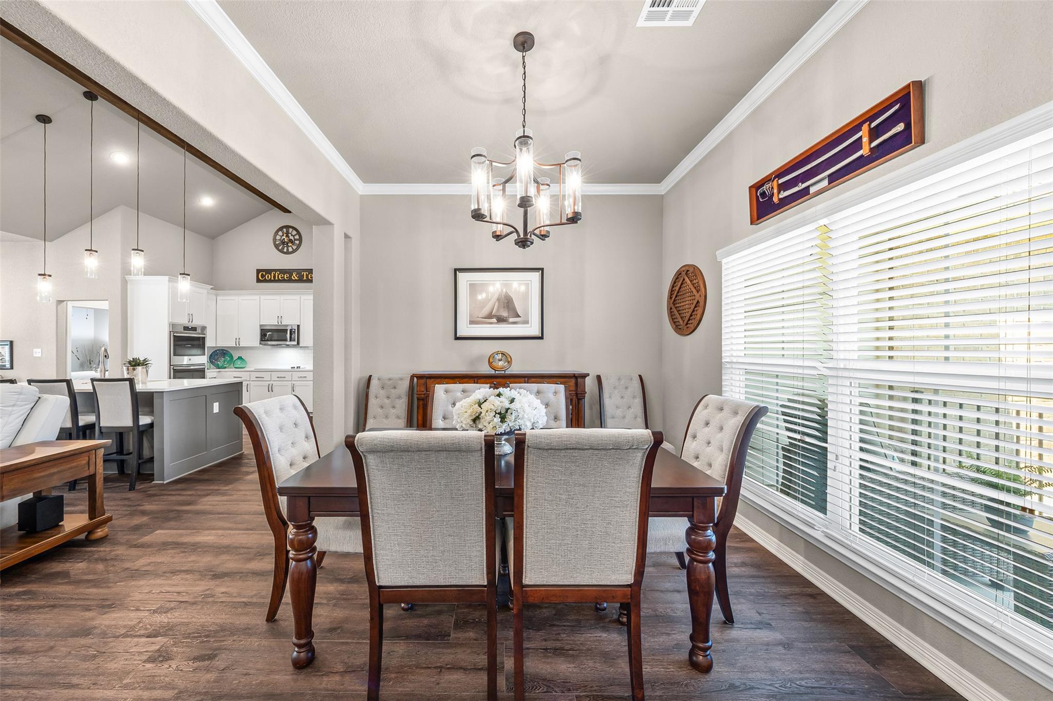 This pristine one owner 4 bedroom, 3 bath, home is on a corner (2 lots) plus the seclusion of three (3) additional lots in Tanglewood's gated community. This home is ideal for entertaining and relaxing. The home features a formal and informal dining; an open concept living area with vaulted ceilings and wood beam ceiling; plus, a kitchen with built-in double ovens, vented microwave with convection and air fryer features; plus ...
