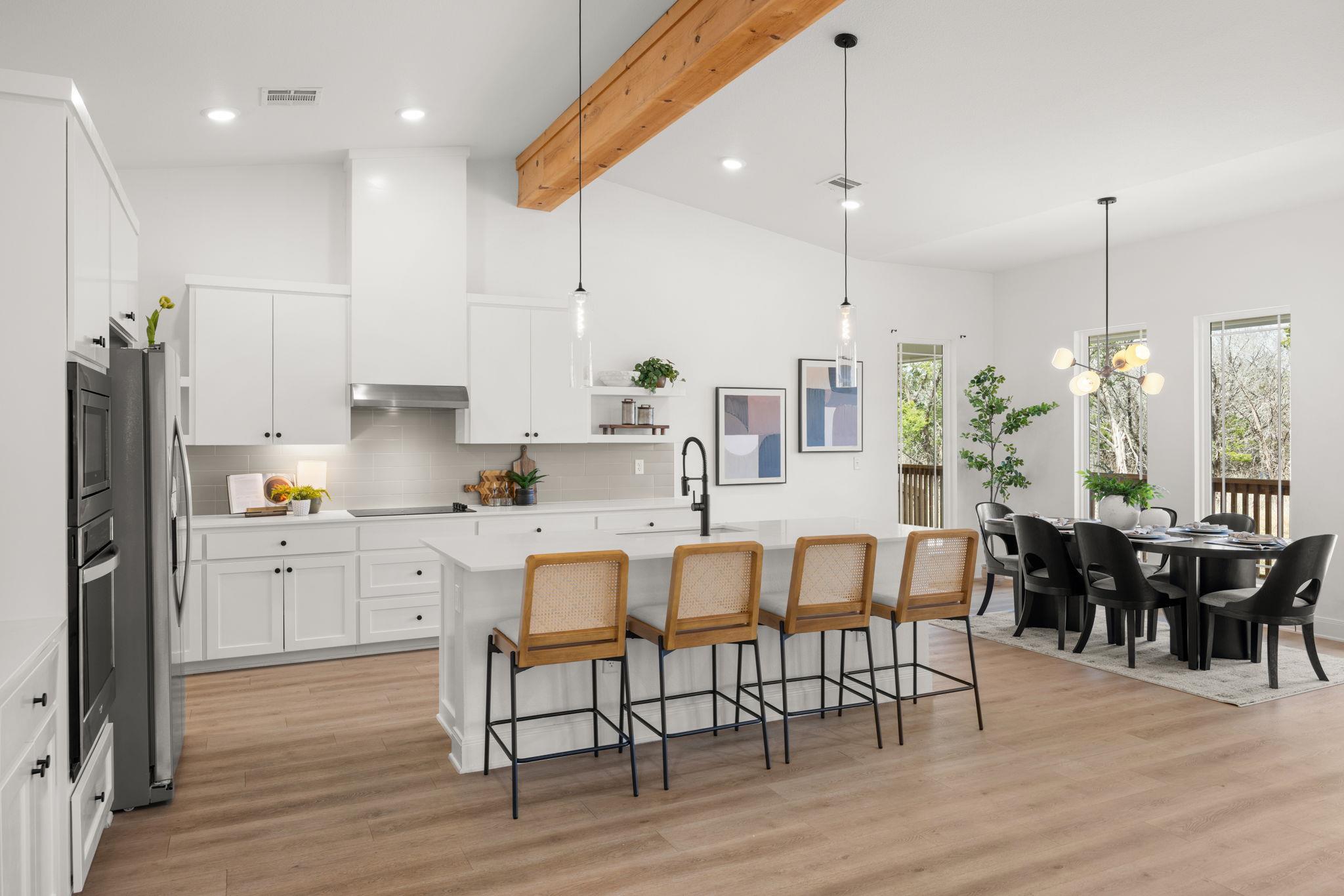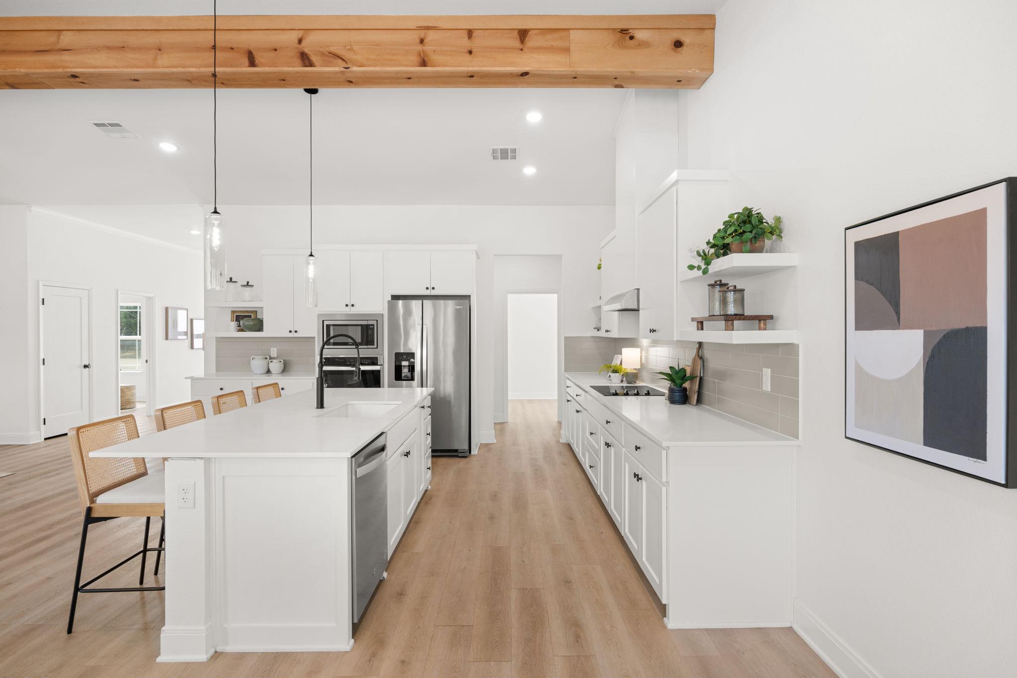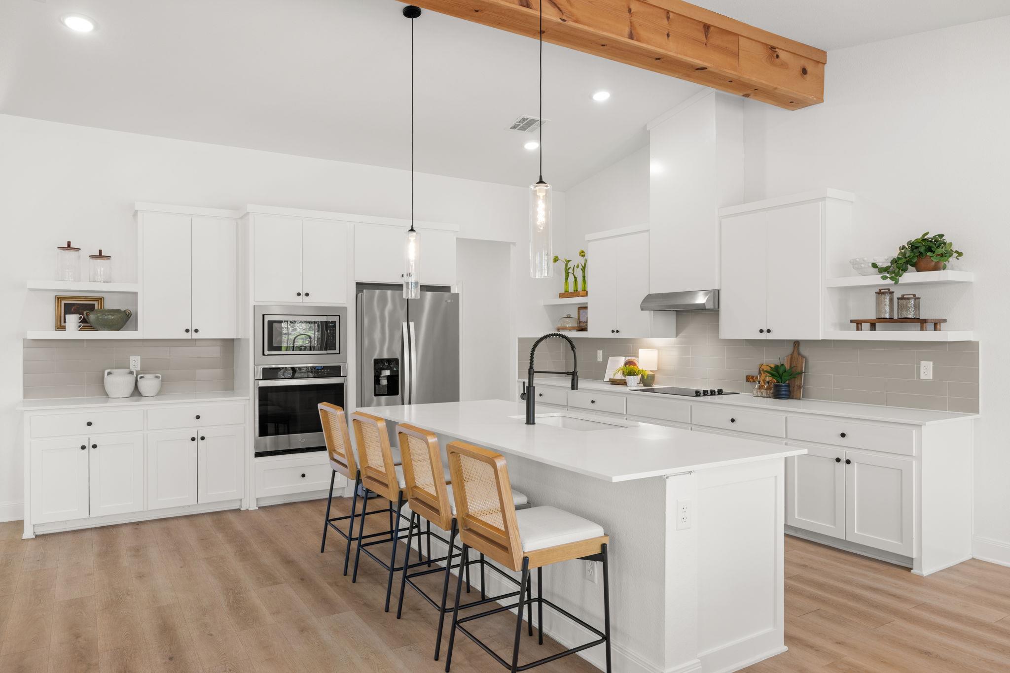 Welcome to refined living in a gated, amenity-rich community offering a pool, playground, and scenic walking trail to the lake. This beautifully appointed 4-bedroom, 2.5-bath home spans over 2,600 square feet and blends modern sophistication with warm, rustic charm. From the striking stone and hardie exterior to the thoughtfully curated interior finishes, every detail was designed to impress. Inside, you’ll find luxury vinyl p...