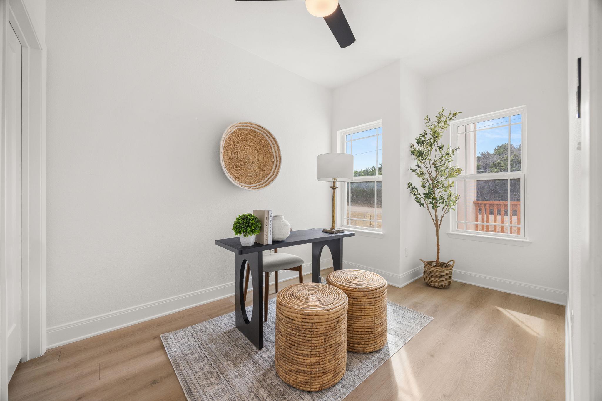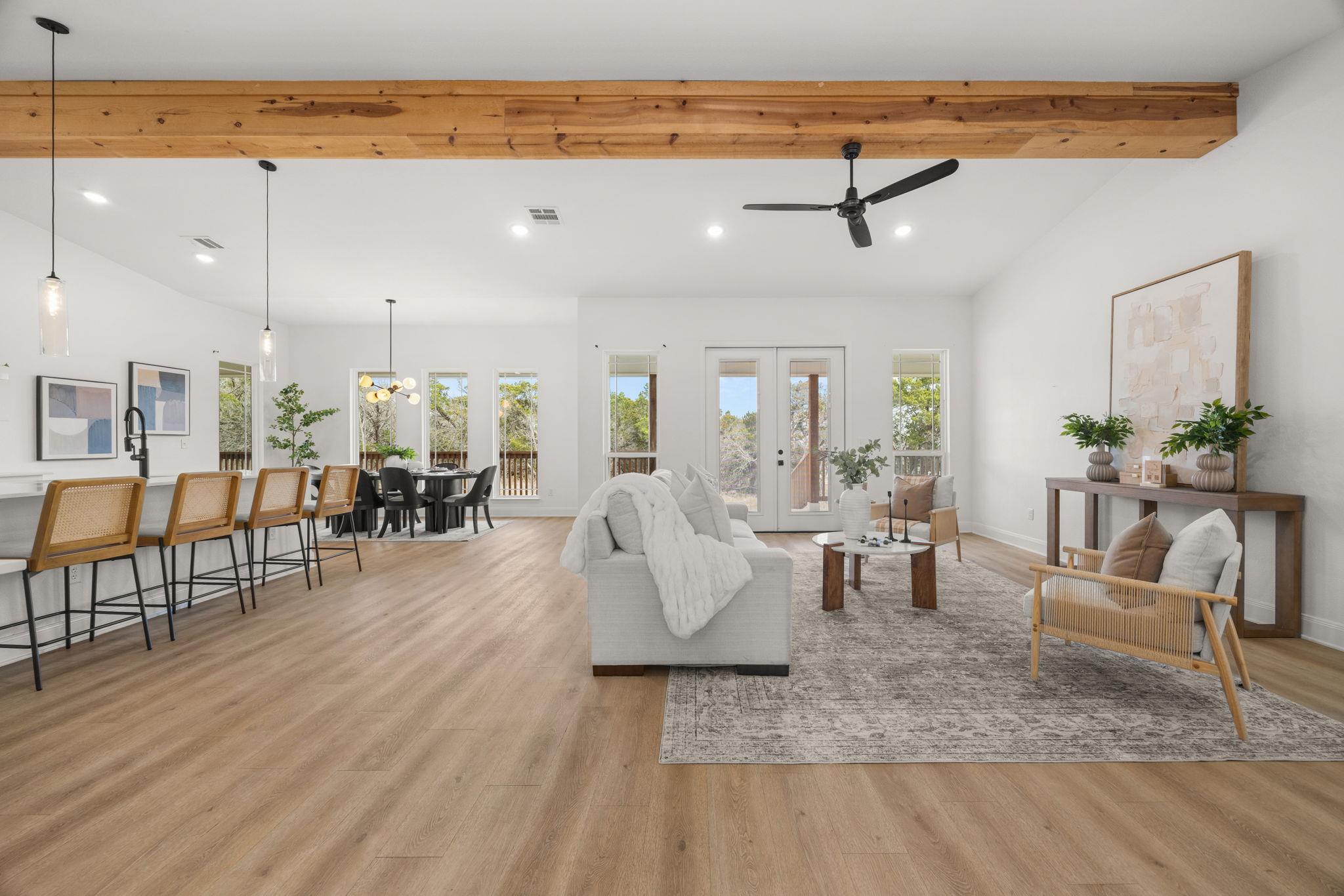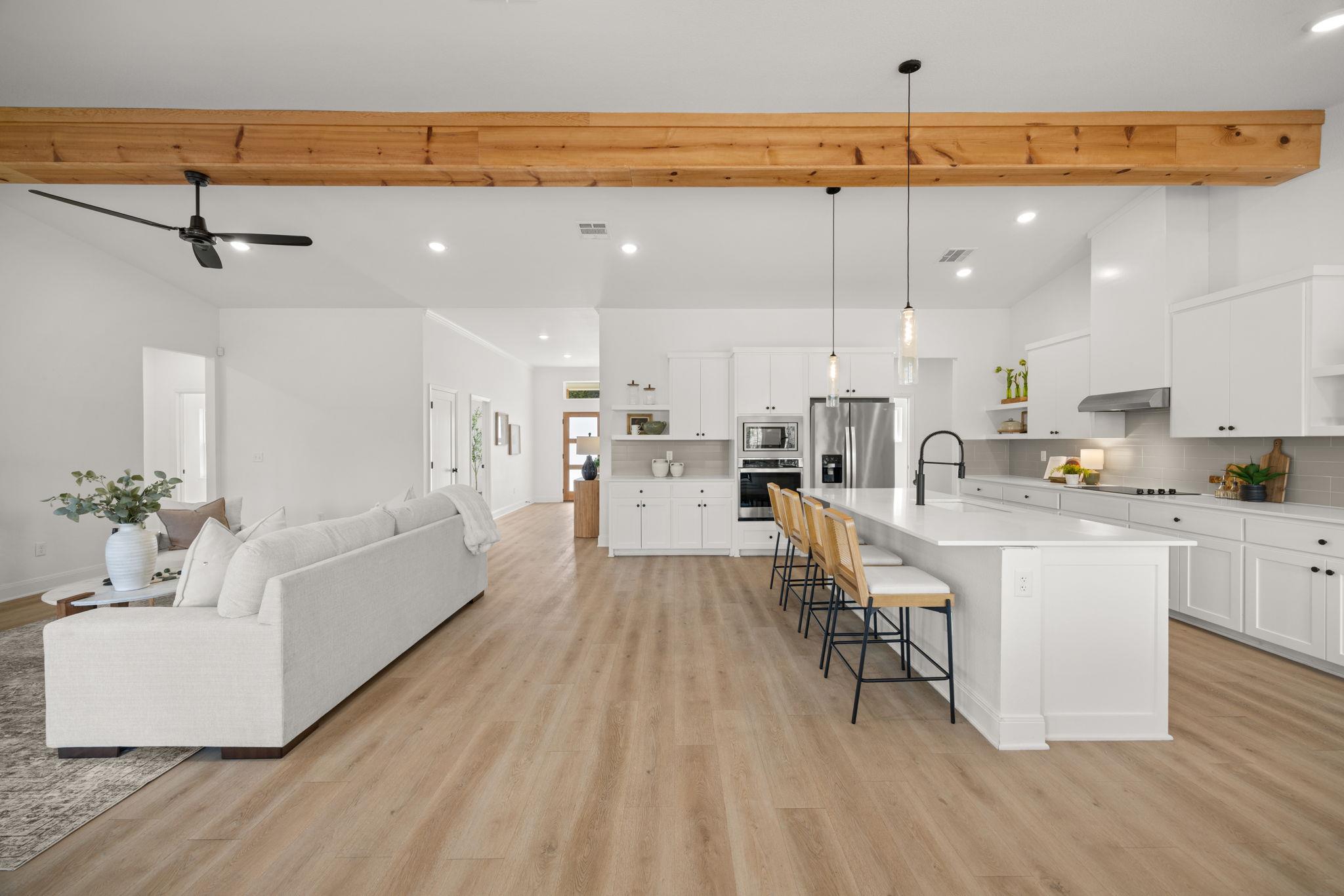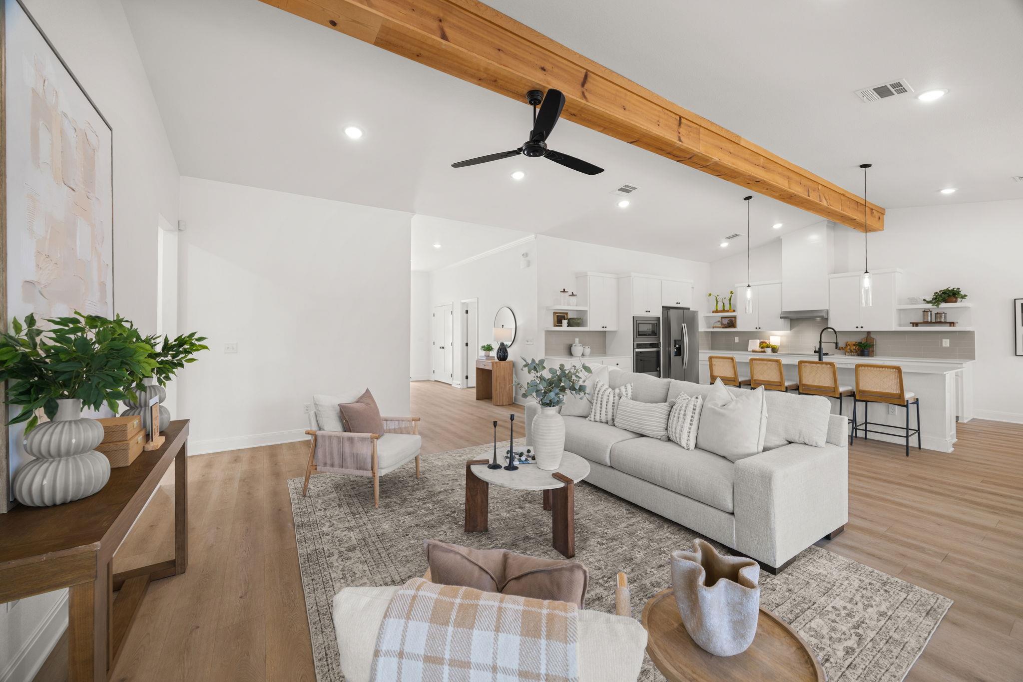 Welcome to refined living in a gated, amenity-rich community offering a pool, playground, and scenic walking trail to the lake. This beautifully appointed 4-bedroom, 2.5-bath home spans over 2,600 square feet and blends modern sophistication with warm, rustic charm. From the striking stone and hardie exterior to the thoughtfully curated interior finishes, every detail was designed to impress. Inside, you’ll find luxury vinyl p...
