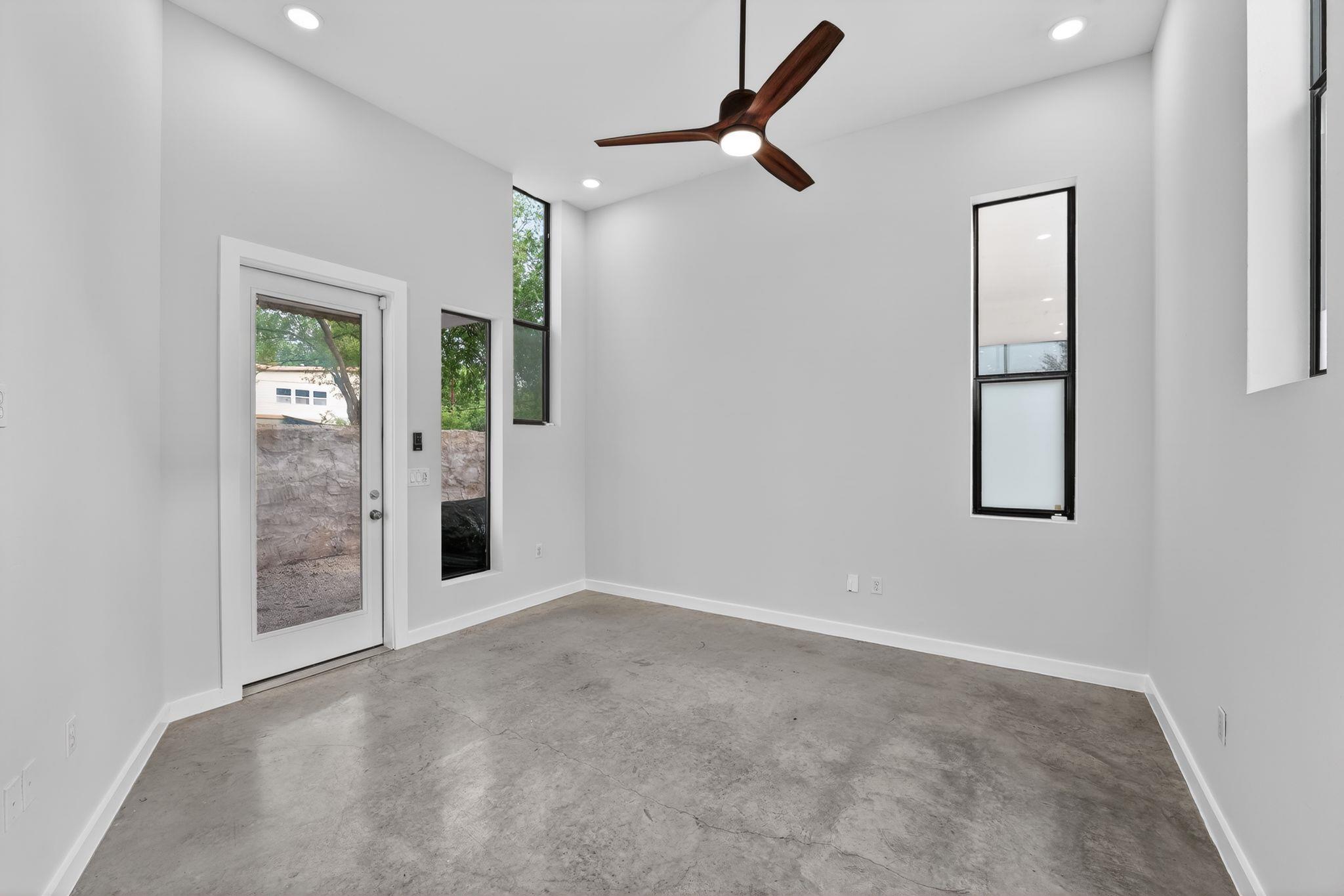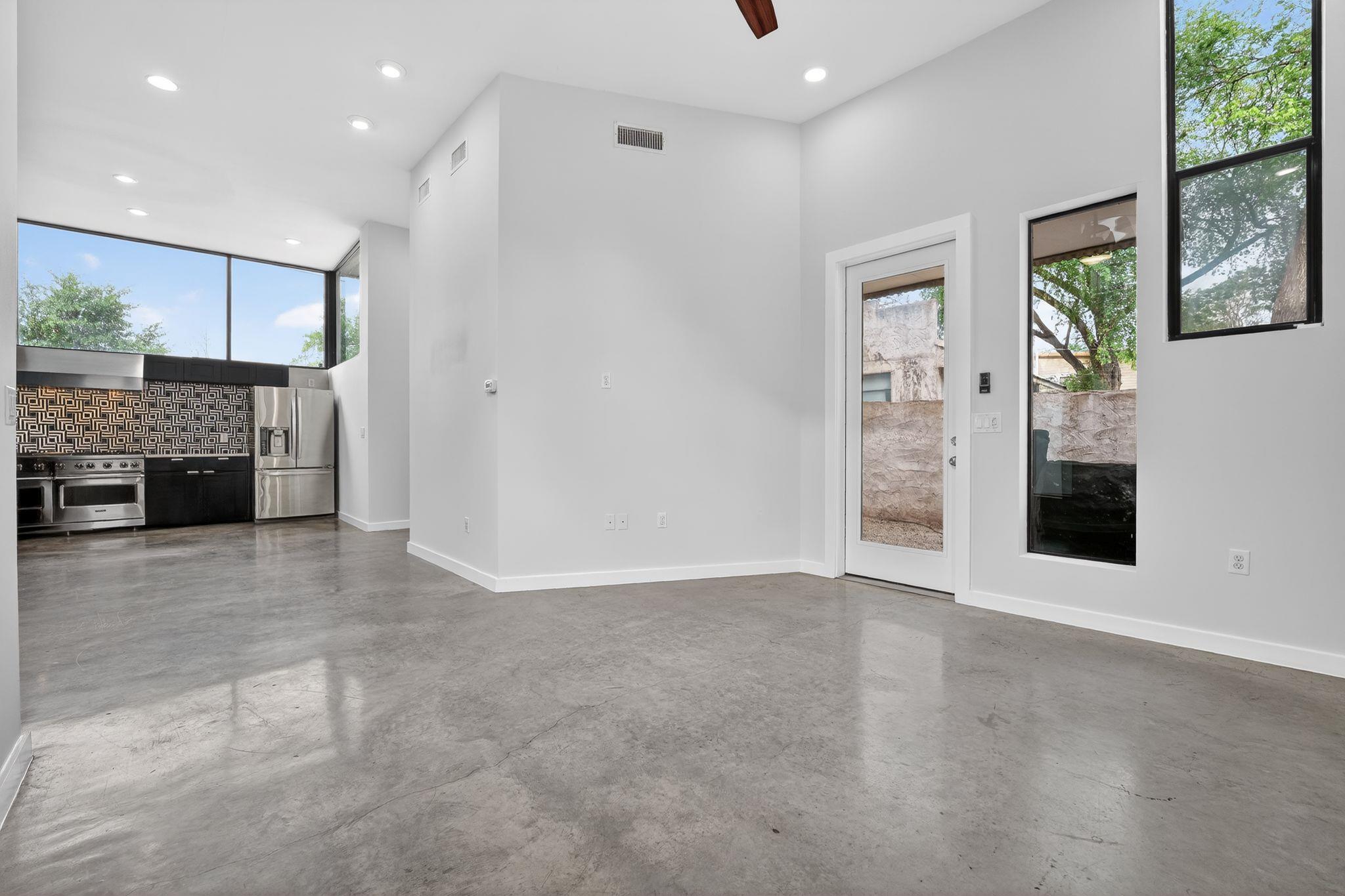 Bauhaus-inspired living in the heart of Holly, one of East Austin's most coveted walkable neighborhoods. Featured on the 2011 Austin Modern Home Tour, this Beck-Reit & Sons-built contemporary delivers striking architecture minutes from downtown, I-35, Hwy 183, ABIA, and UT campus. Soaring 12-foot ceilings and walls of natural light define the open main level, where gallery-white interiors meet warm oak accents along a custom ...